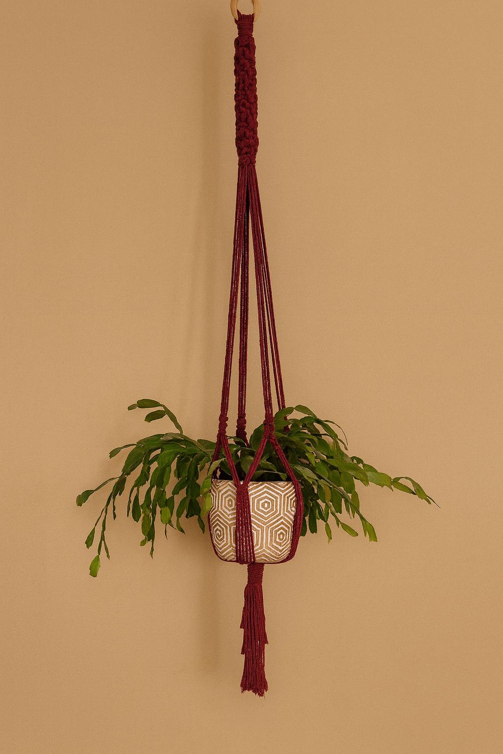 Handmade Macrame Plant Hanger: Boho Style Cotton Fiber Art Decor