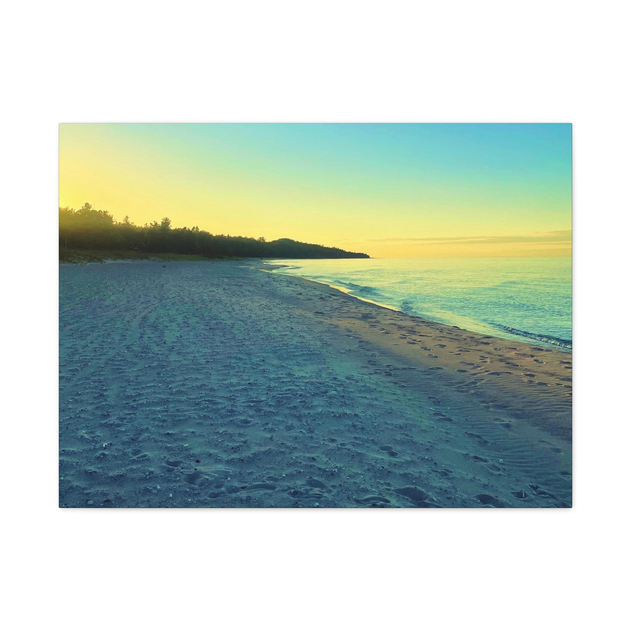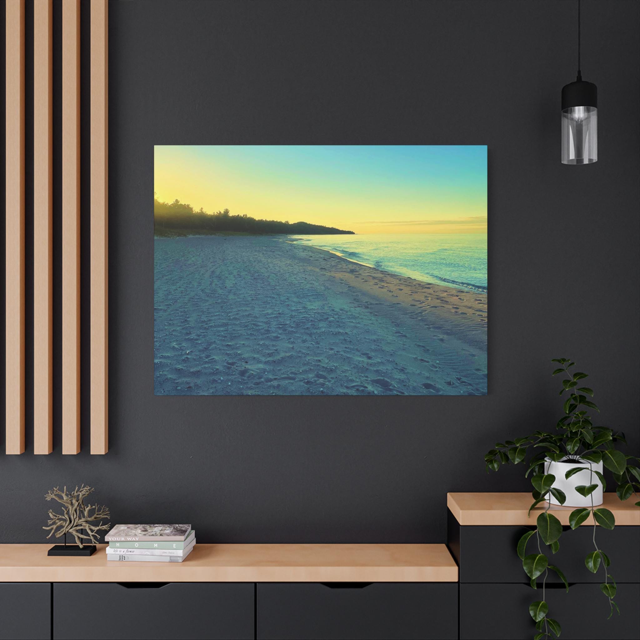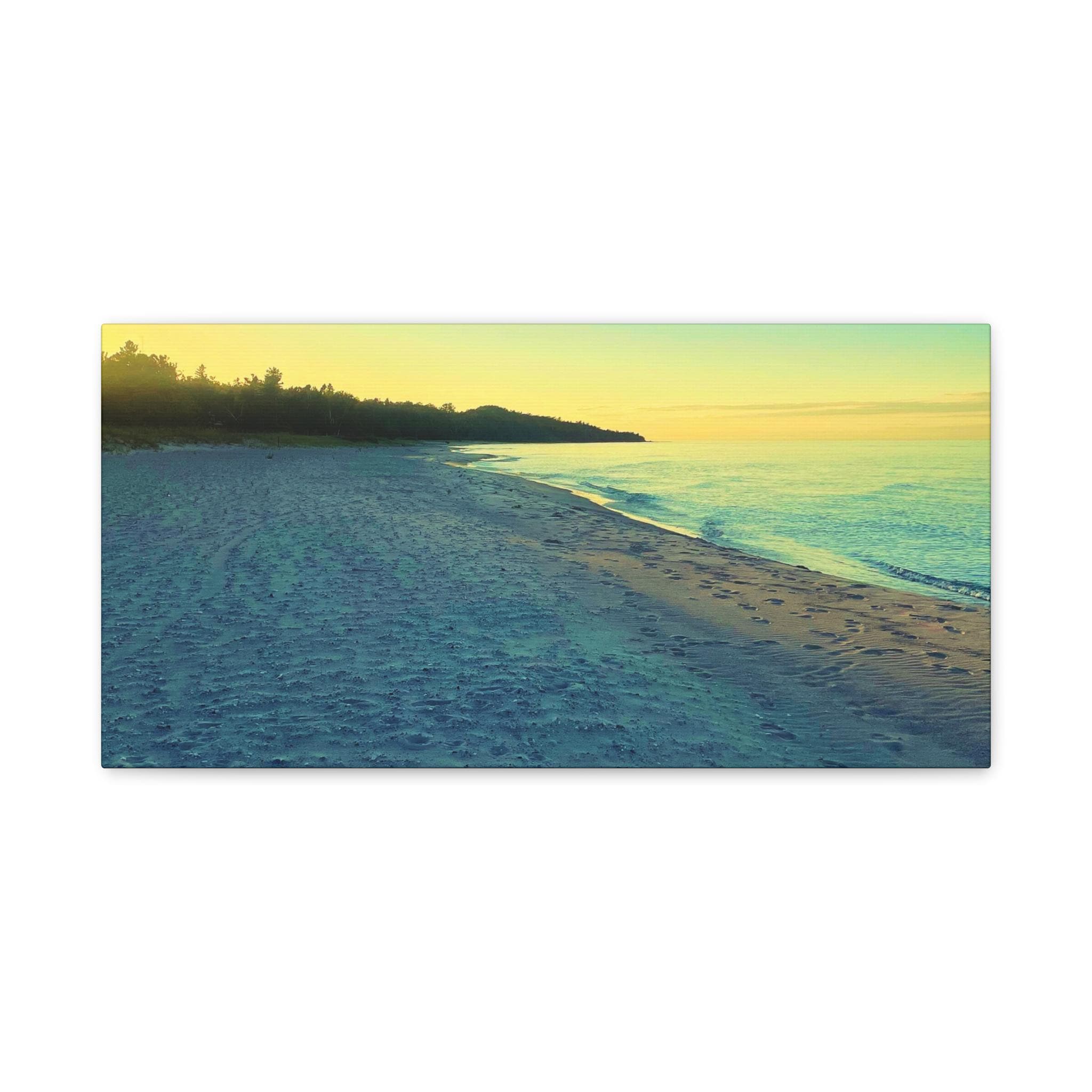 Bring the beauty of a beach sunset into your home with this serene canvas print. The golden sky and cool dark sand, combined with calm water, create a peaceful atmosphere perfect for relaxation. Ideal for beach lovers, nature enthusiasts, or anyone looking to add a touch of tranquility to their living space. Perfect for coastal-themed decor, beach house decorations, or as a thoughtful gift for holidays like summer, birthdays, or housewarmings.