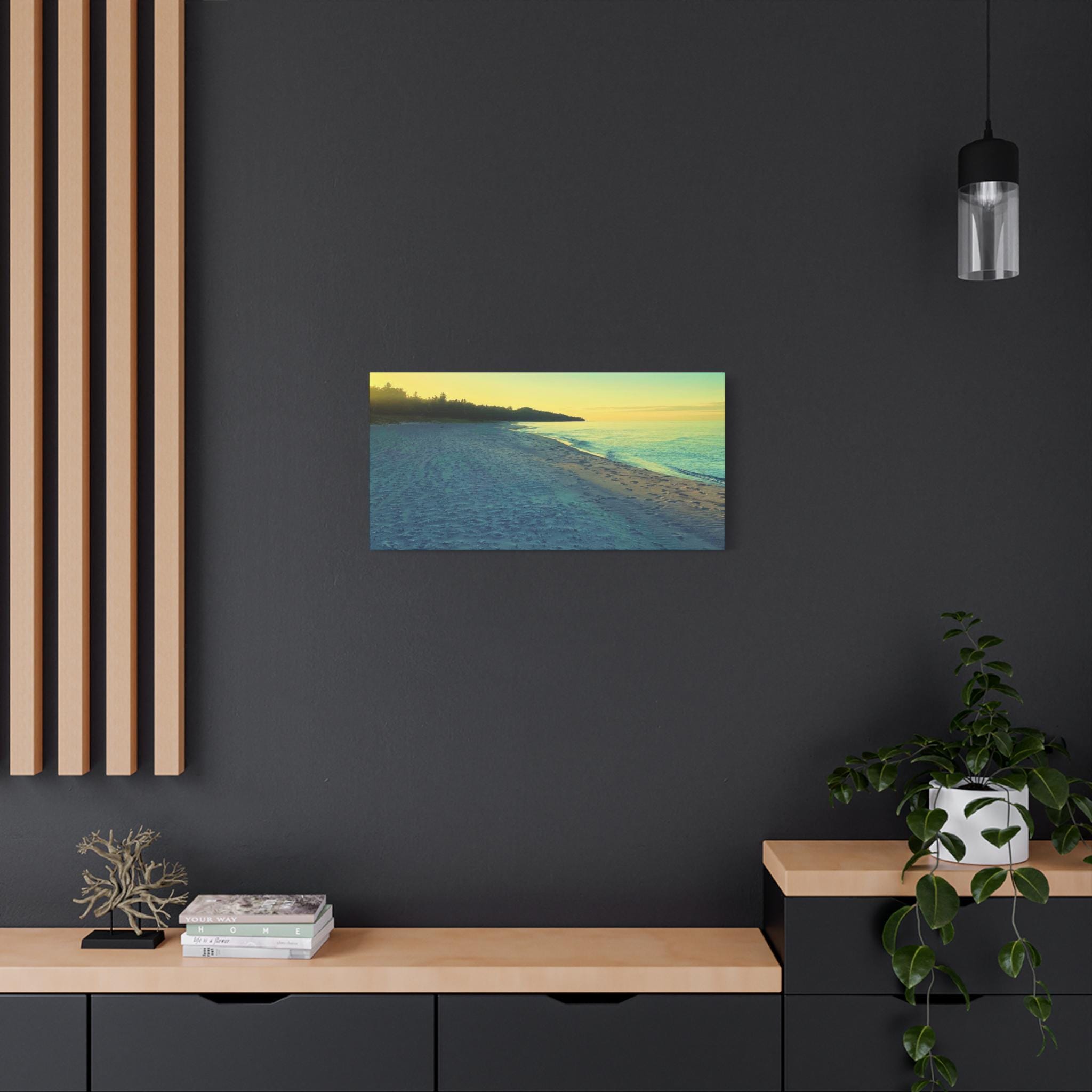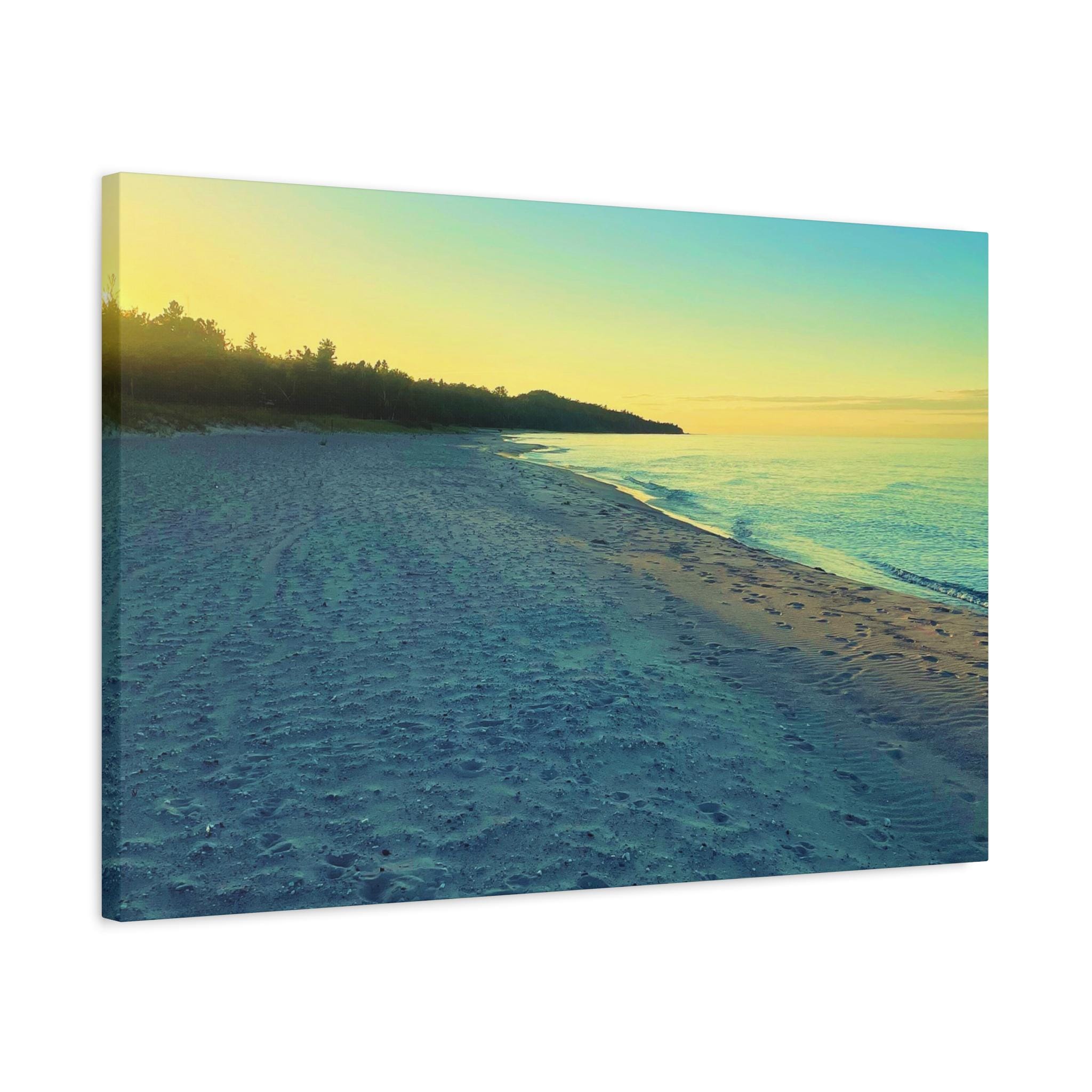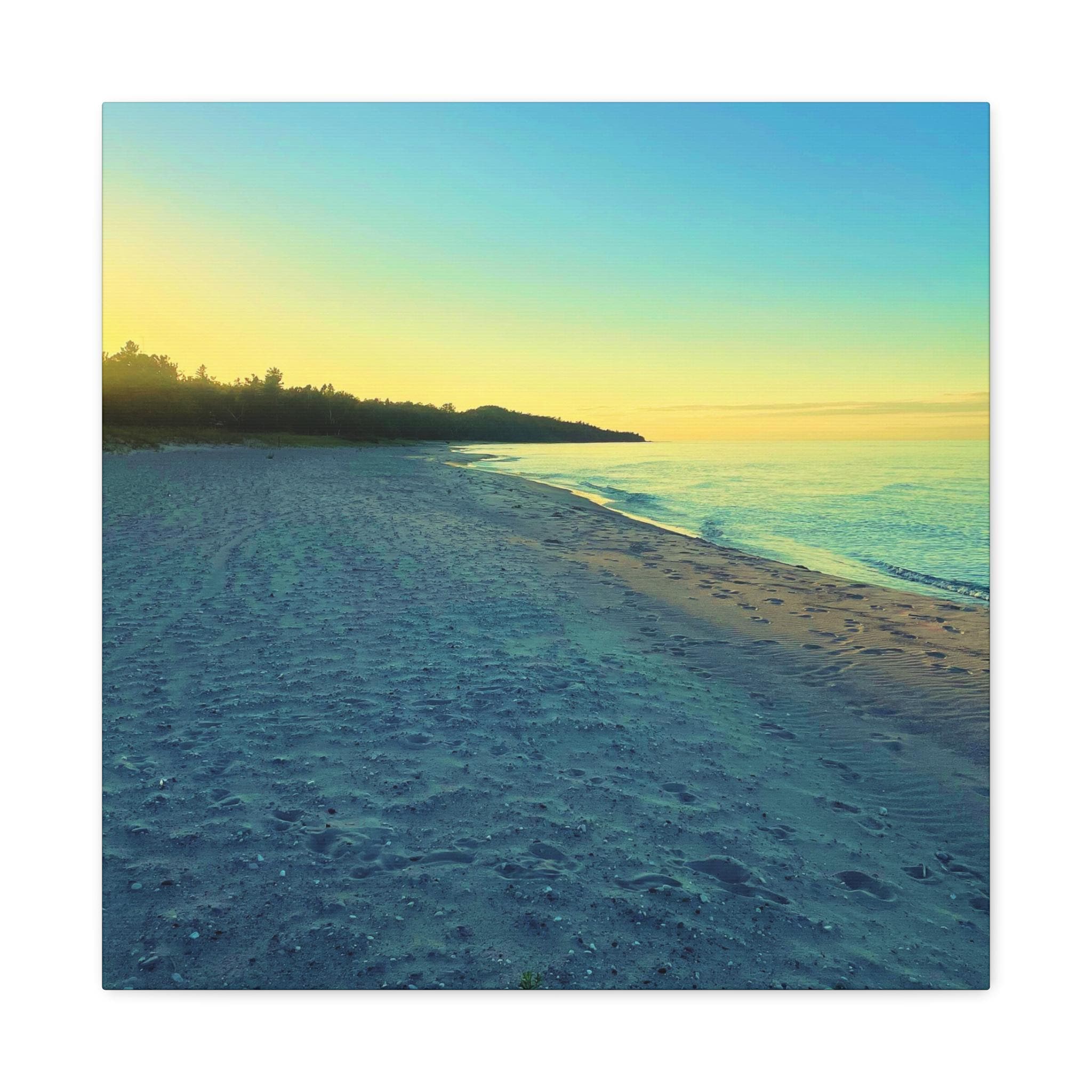 Bring the beauty of a beach sunset into your home with this serene canvas print. The golden sky and cool dark sand, combined with calm water, create a peaceful atmosphere perfect for relaxation. Ideal for beach lovers, nature enthusiasts, or anyone looking to add a touch of tranquility to their living space. Perfect for coastal-themed decor, beach house decorations, or as a thoughtful gift for holidays like summer, birthdays, or housewarmings.