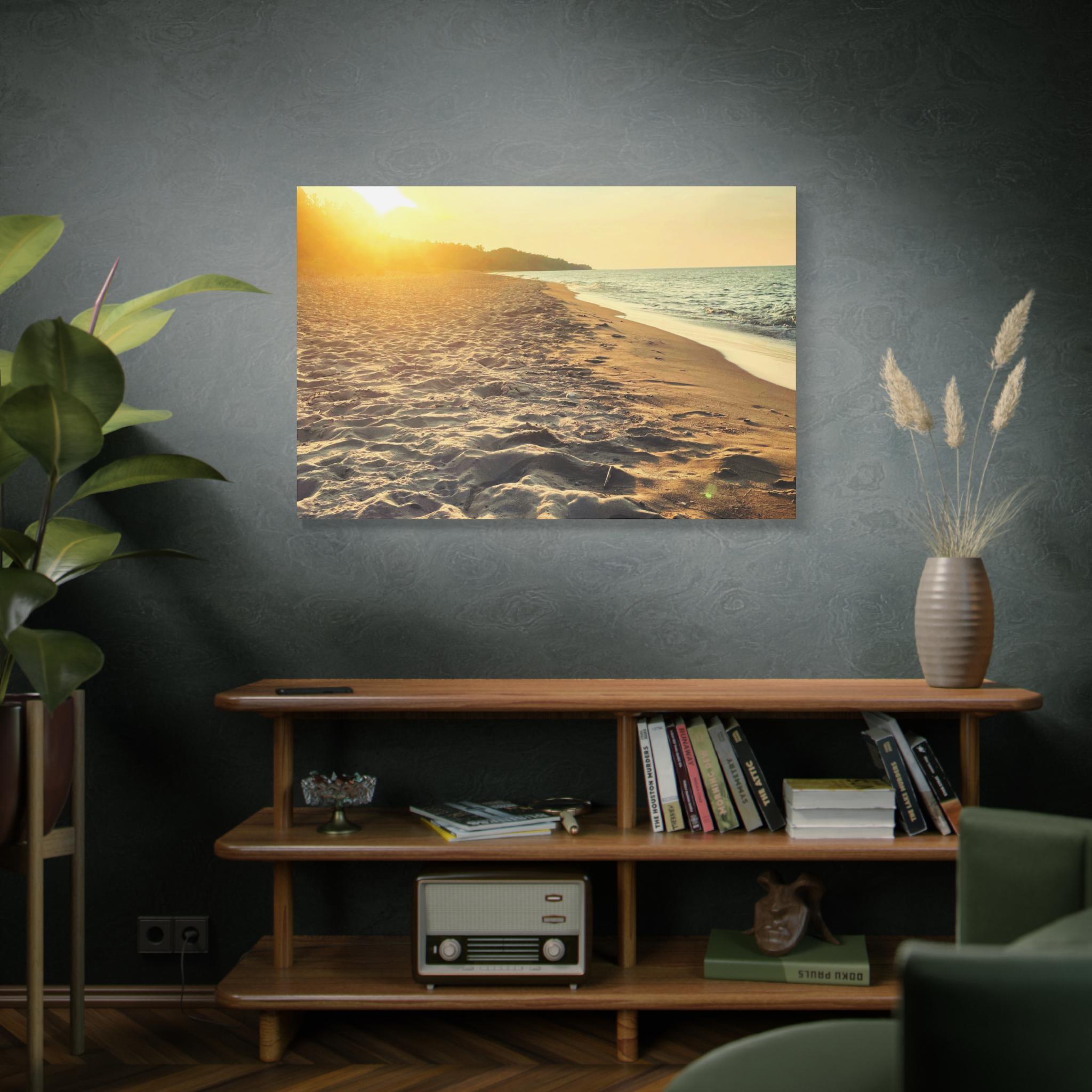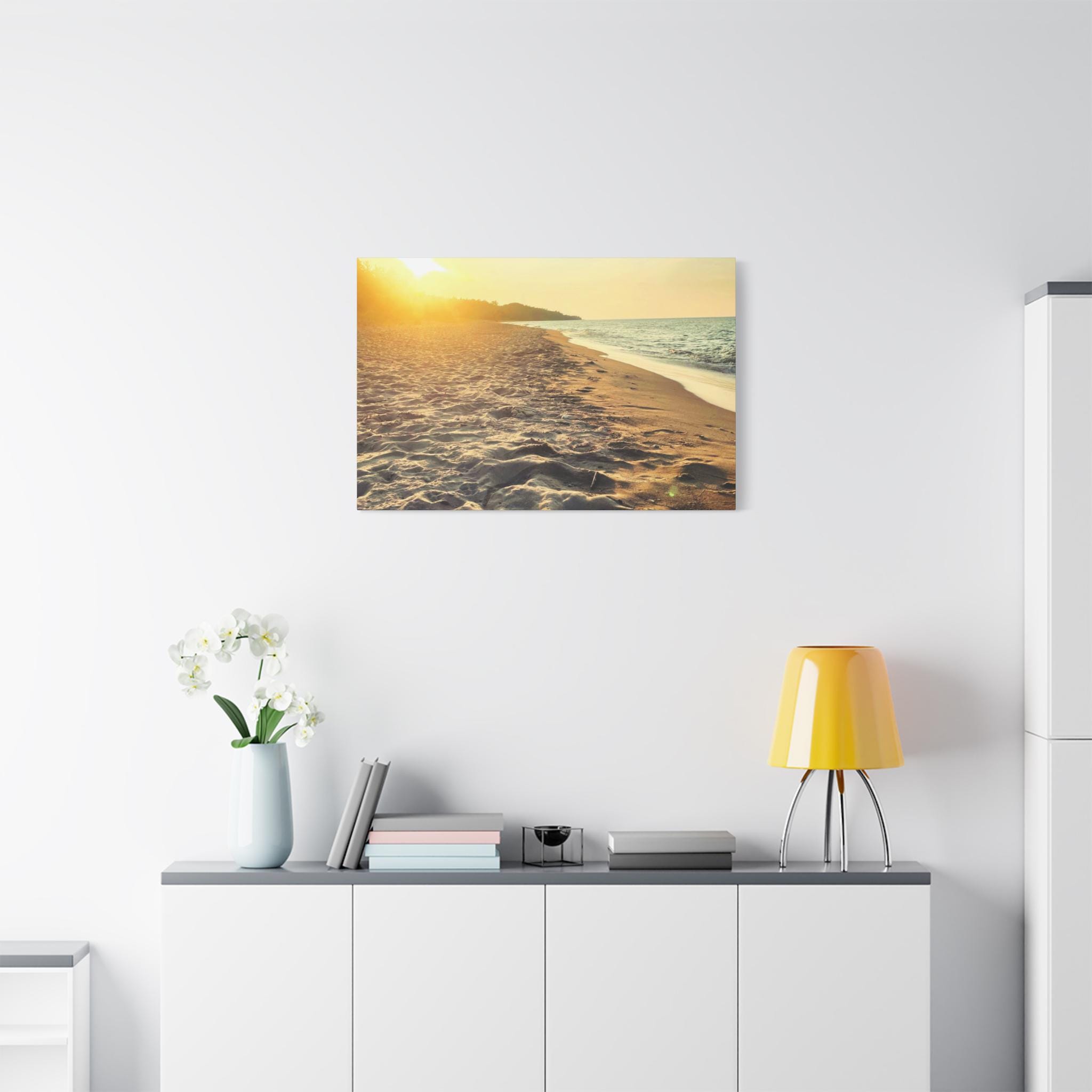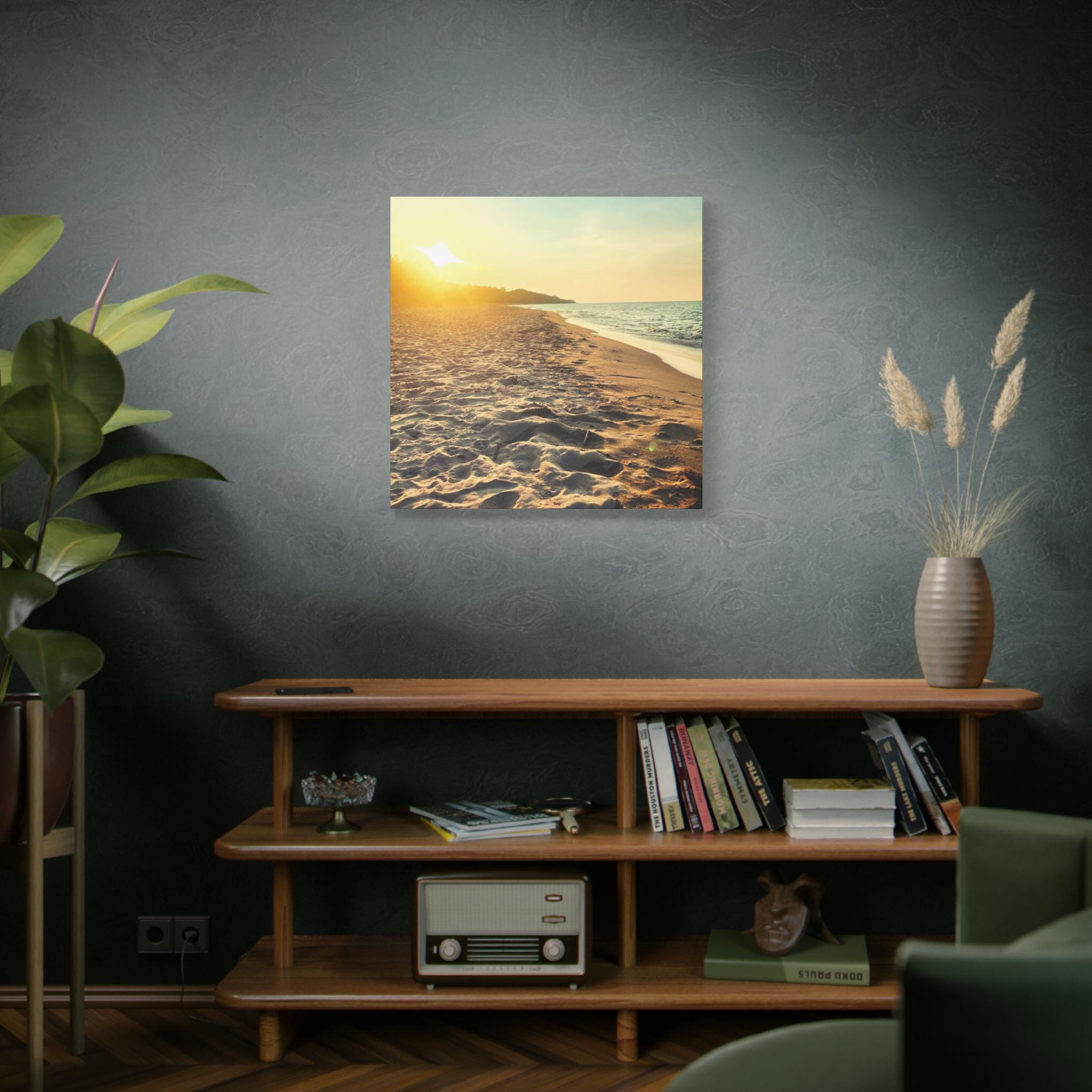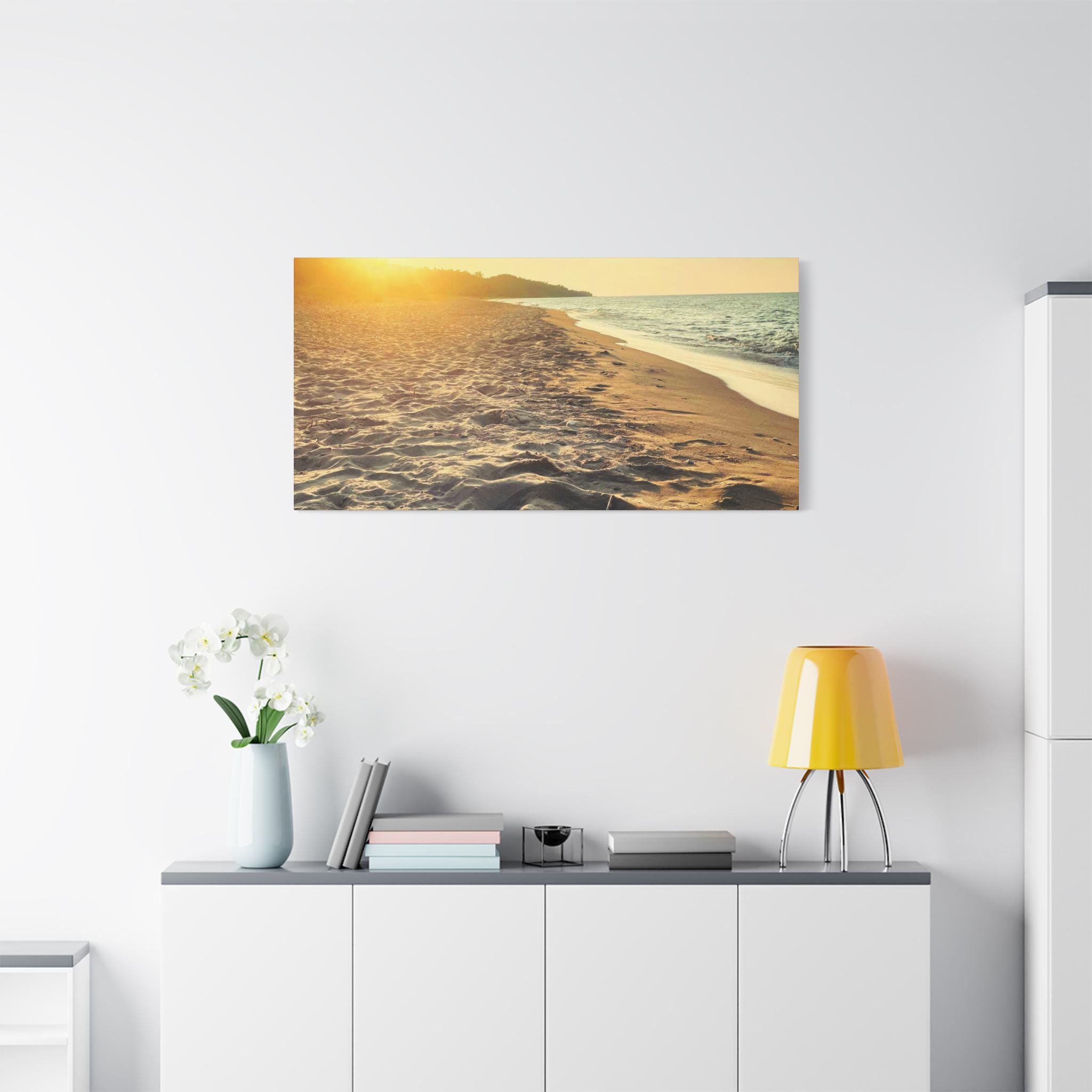 Bring the serene vibe of a beautiful golden sunset on a calm beach into your space with this matte canvas print. Perfect for beach lovers and those who enjoy peaceful and relaxing decor. Ideal for home decor, office spaces, and beach-themed rooms. Great for coastal home decor, beach house decor, and as a gift for nature enthusiasts.