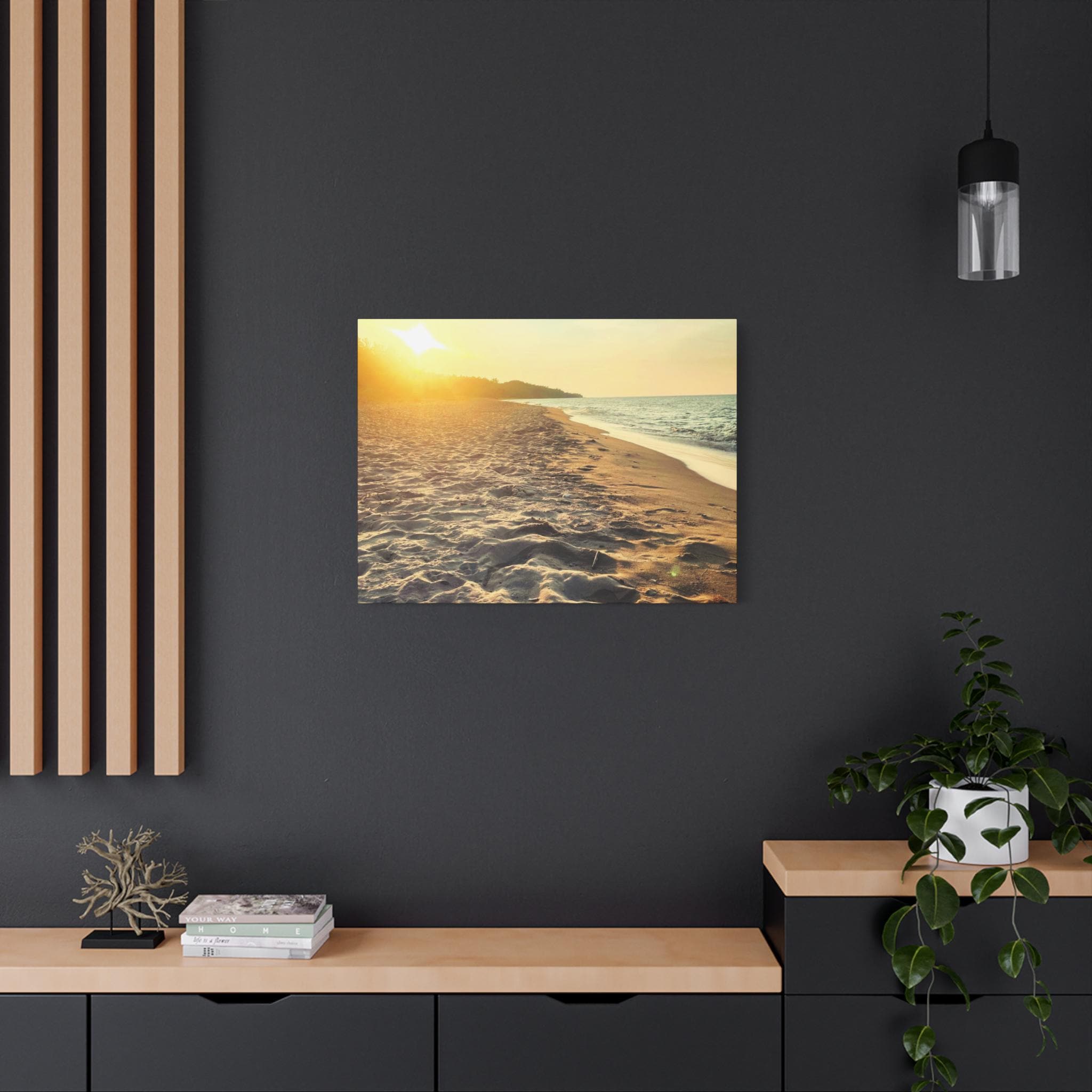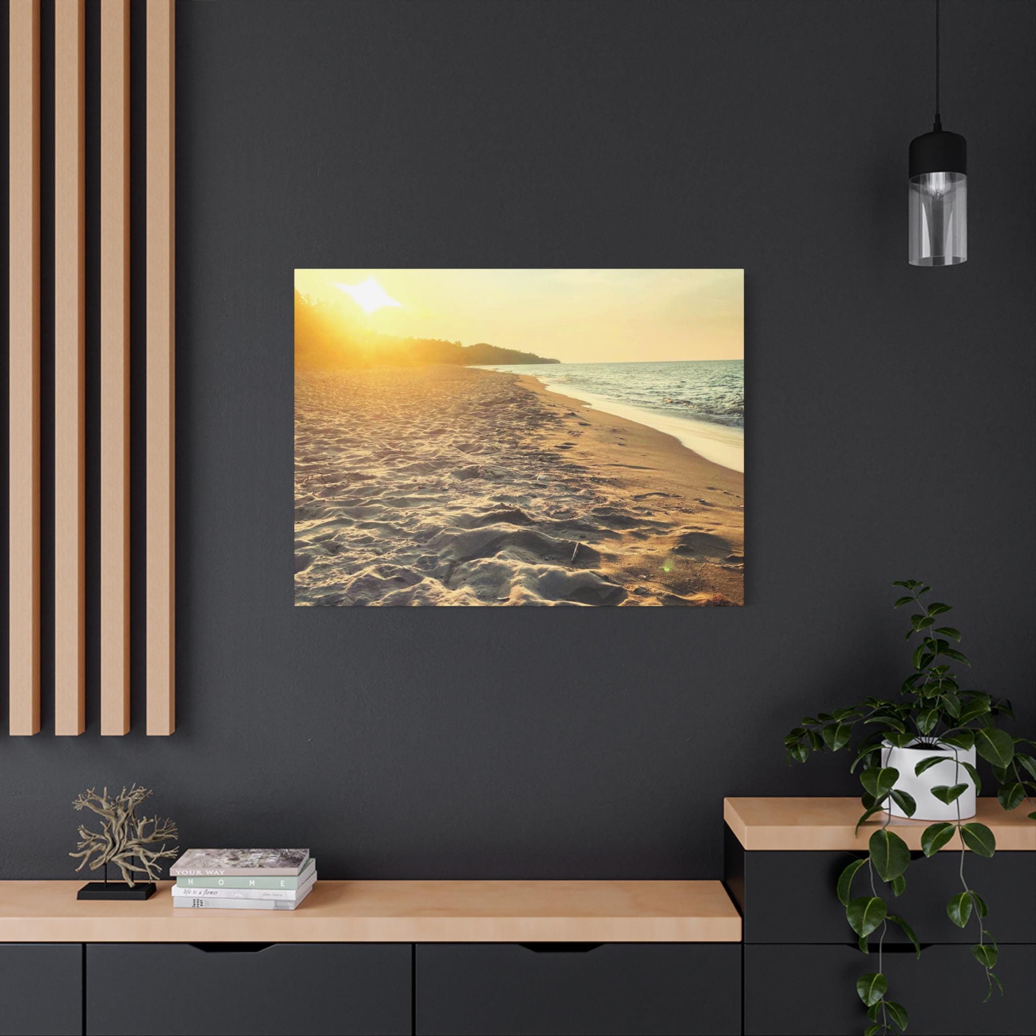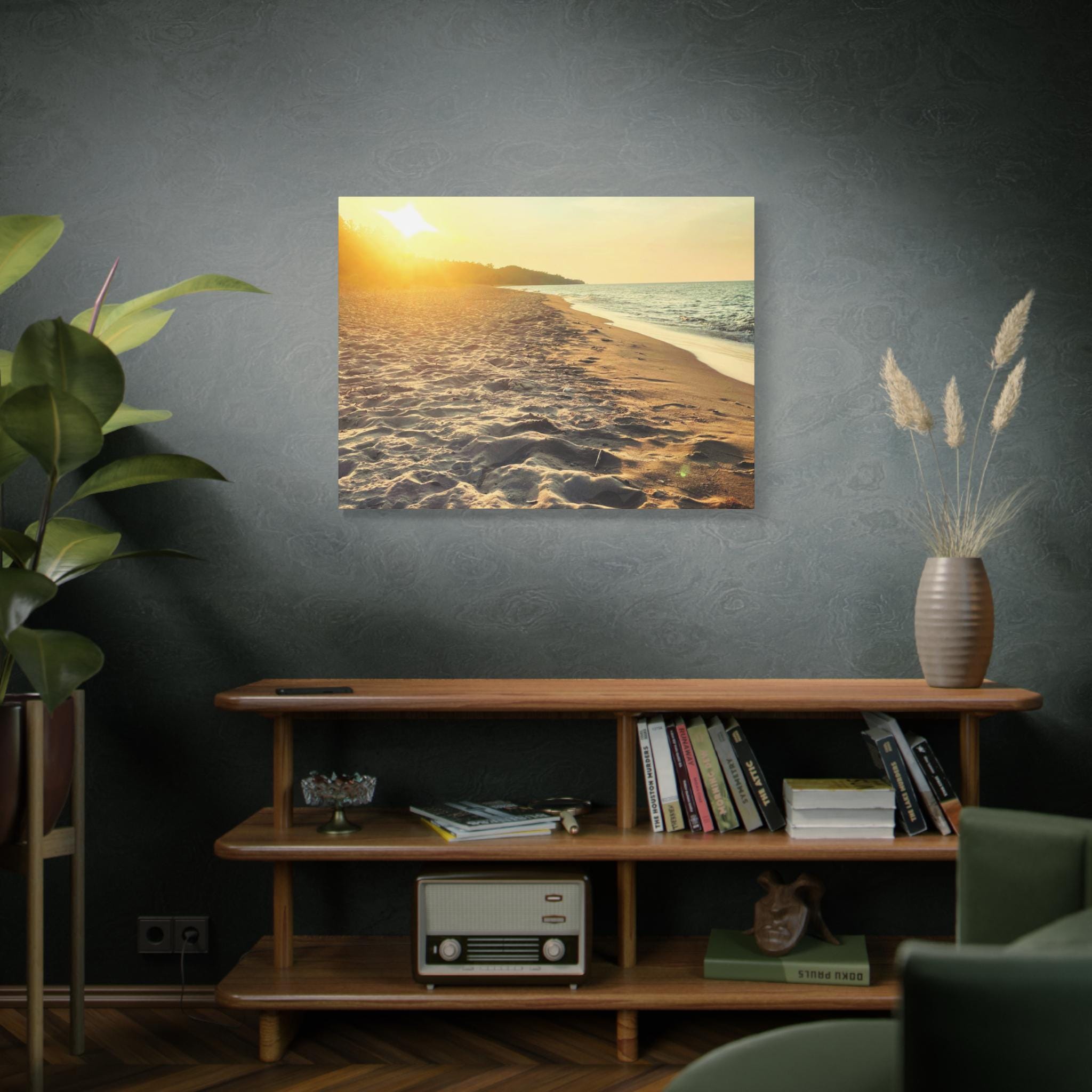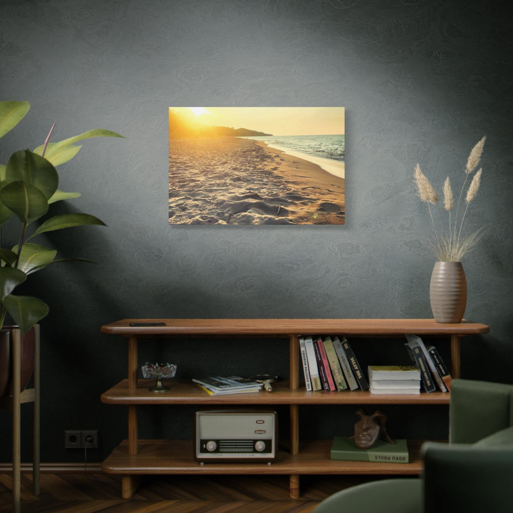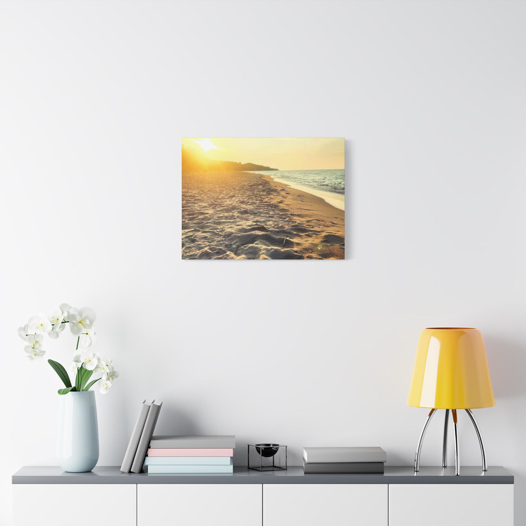 Bring the serene vibe of a beautiful golden sunset on a calm beach into your space with this matte canvas print. Perfect for beach lovers and those who enjoy peaceful and relaxing decor. Ideal for home decor, office spaces, and beach-themed rooms. Great for coastal home decor, beach house decor, and as a gift for nature enthusiasts.