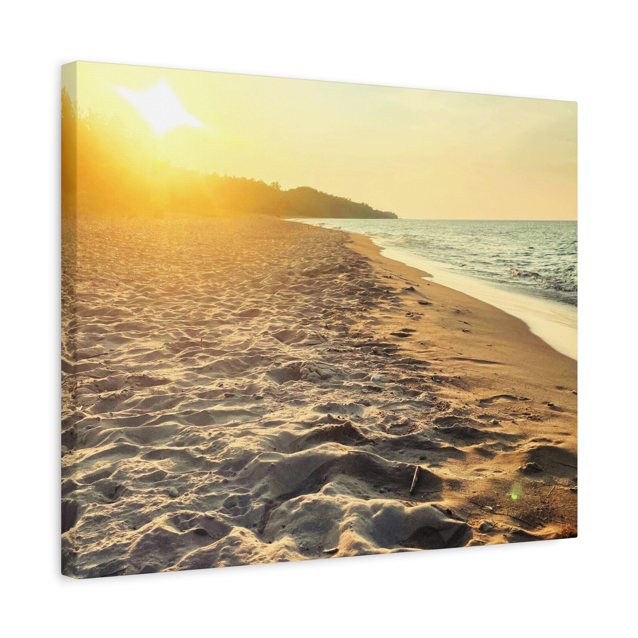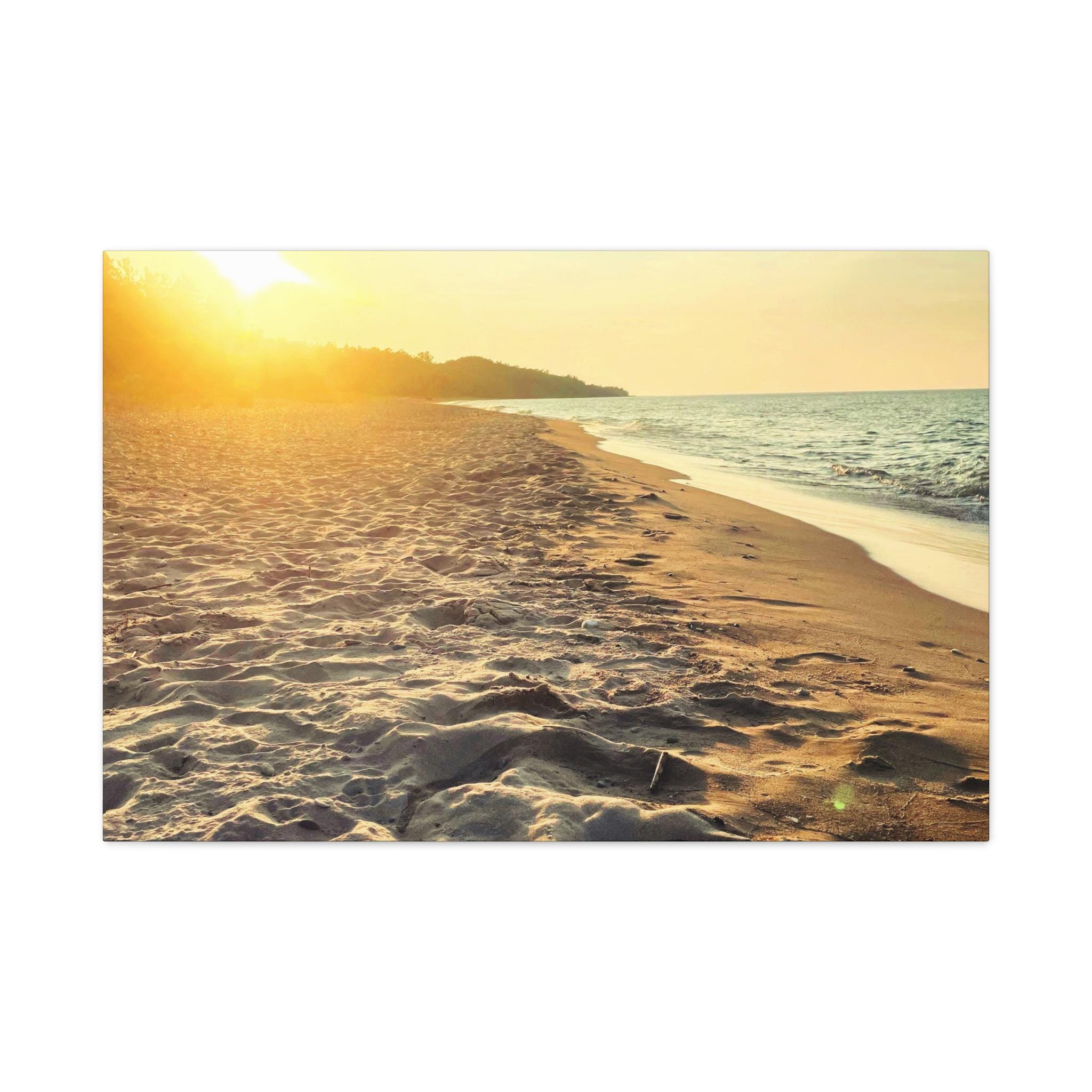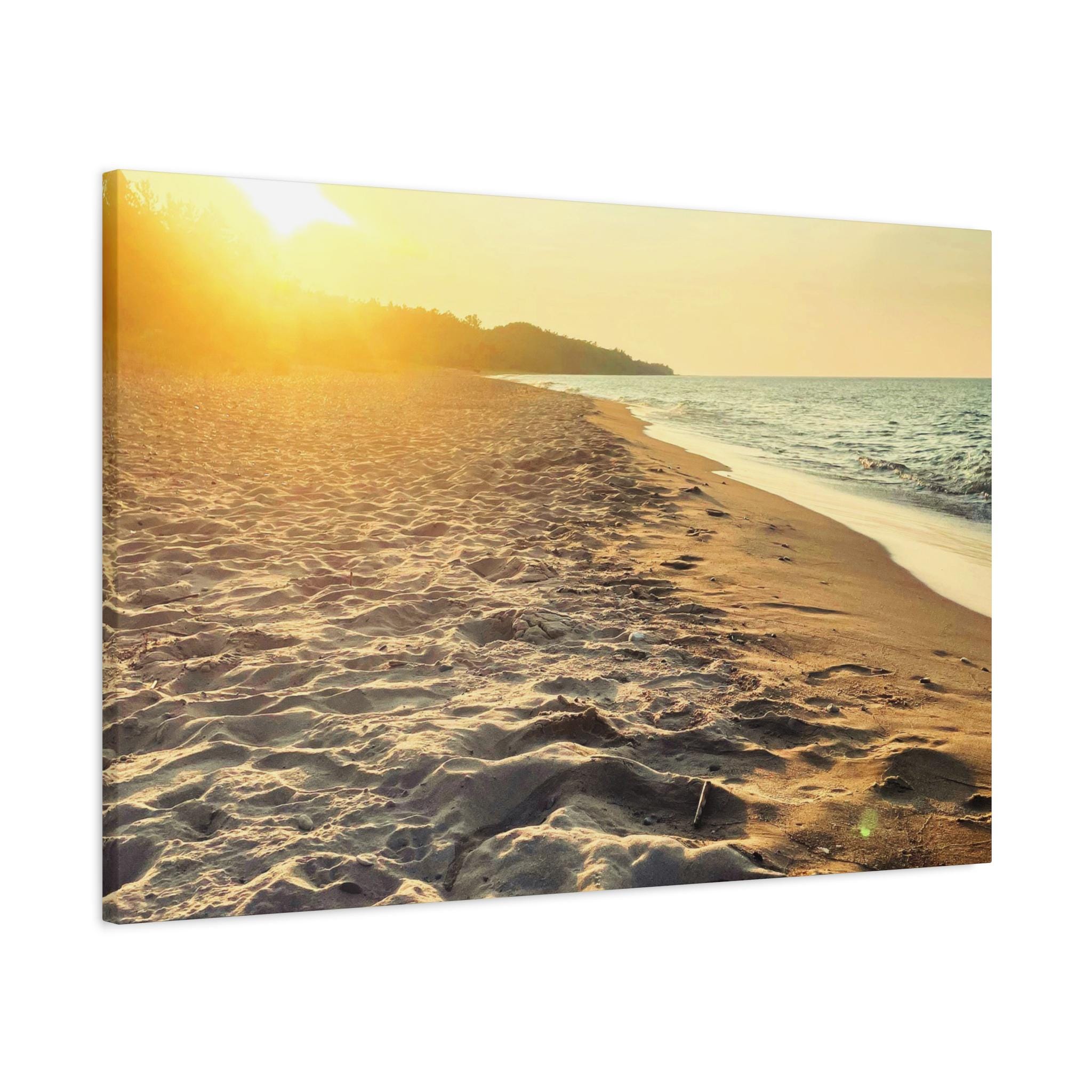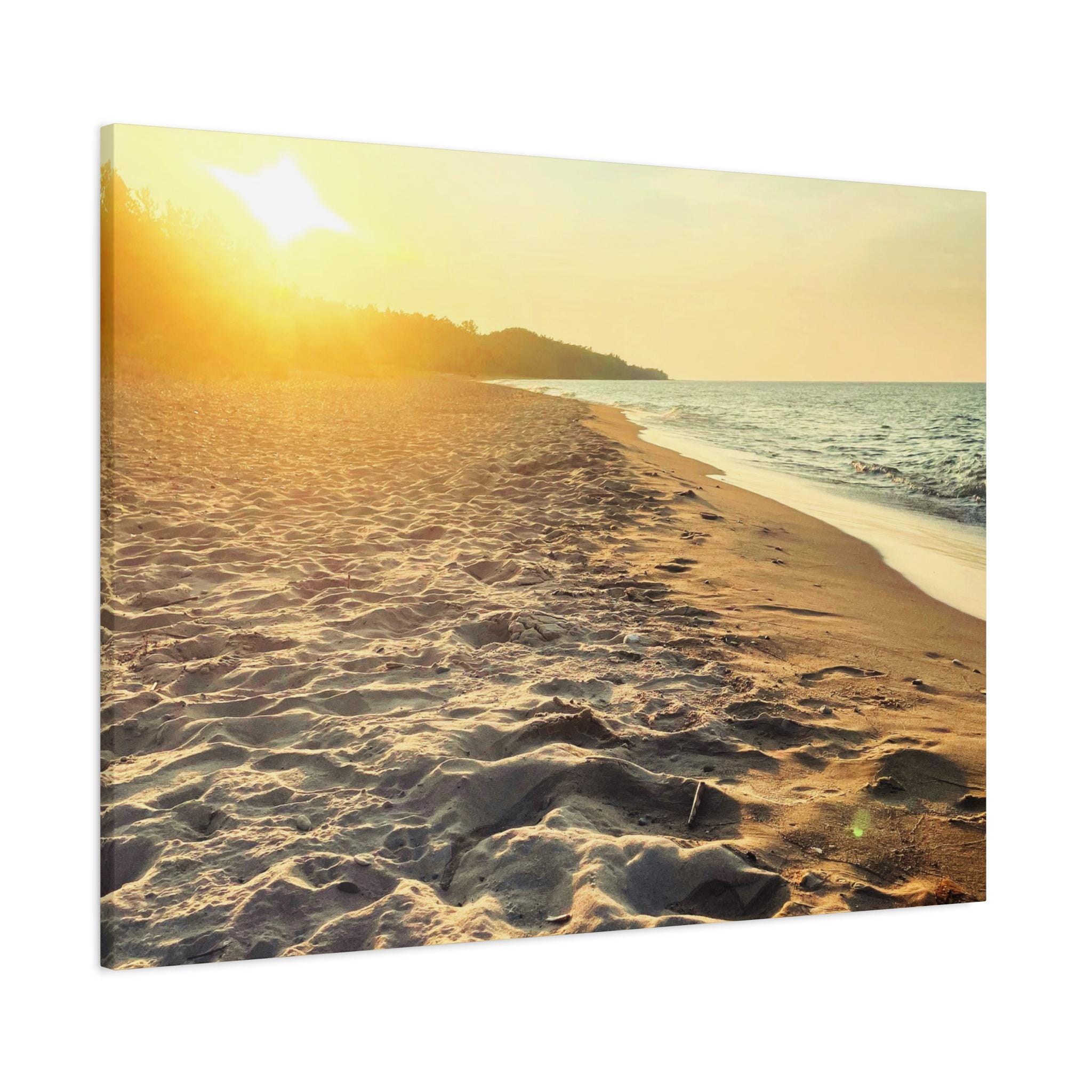 Bring the serene vibe of a beautiful golden sunset on a calm beach into your space with this matte canvas print. Perfect for beach lovers and those who enjoy peaceful and relaxing decor. Ideal for home decor, office spaces, and beach-themed rooms. Great for coastal home decor, beach house decor, and as a gift for nature enthusiasts.