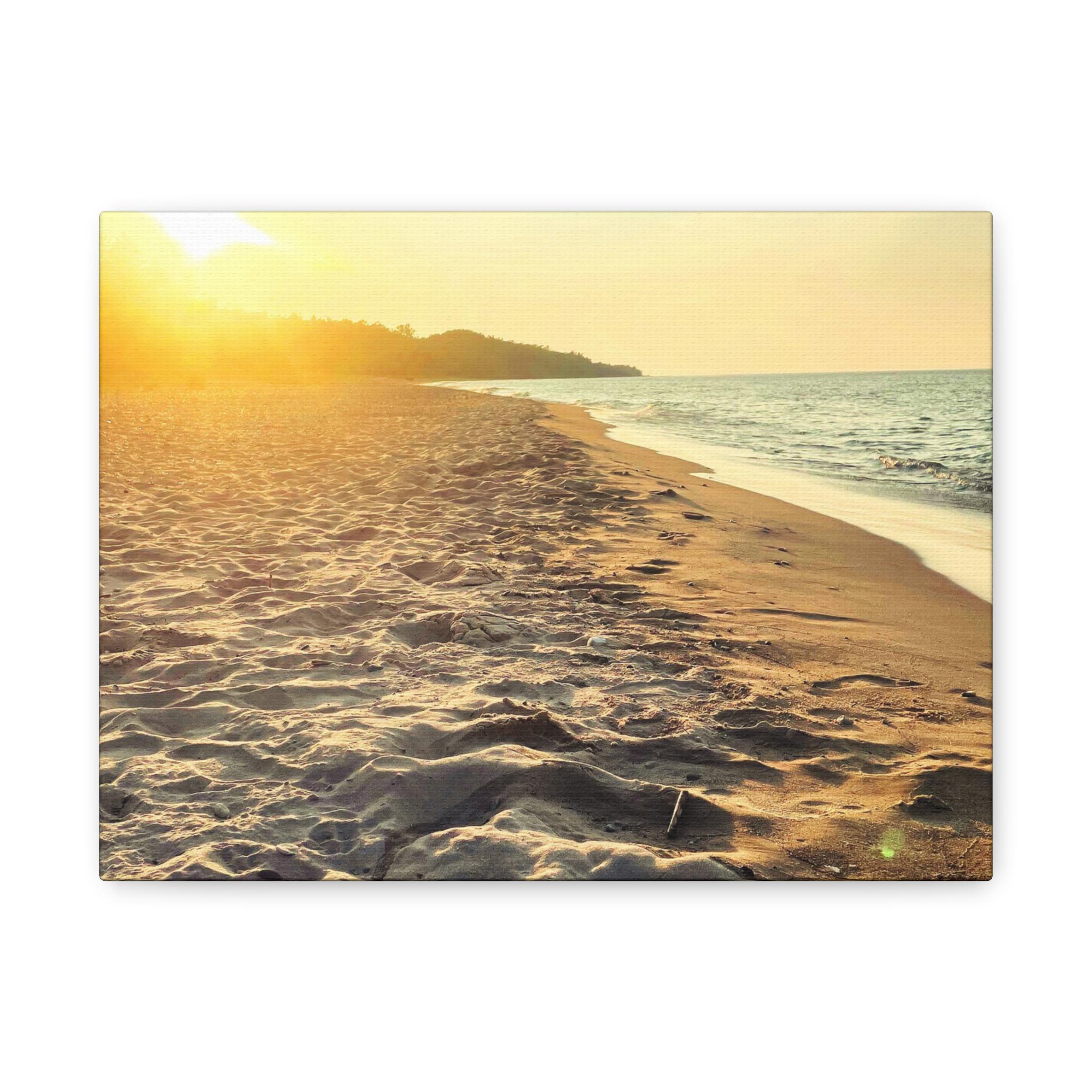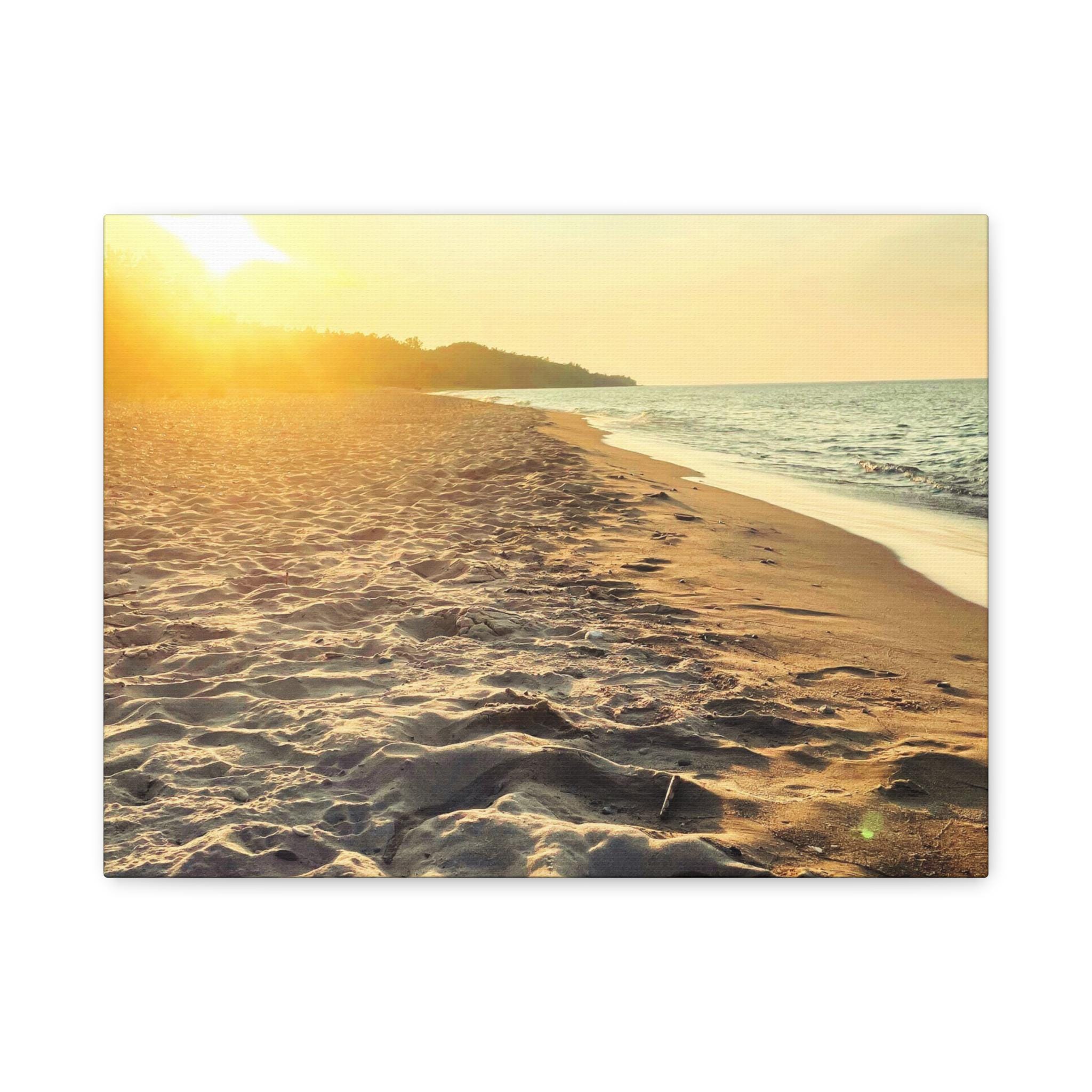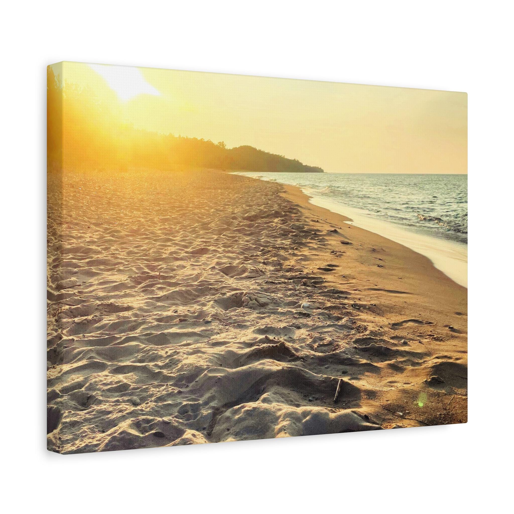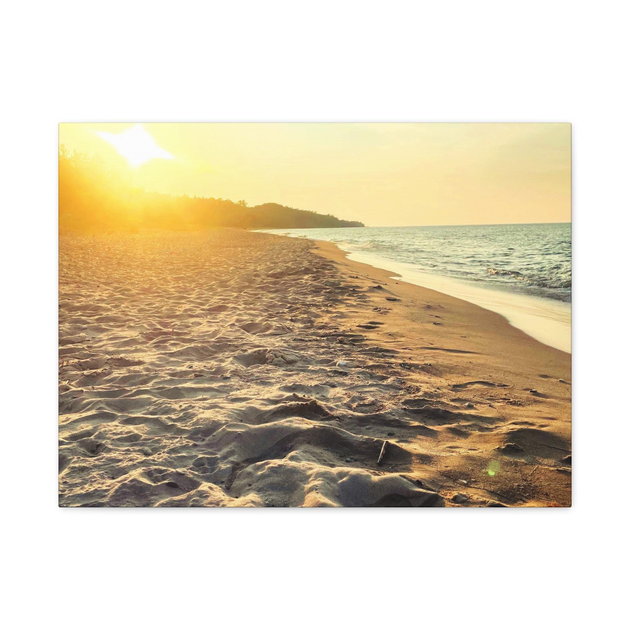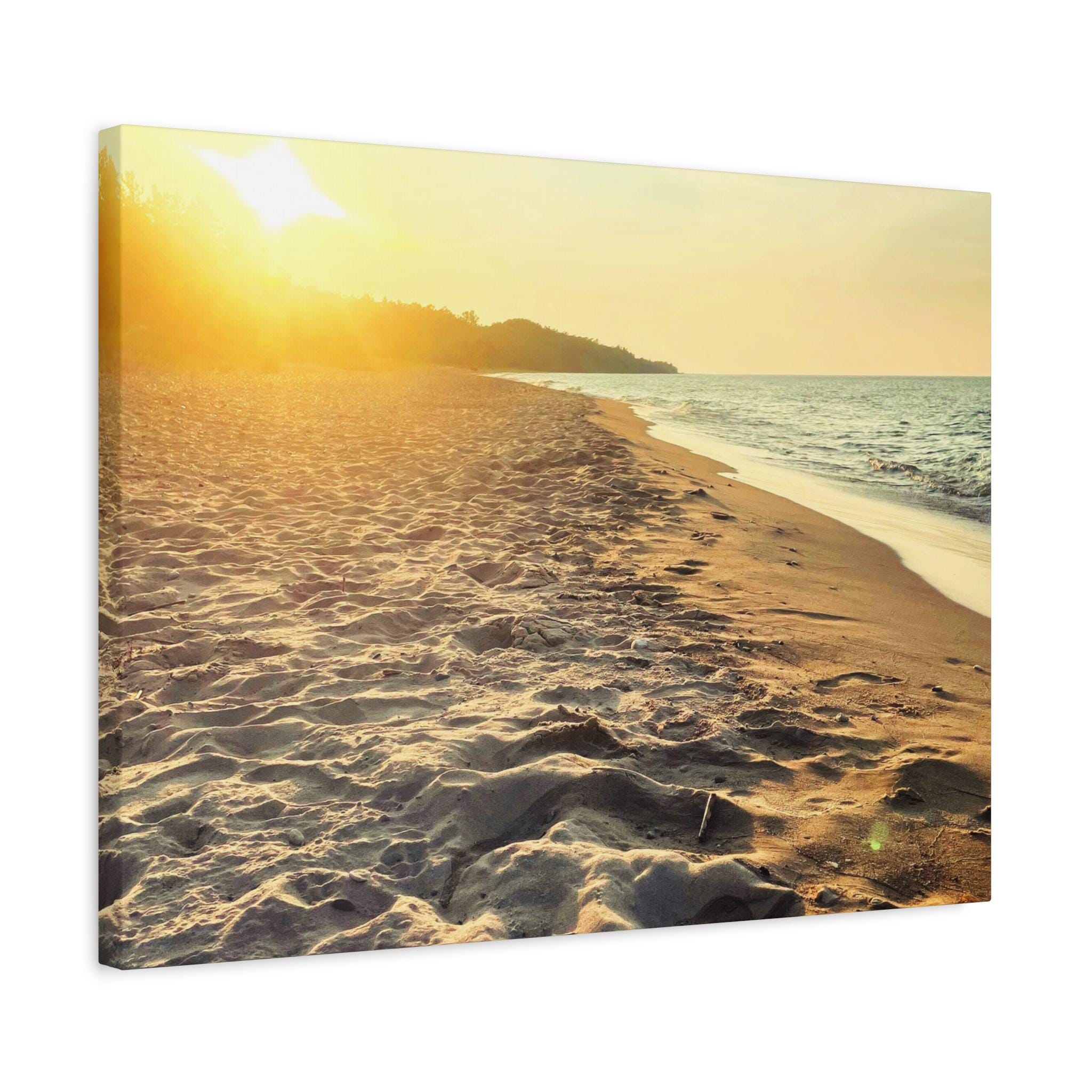 Bring the serene vibe of a beautiful golden sunset on a calm beach into your space with this matte canvas print. Perfect for beach lovers and those who enjoy peaceful and relaxing decor. Ideal for home decor, office spaces, and beach-themed rooms. Great for coastal home decor, beach house decor, and as a gift for nature enthusiasts.