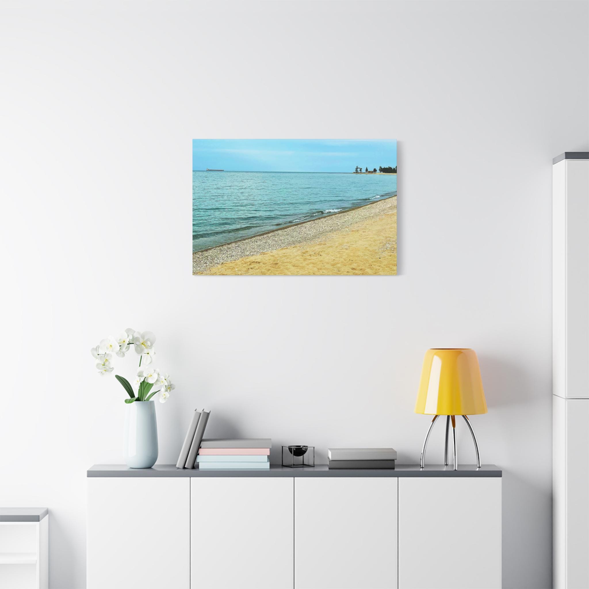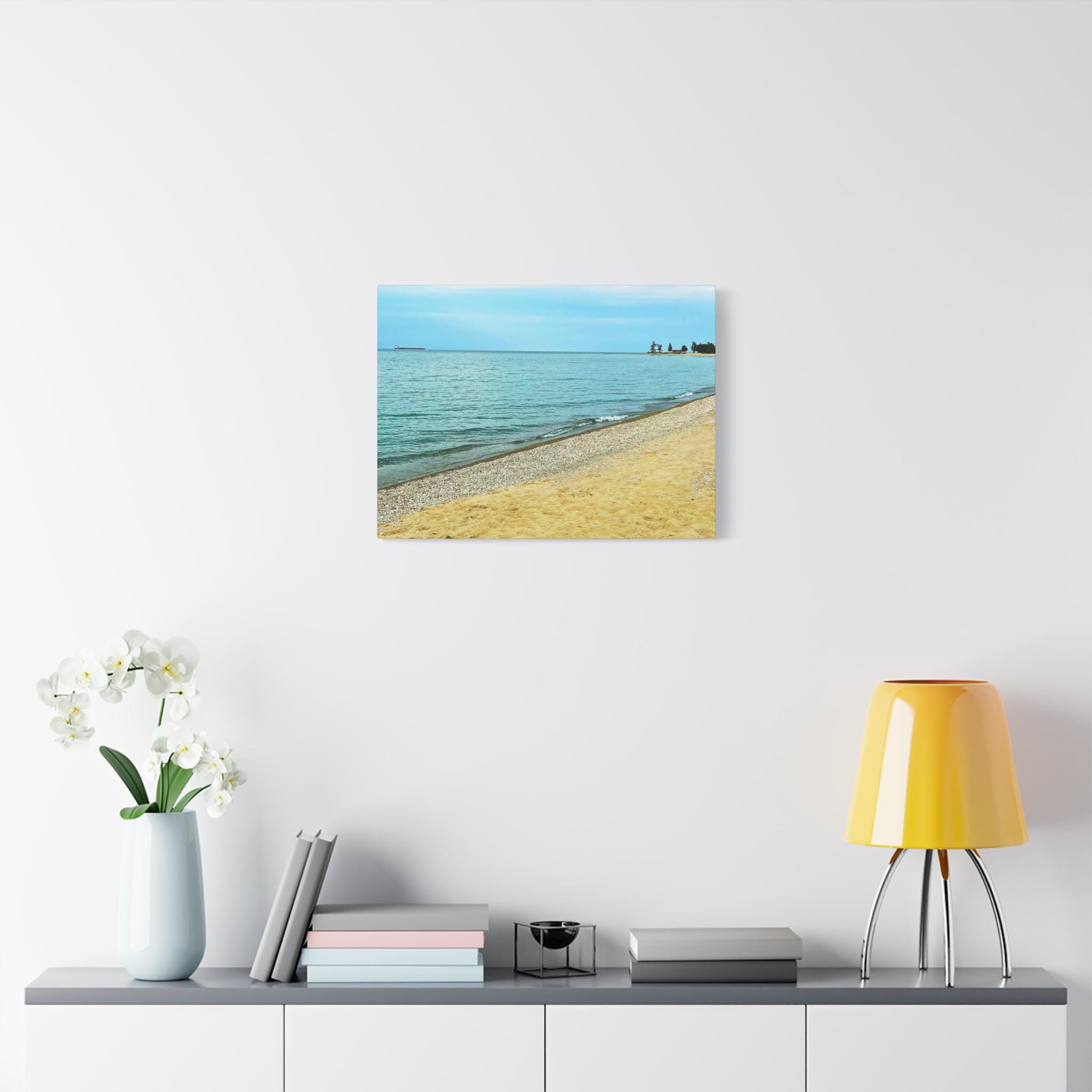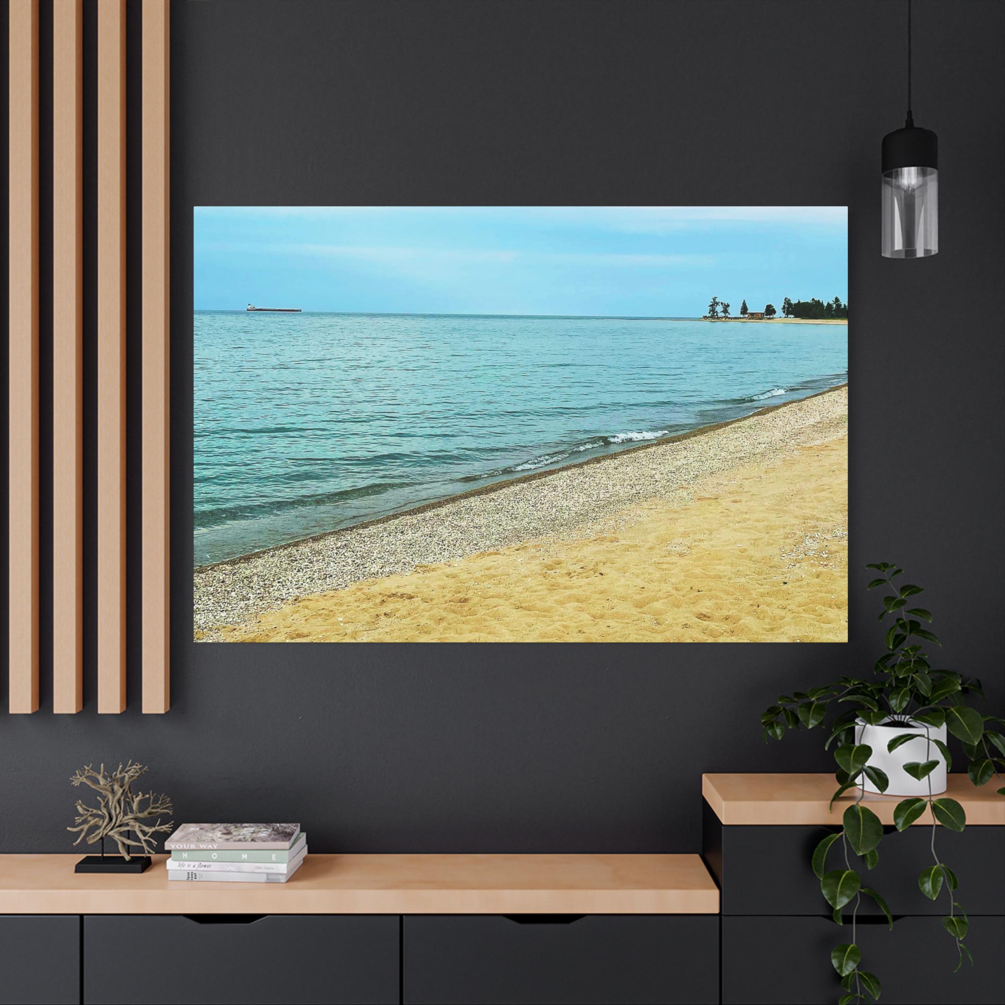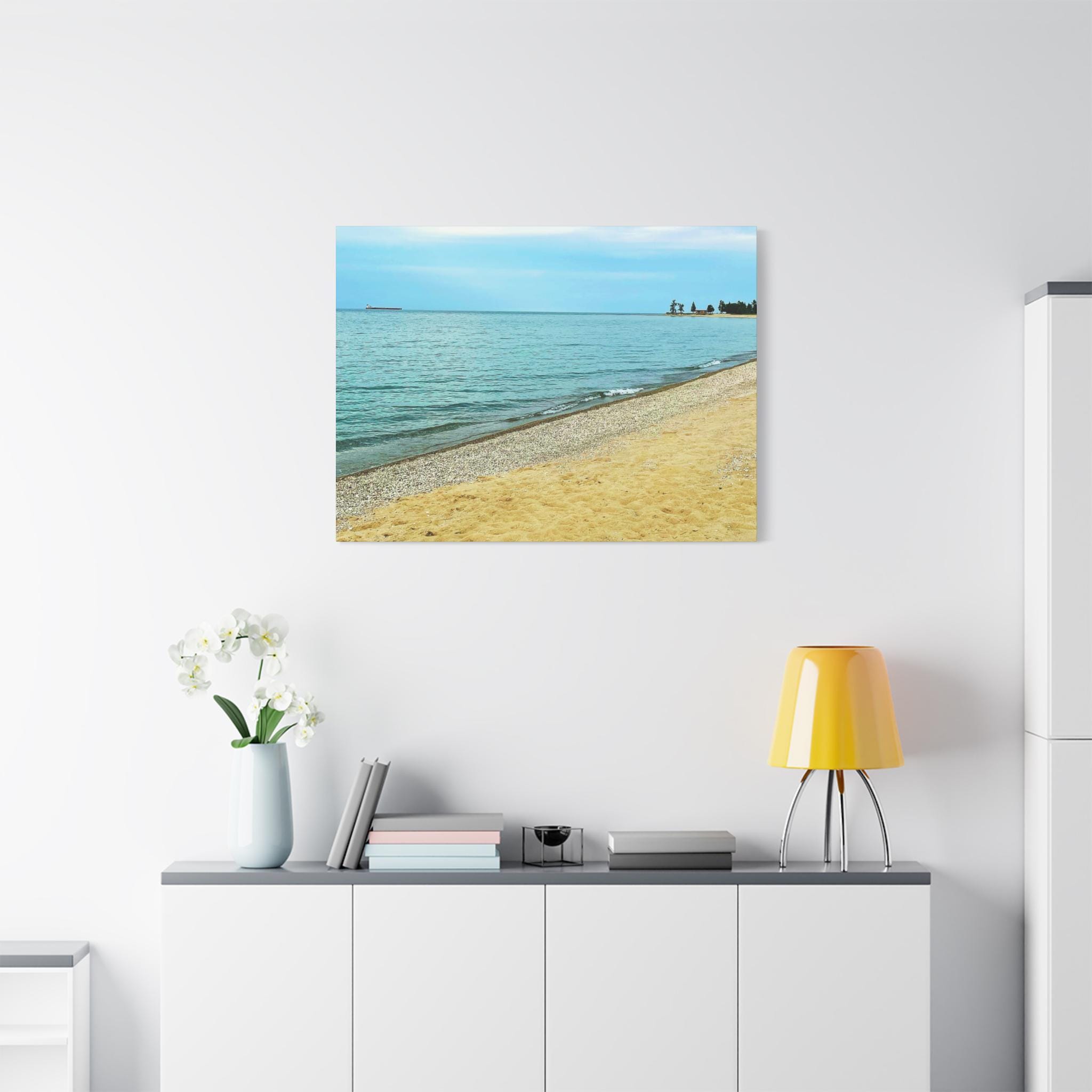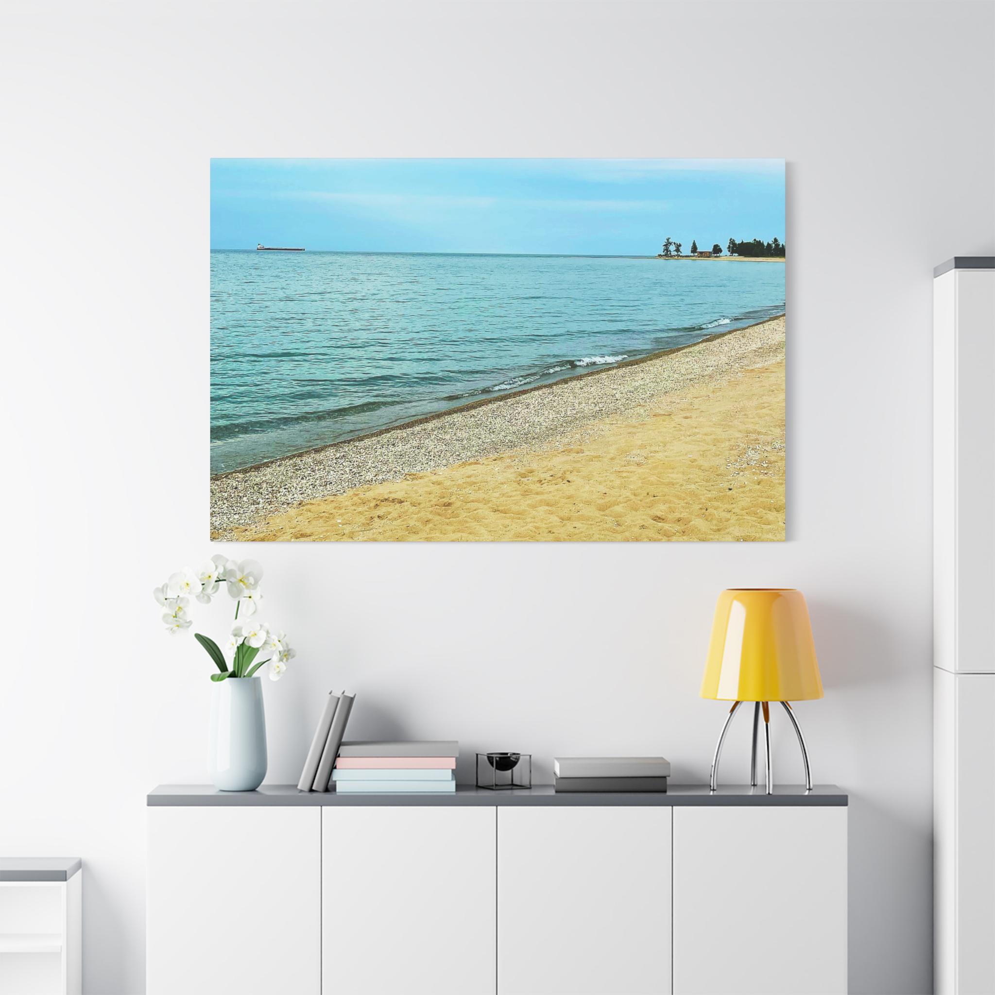 Capture the peaceful charm of the coast with this calm beach photography print. Featuring golden sand, gentle waves, and a distant boat on the horizon, this shoreline wall art adds a sense of relaxation and coastal beauty to any space. Perfect for nautical-themed rooms, beach house decor, or as a thoughtful gift for ocean lovers, this print brings the serene spirit of the shore indoors.
