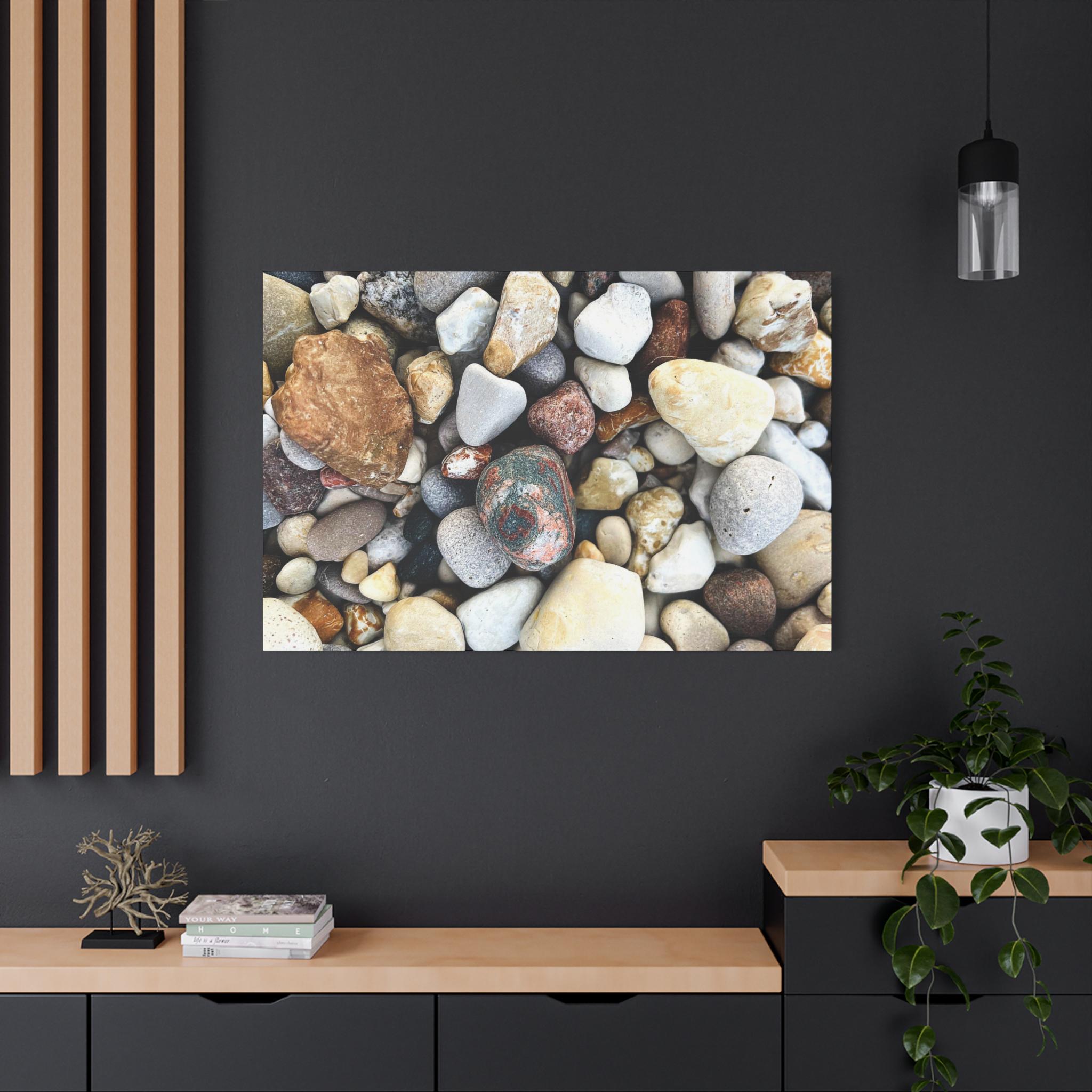 Bring the beauty of nature indoors with this colorful shoreline rock print. Featuring smooth stones in earth tones and unique patterns, this piece highlights the natural artistry of the coast. Available as a premium canvas, framed print, or poster, it’s perfect for adding rustic charm to any home or office.