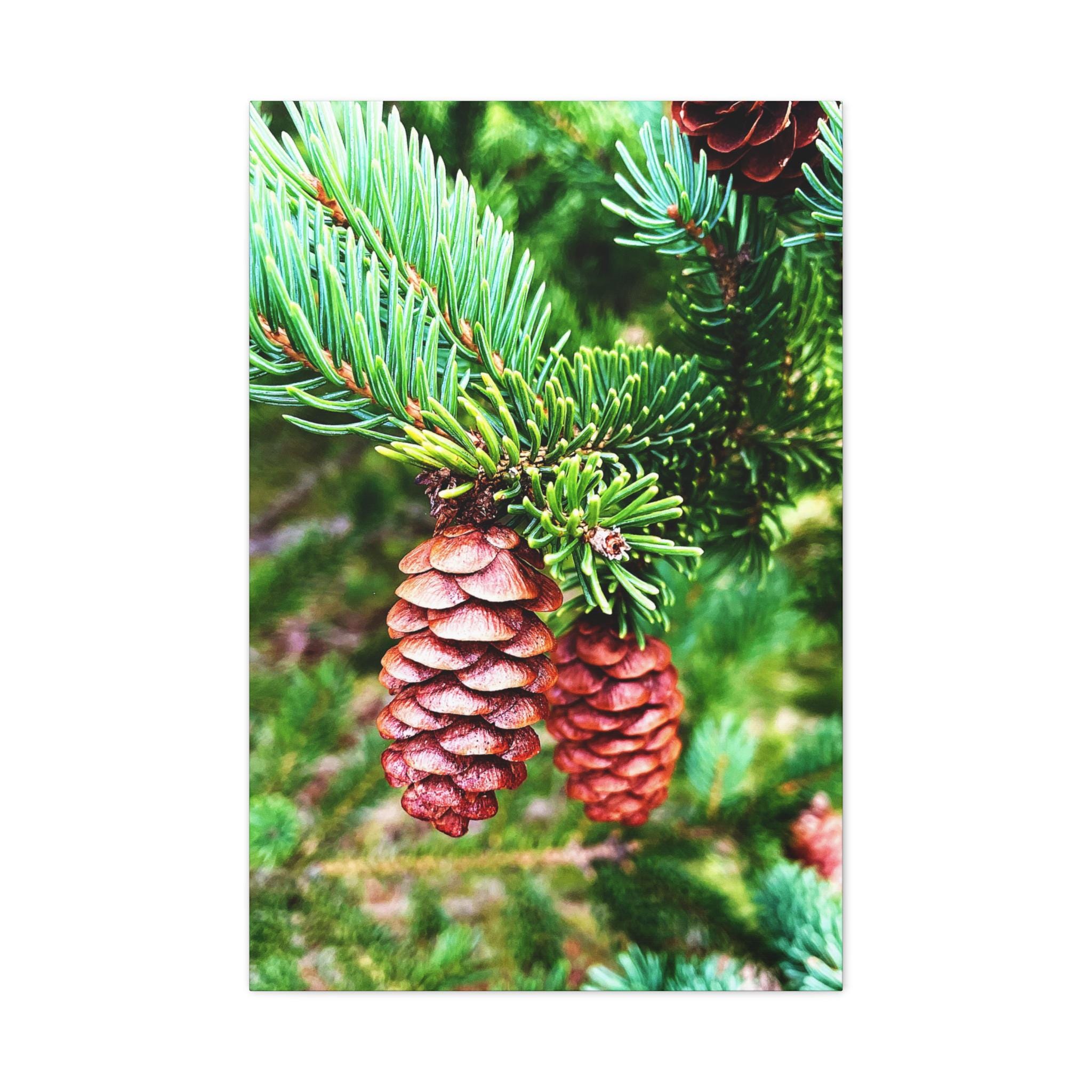 A detailed photograph of pinecones nestled among fresh green pine needles. Perfect for seasonal designs, nature lovers, and rustic-inspired products.
