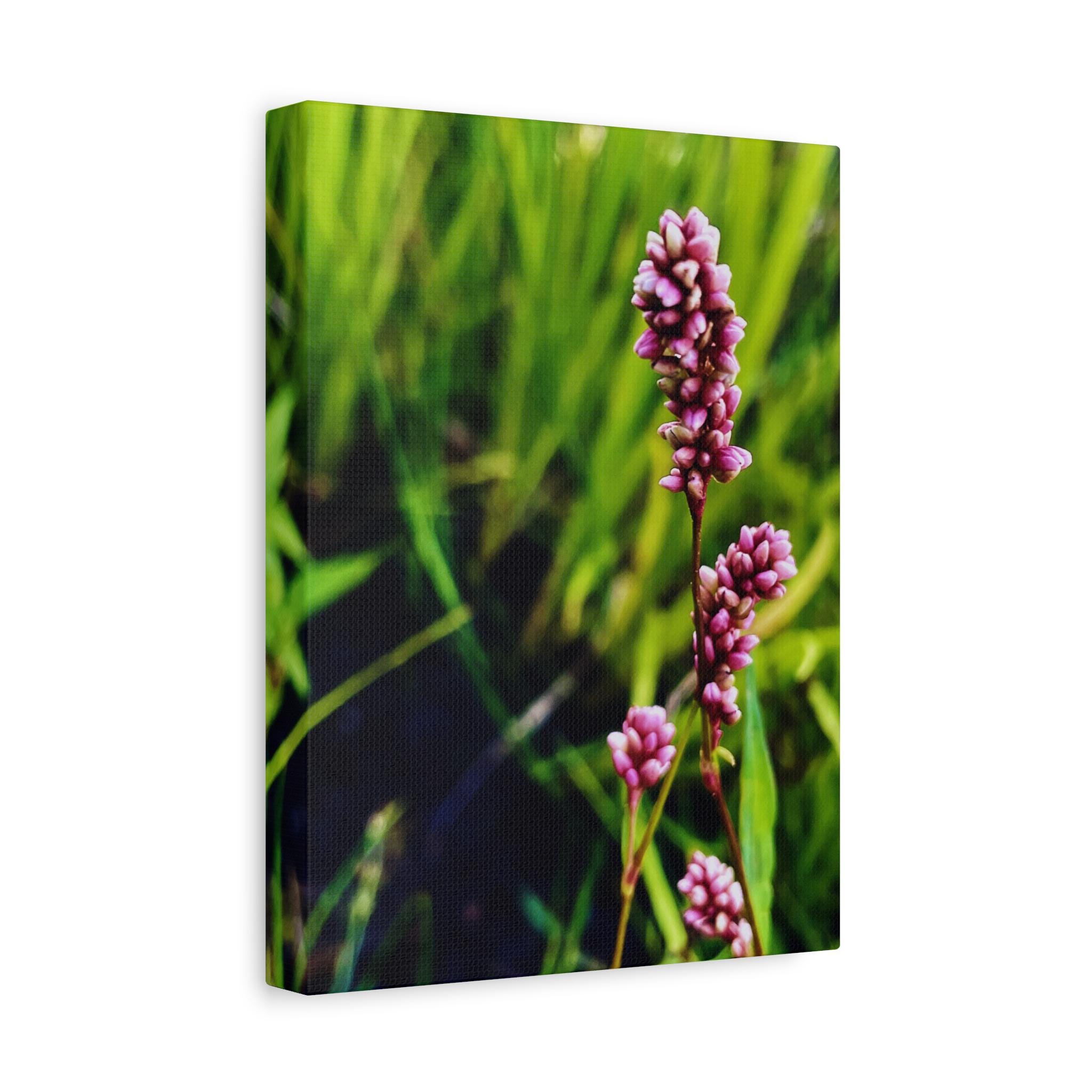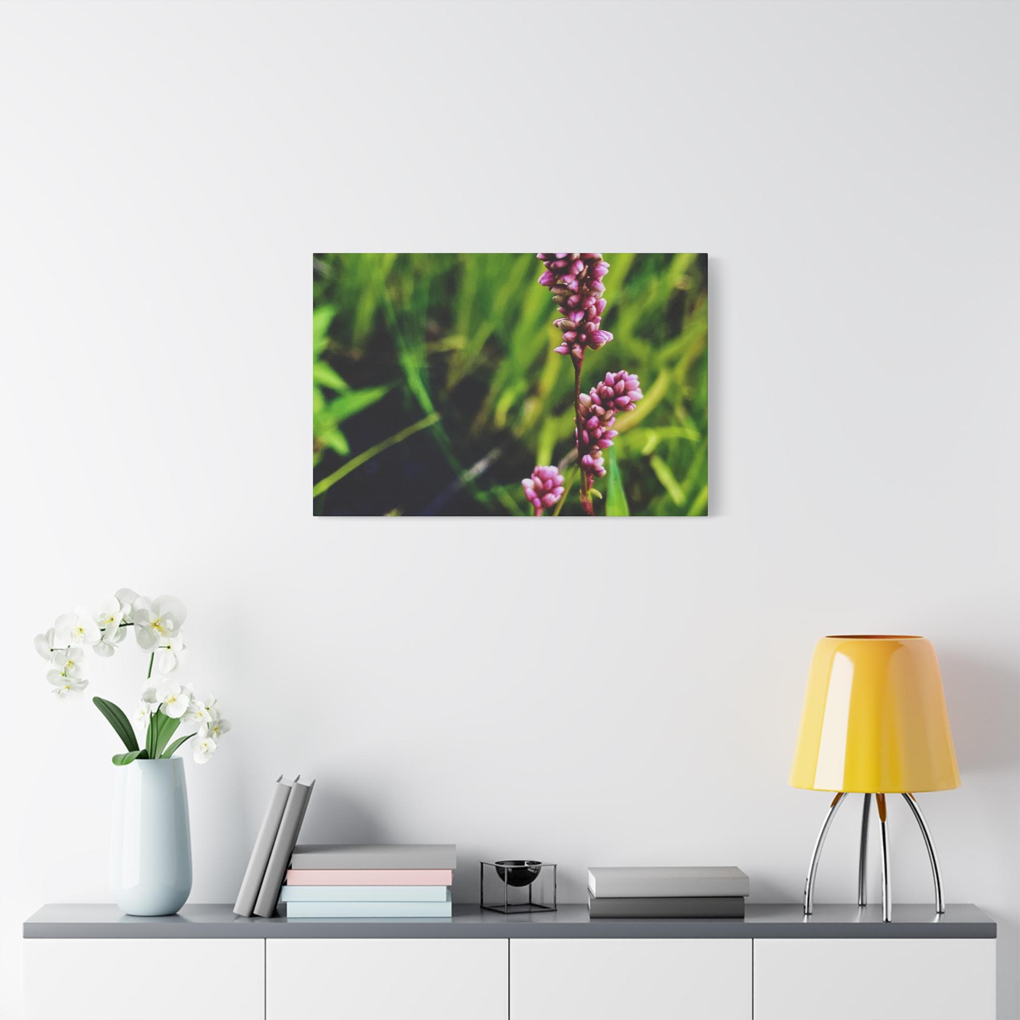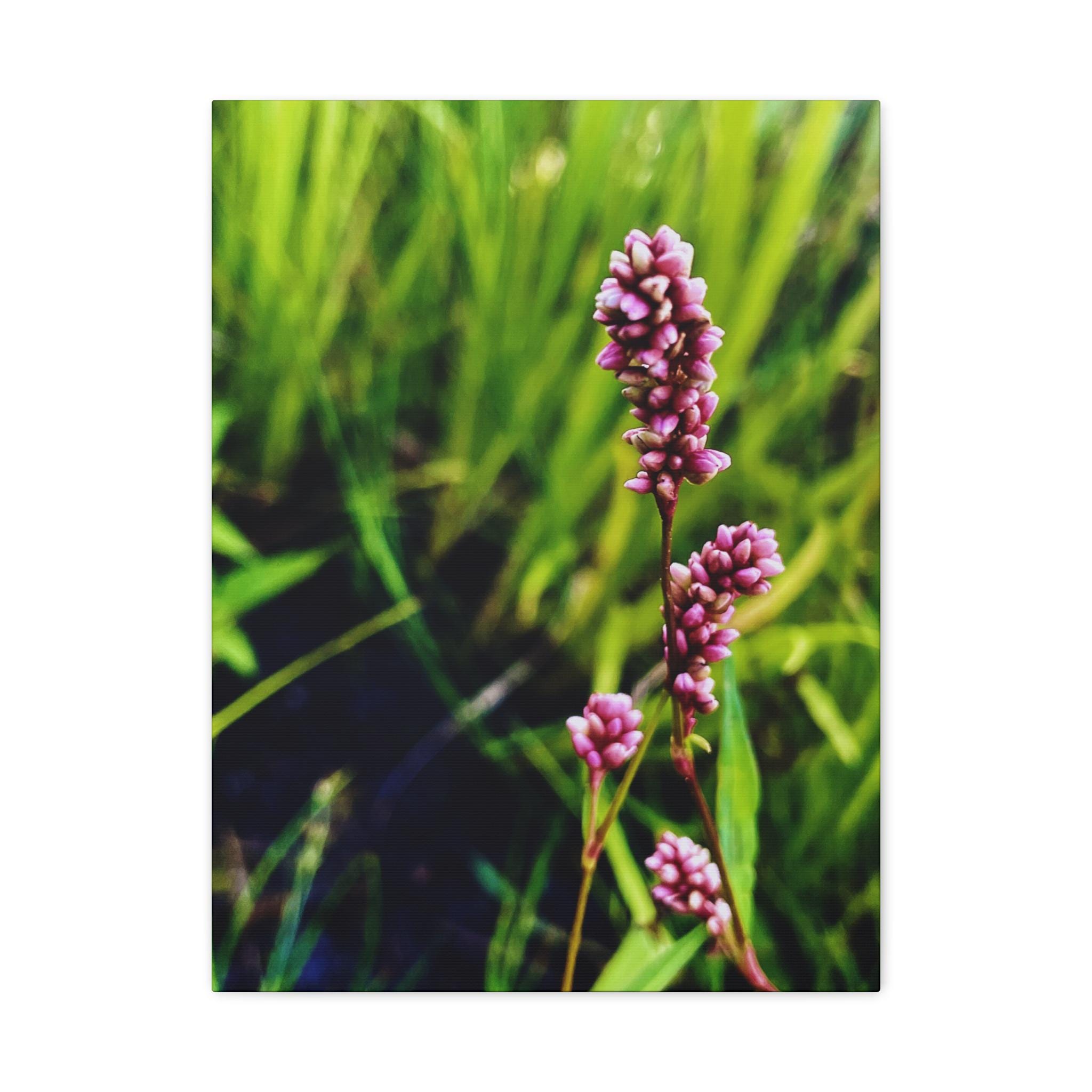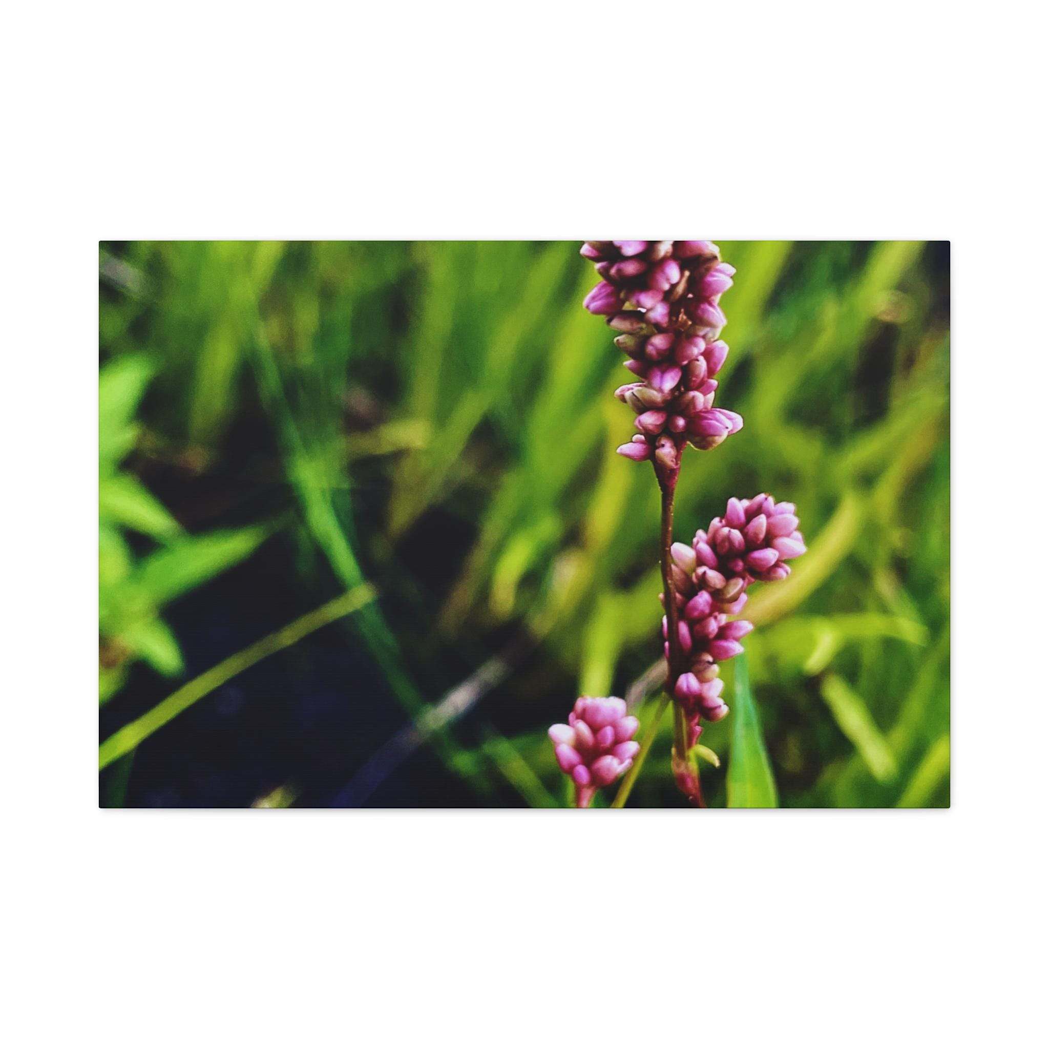 Celebrate the quiet elegance of the outdoors with this canvas print featuring a graceful cluster of pink wildflowers. Captured in close-up detail against a vibrant green background, this artwork highlights the textures and colors of wild plants in their natural setting.