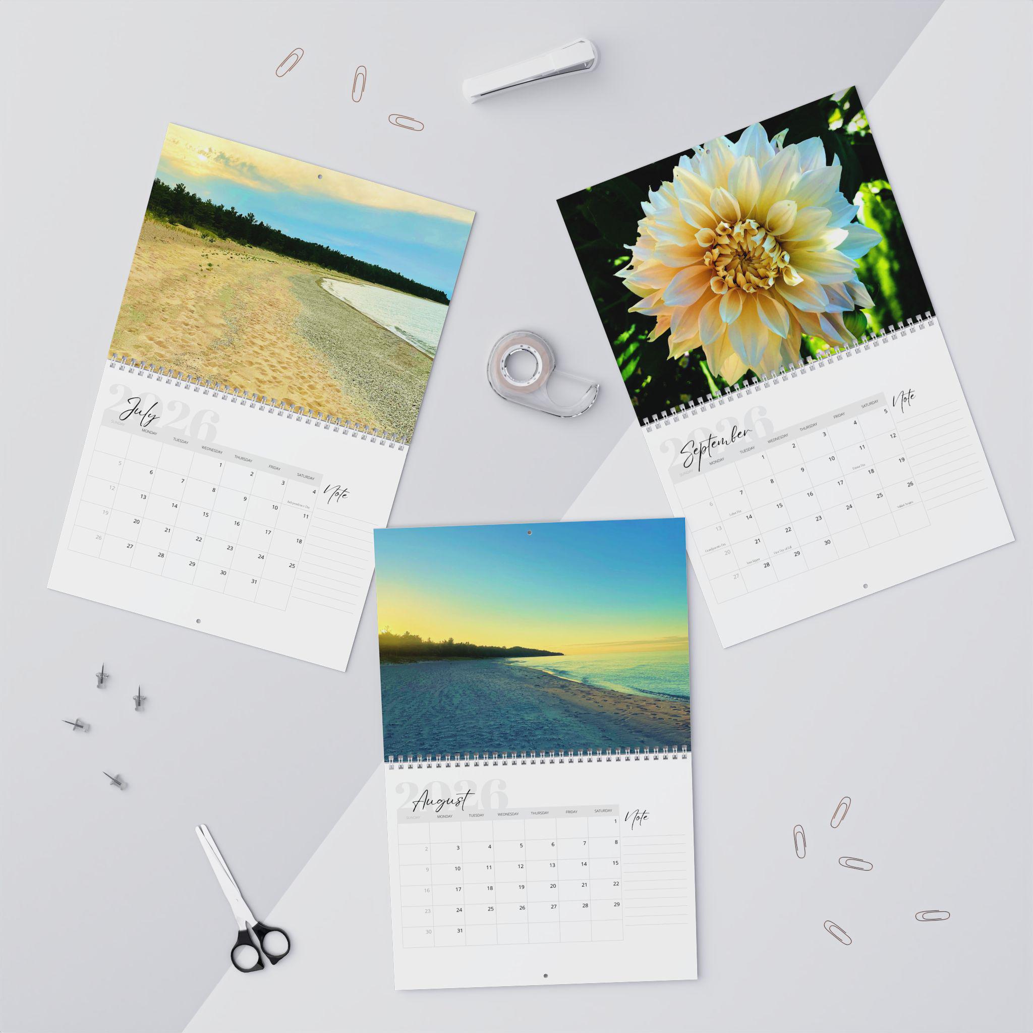 Bring the beauty of Northern Michigan into your home or office all year long. This stunning 2026 wall calendar features original photography showcasing the region’s best sights—snow-covered winters, peaceful beaches, vibrant dahlias, colorful fall foliage, and breathtaking sunrises. Each month captures a new perspective of the seasons, making this more than just a calendar—it’s a piece of art for your wall.