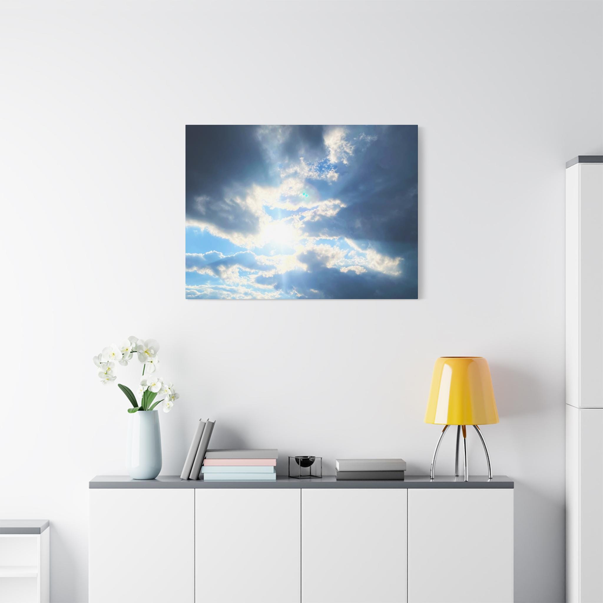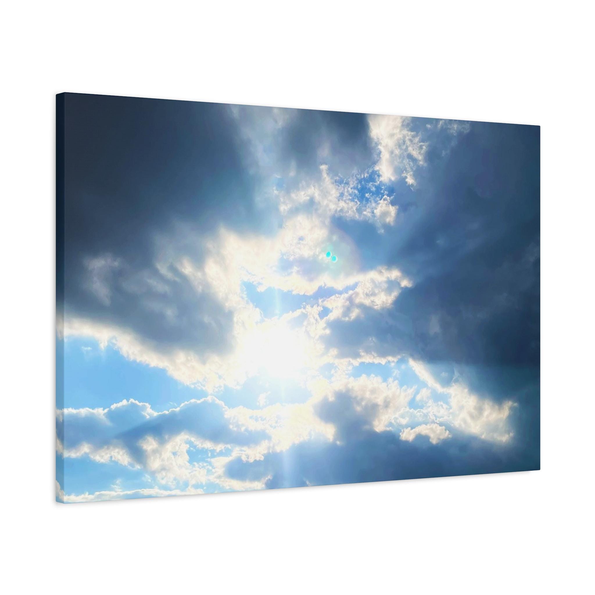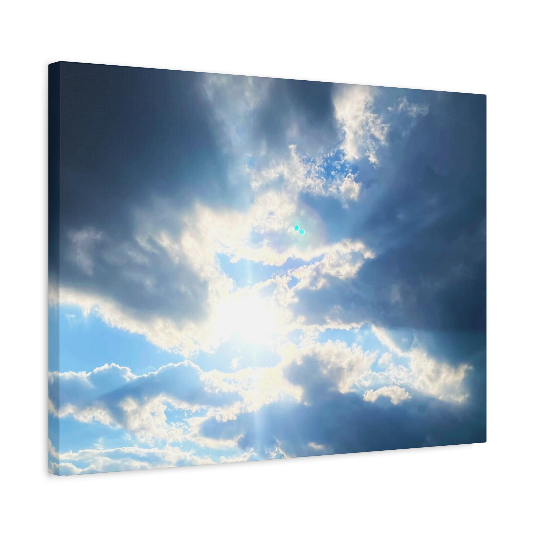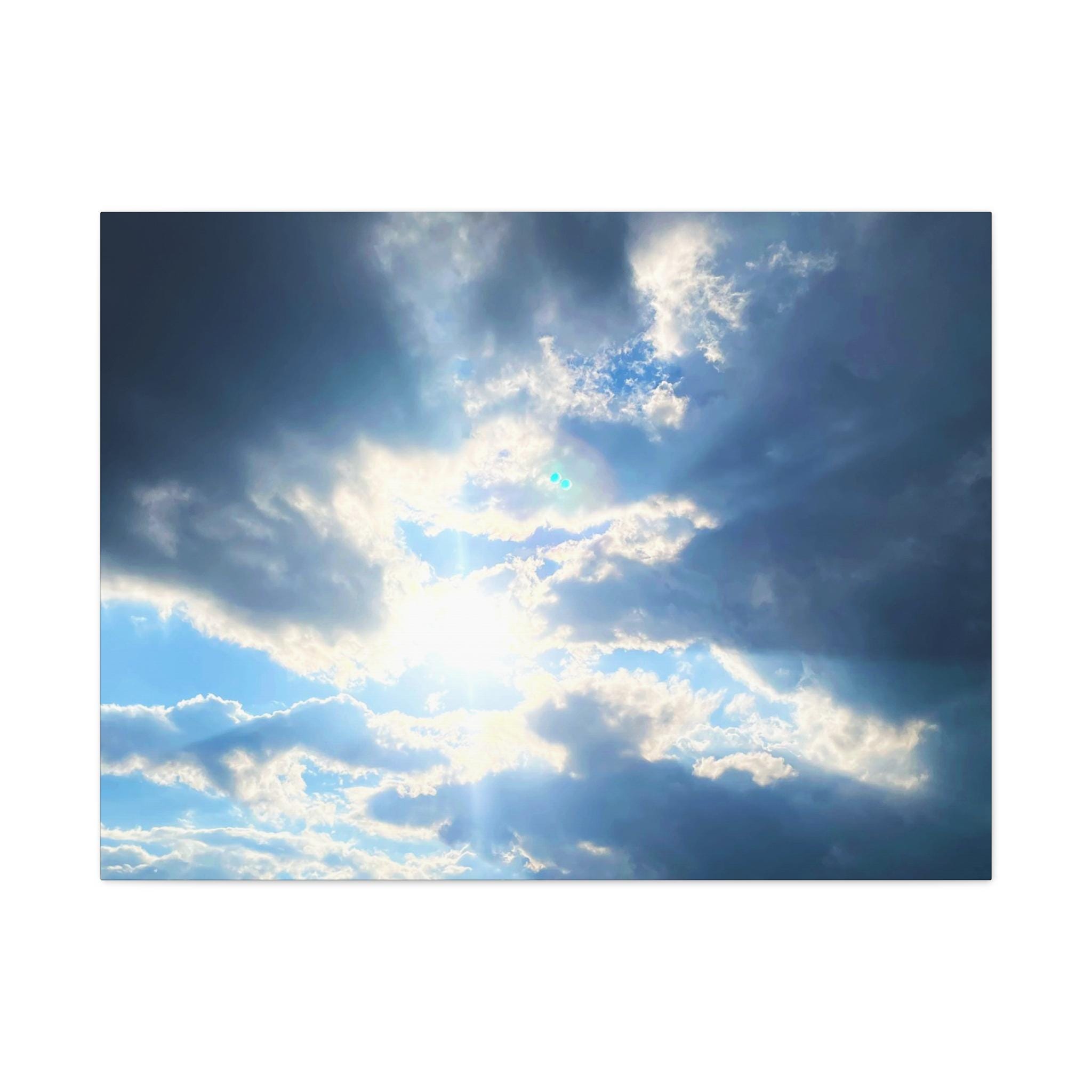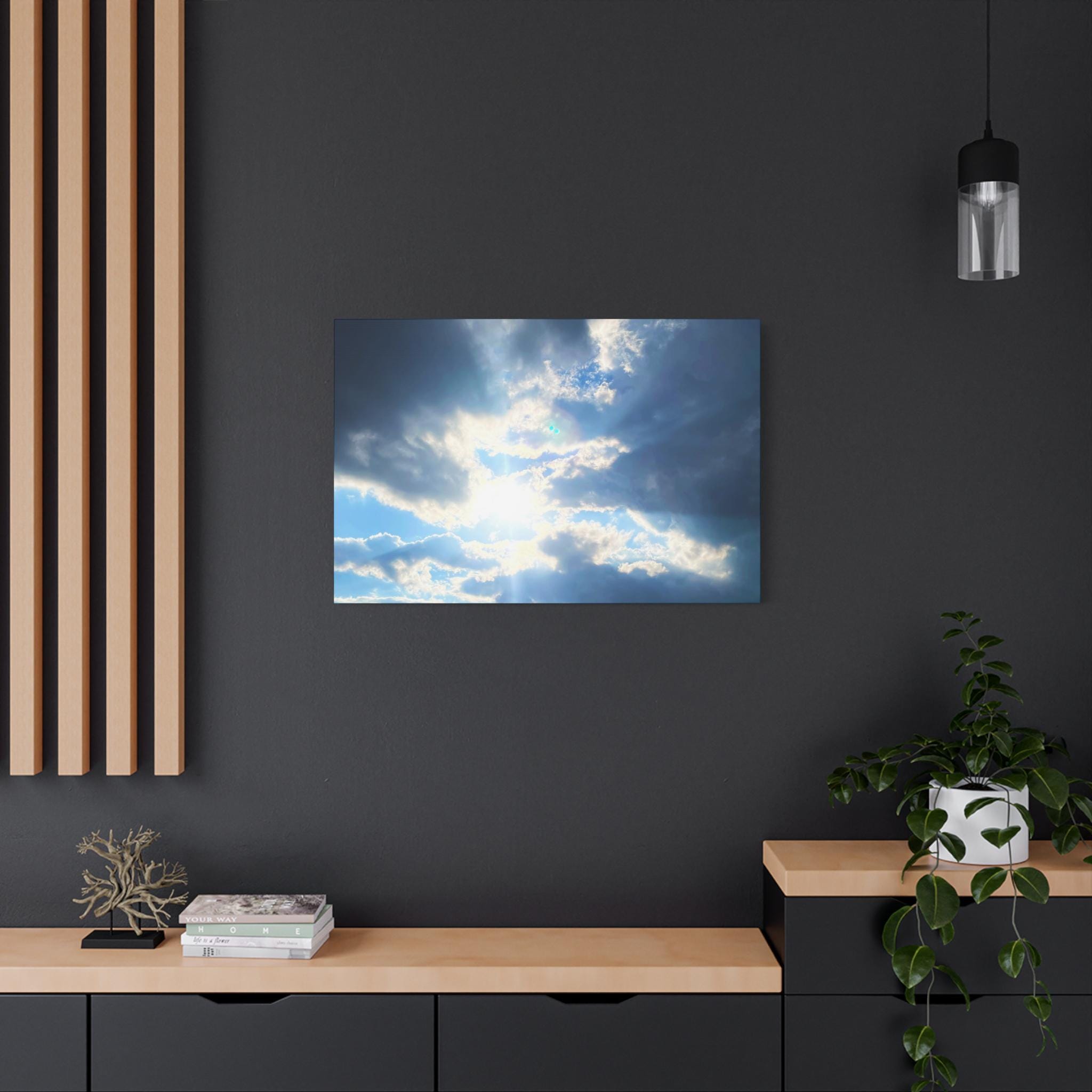 Add inspiration and light to your space with this stunning canvas print. Featuring rays of sunlight breaking through dramatic clouds, this artwork captures both power and peace in a timeless sky scene.