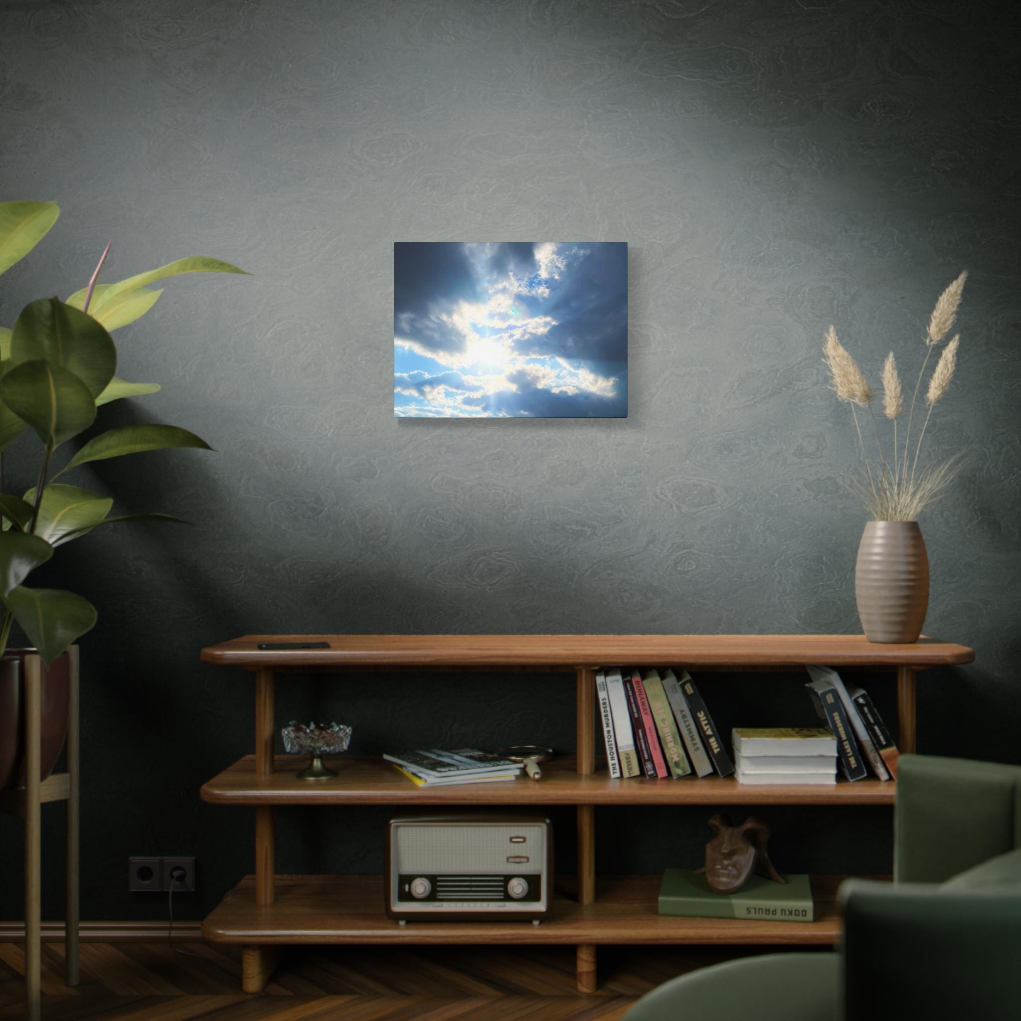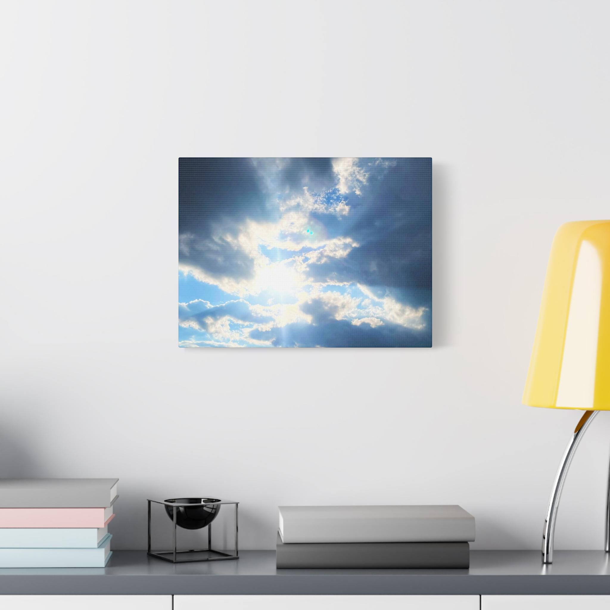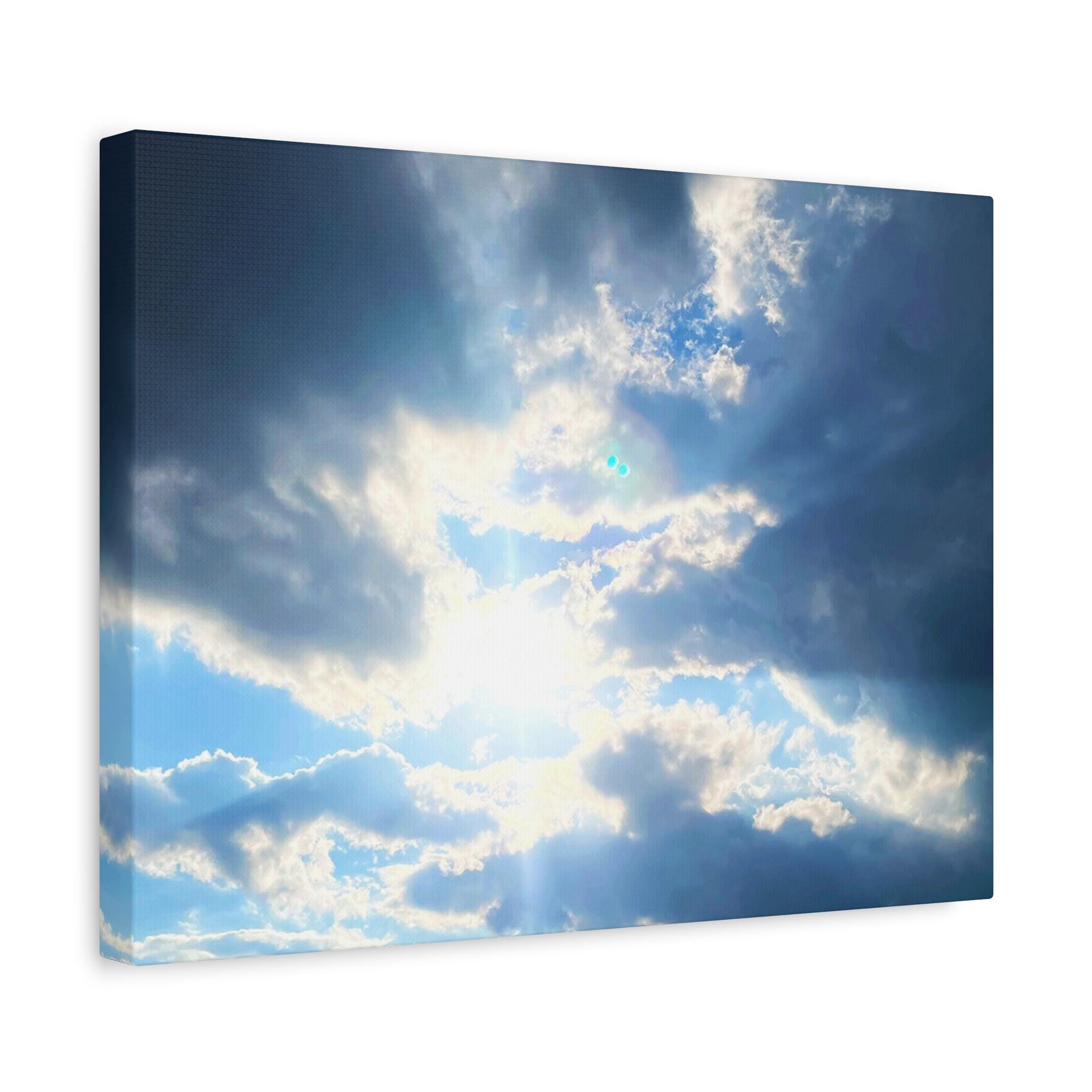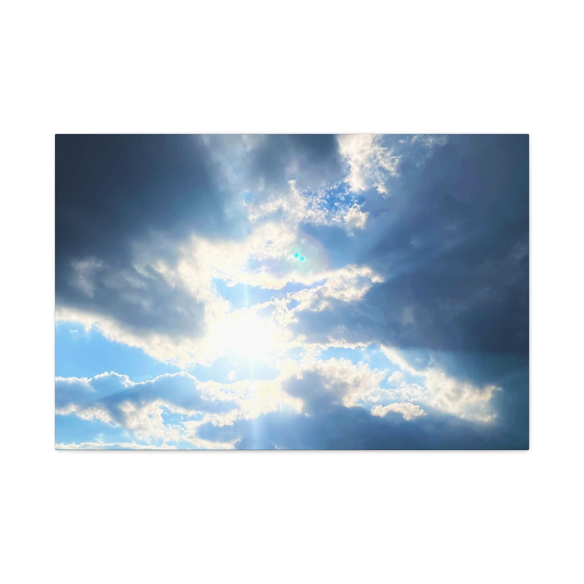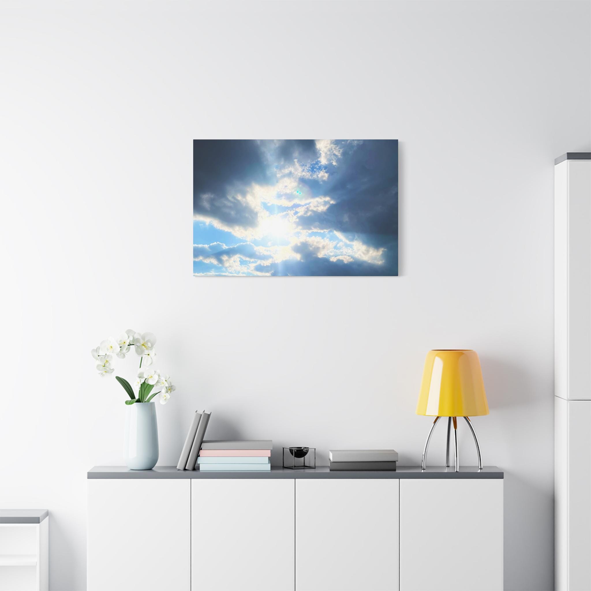 Add inspiration and light to your space with this stunning canvas print. Featuring rays of sunlight breaking through dramatic clouds, this artwork captures both power and peace in a timeless sky scene.