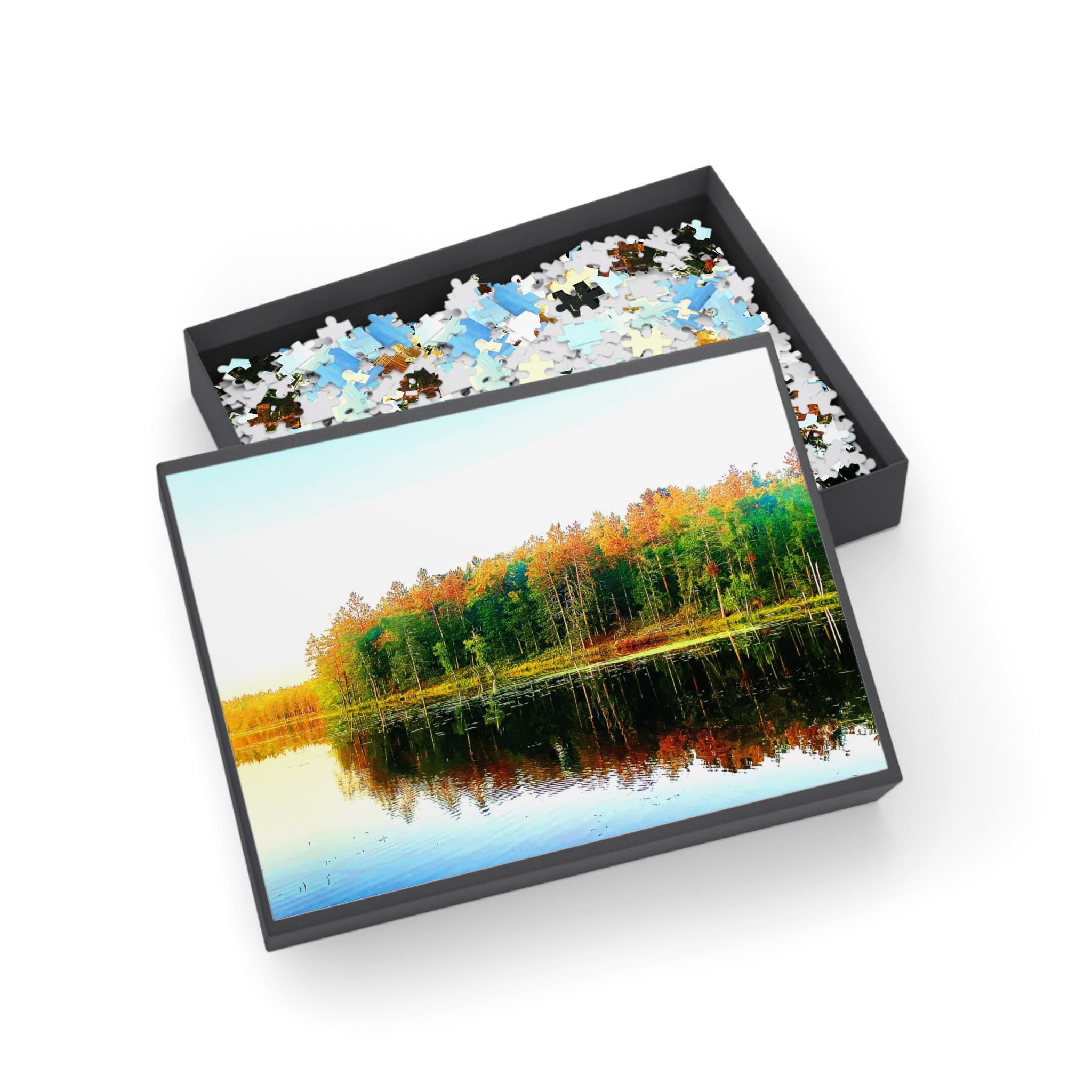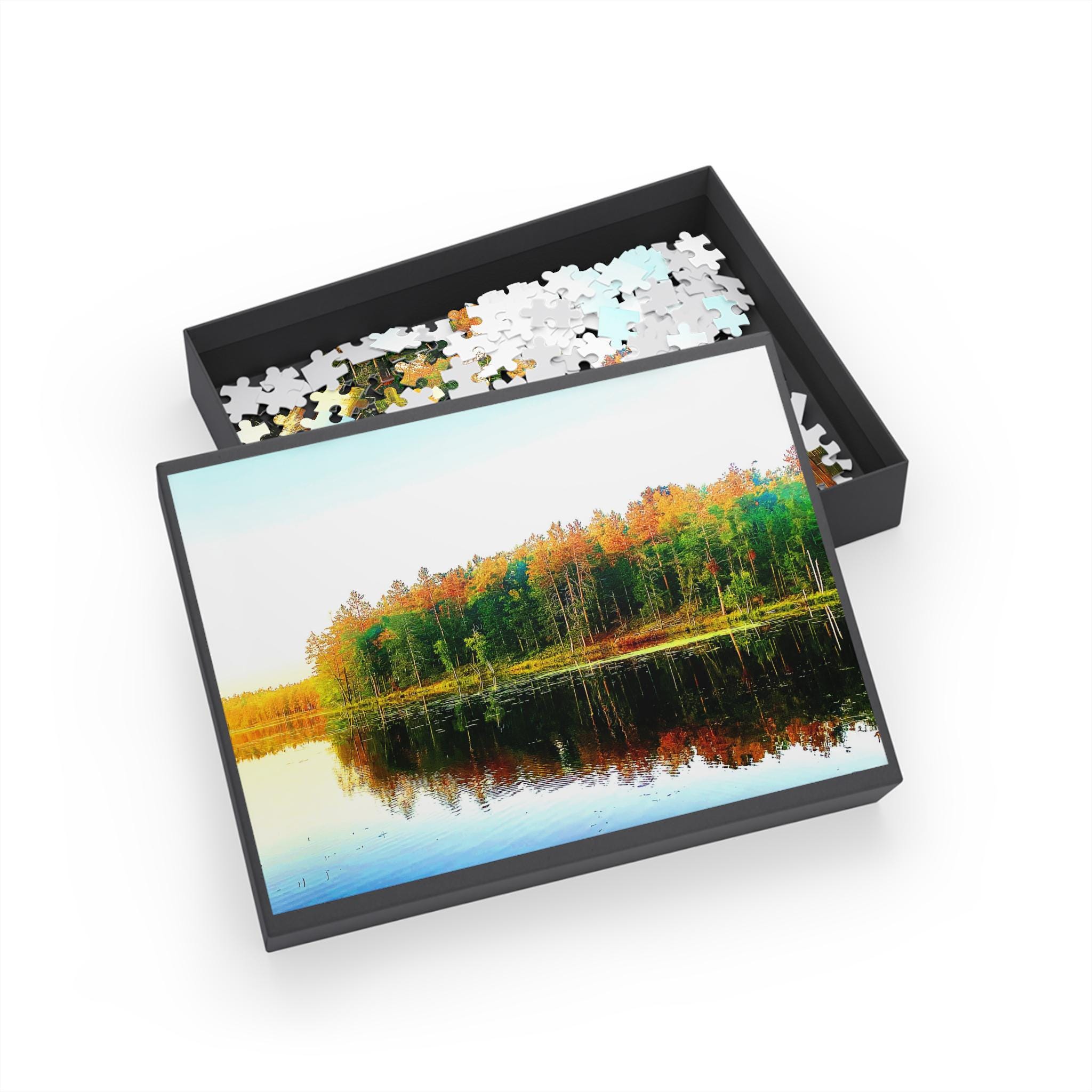 Celebrate fall with this vibrant puzzle of autumn foliage reflecting on a quiet lake. With bold colors and a tranquil setting, this puzzle makes a perfect seasonal activity or thoughtful gift.
