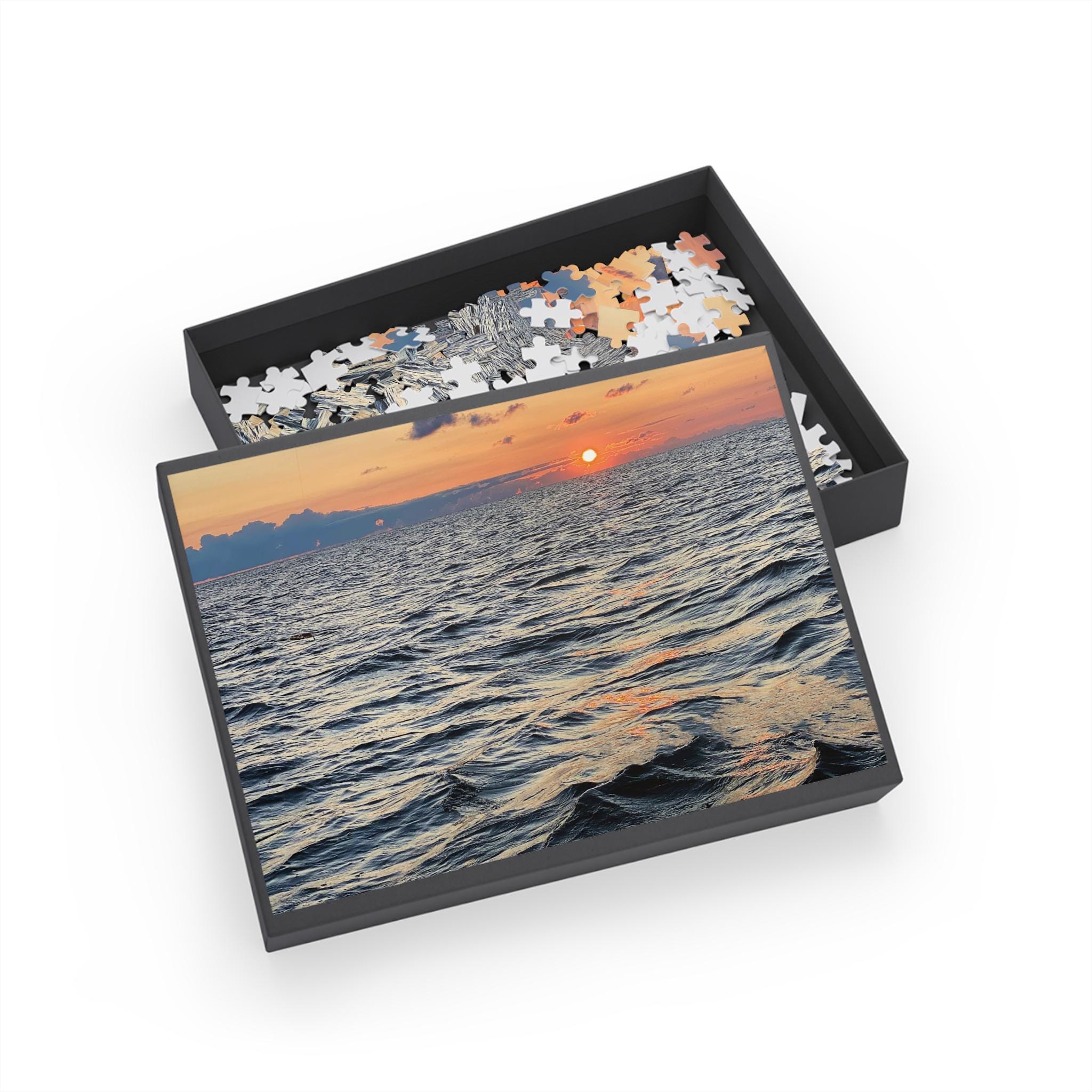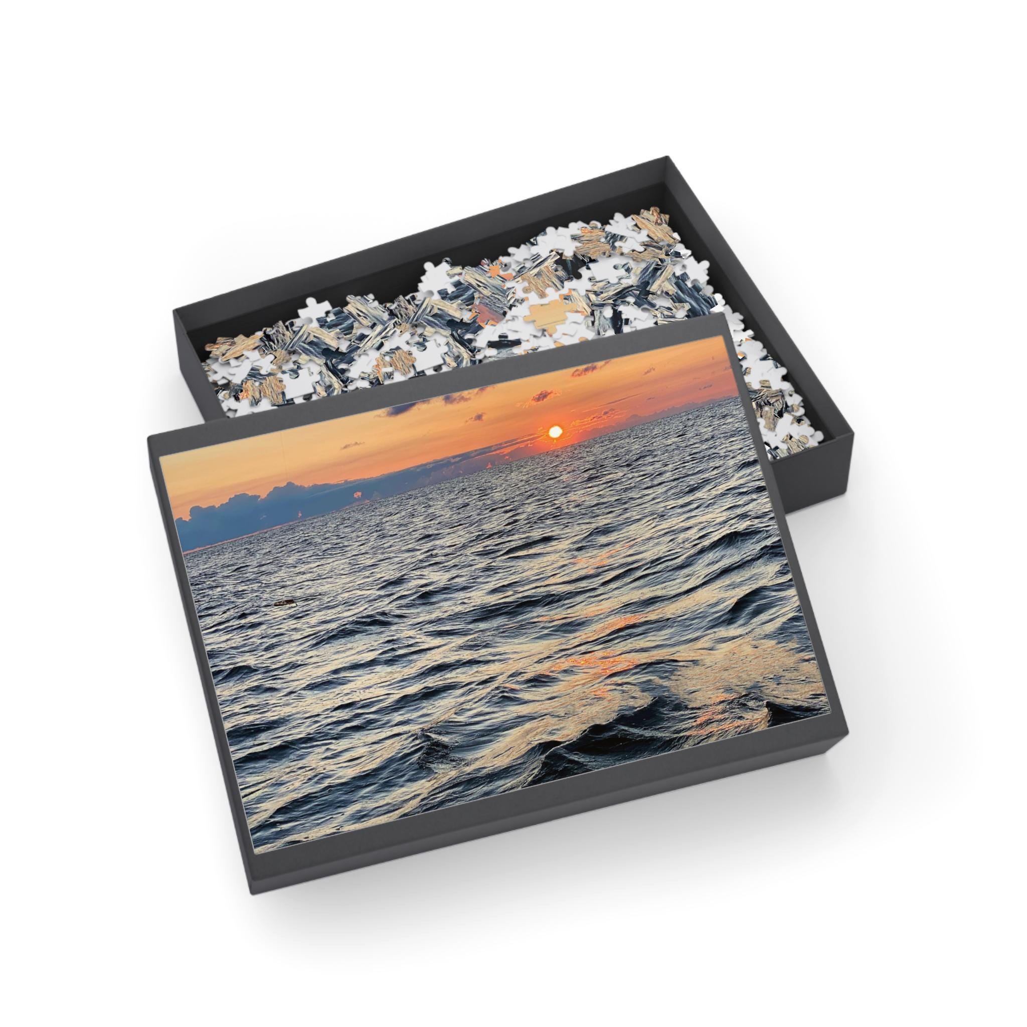 Product features - Comes in a custom paper box featuring your unique artwork on the top. - Utilizes advanced printing techniques for bright and crisp colors that enhance your designs. - Available in four sizes (96, 252, 500, or 1000 pieces) for varying skill levels and preferences. - Crafted from high-quality chipboard with a satin finish for durability and smooth fitting. - Packed in a robust black cardboard box with a printed lid decal that corresponds to the puzzle design.