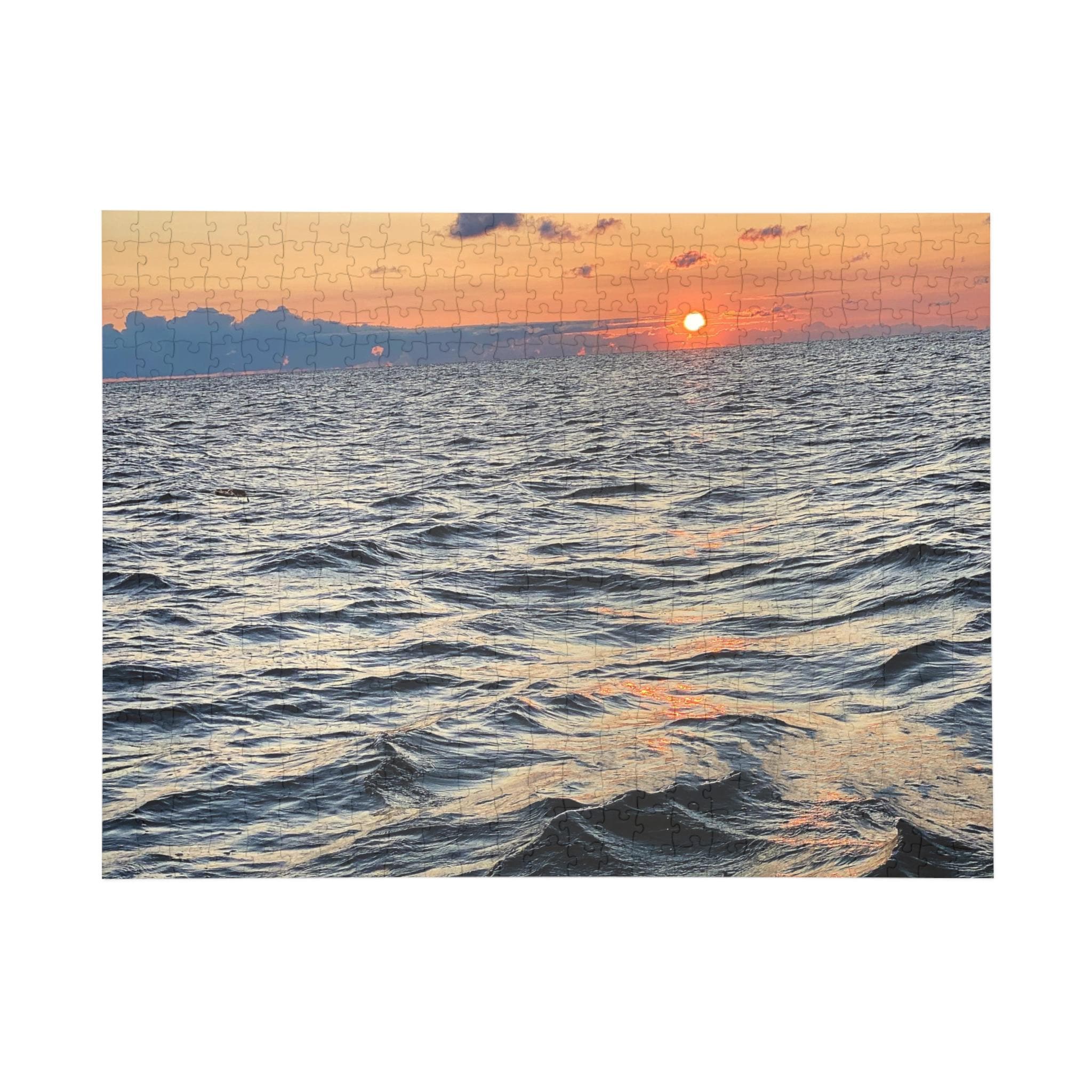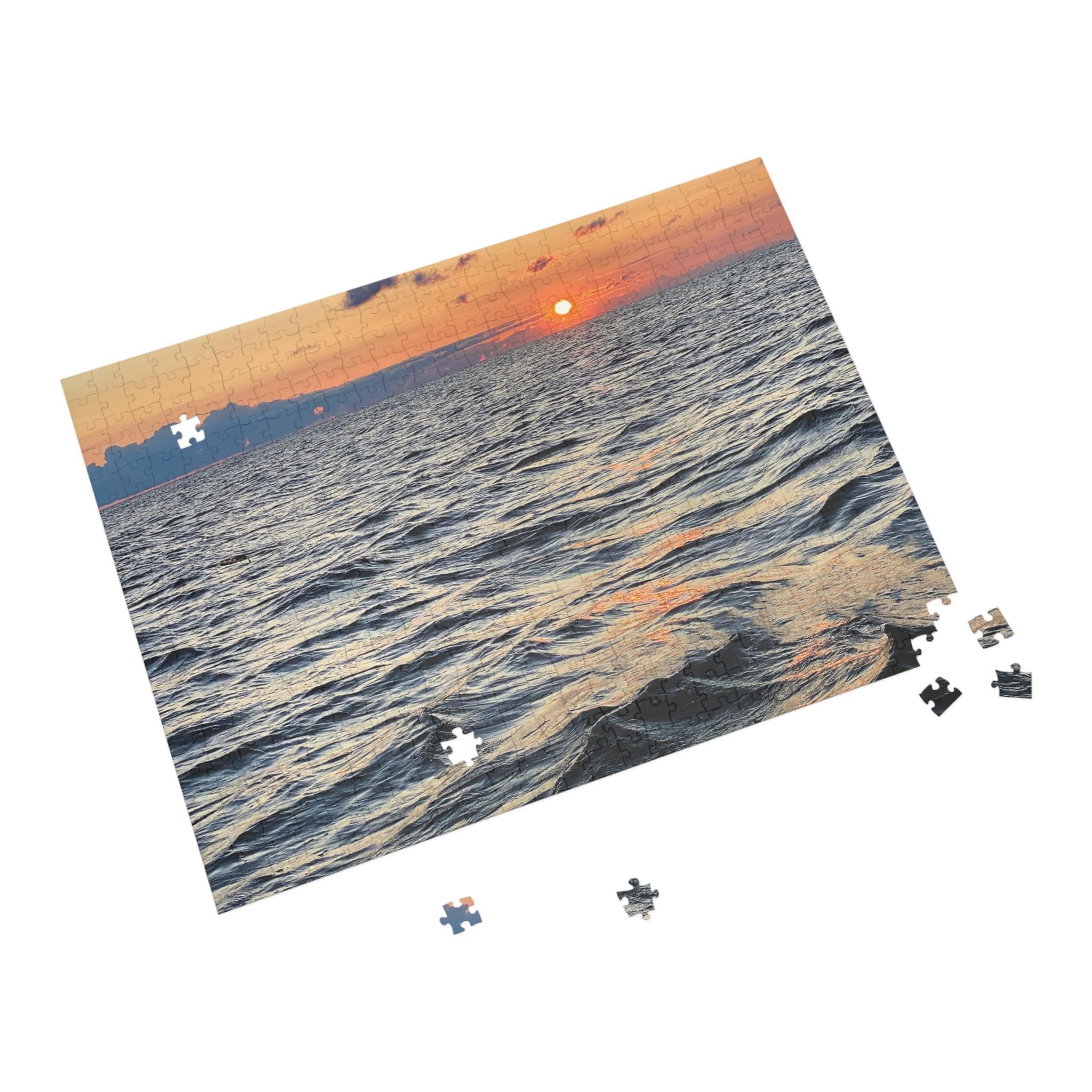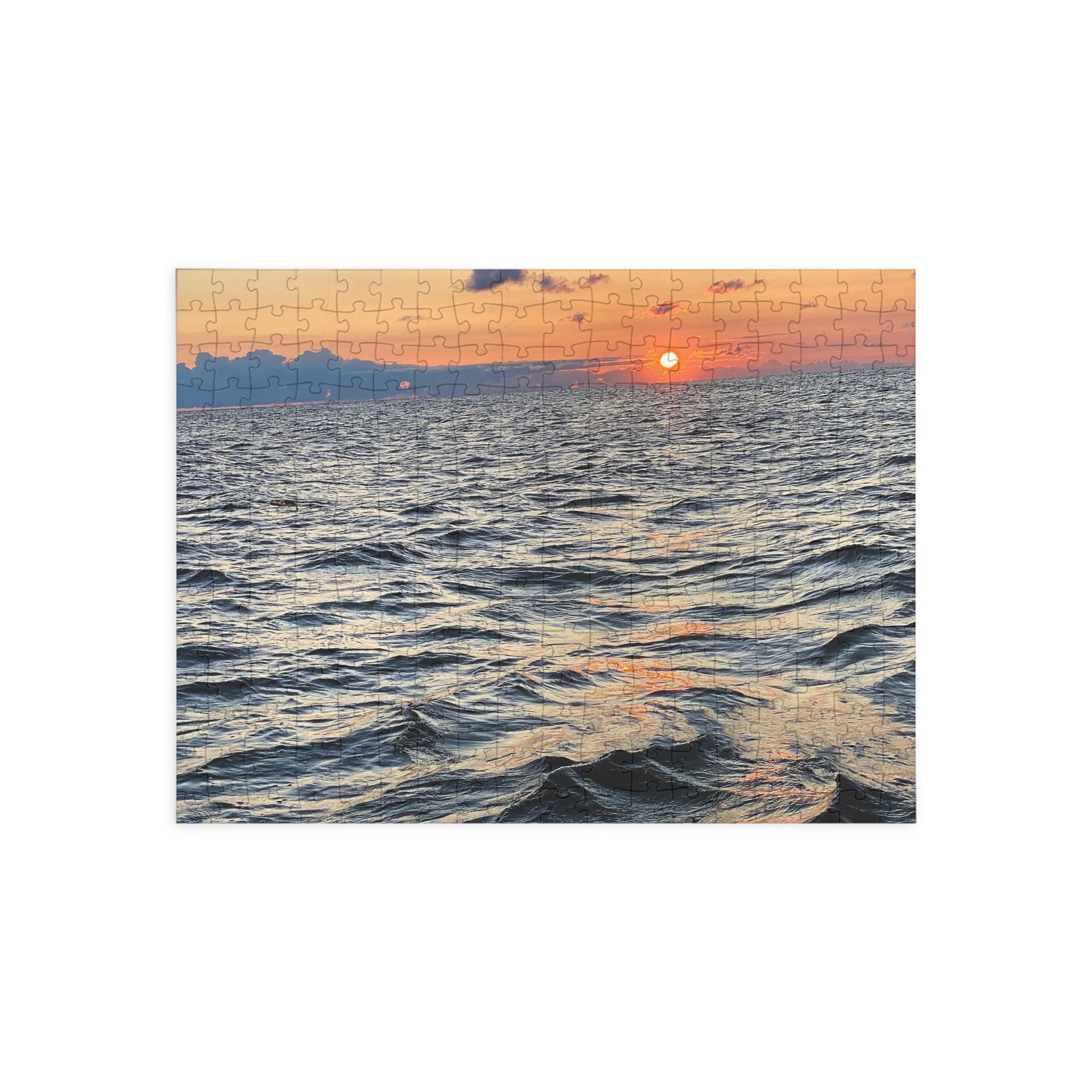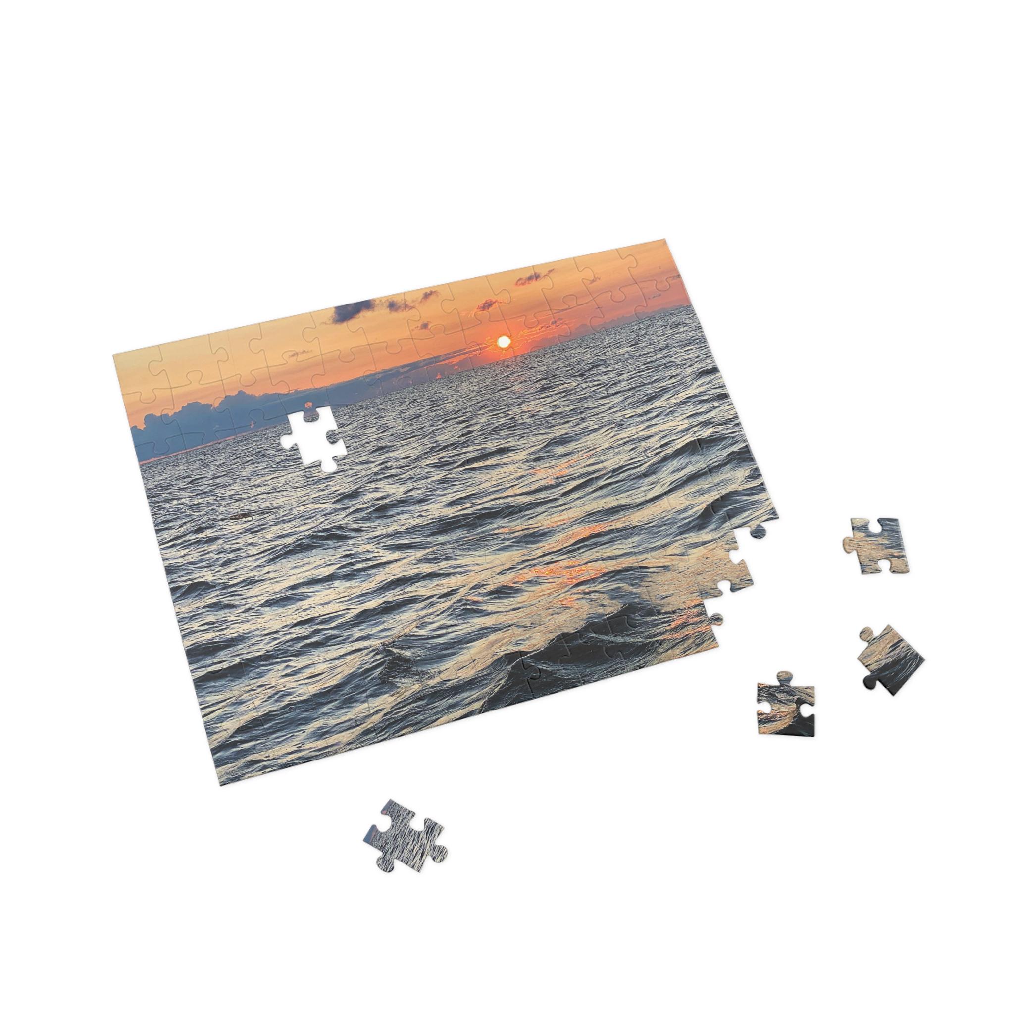 Relax with the rhythm of the waves in this serene sunset puzzle. Featuring soft evening light over rippling ocean waters, this puzzle captures the peaceful beauty of the sea at dusk.