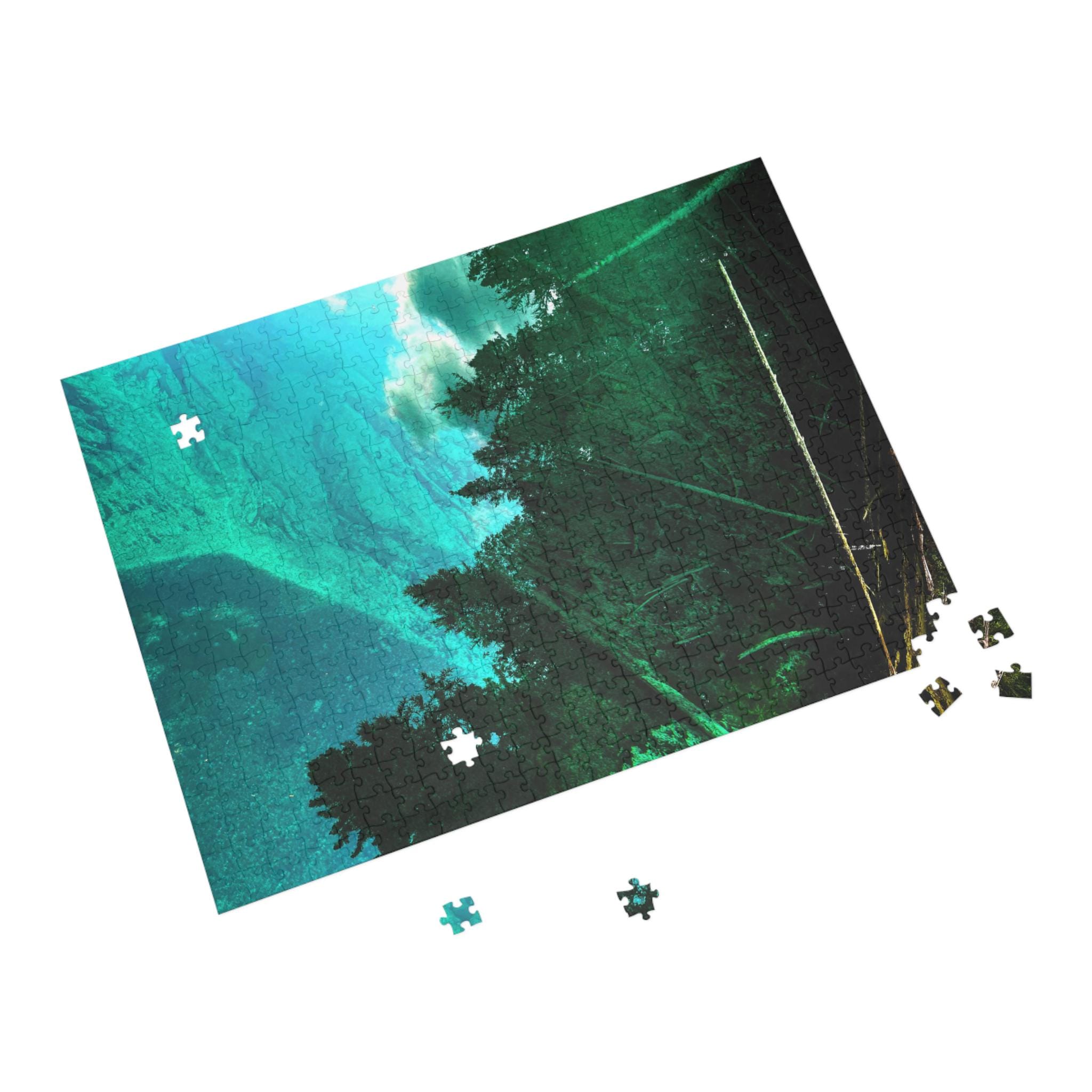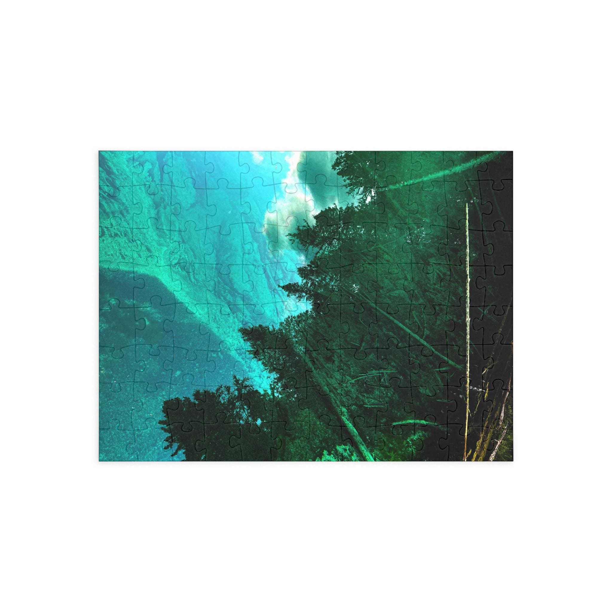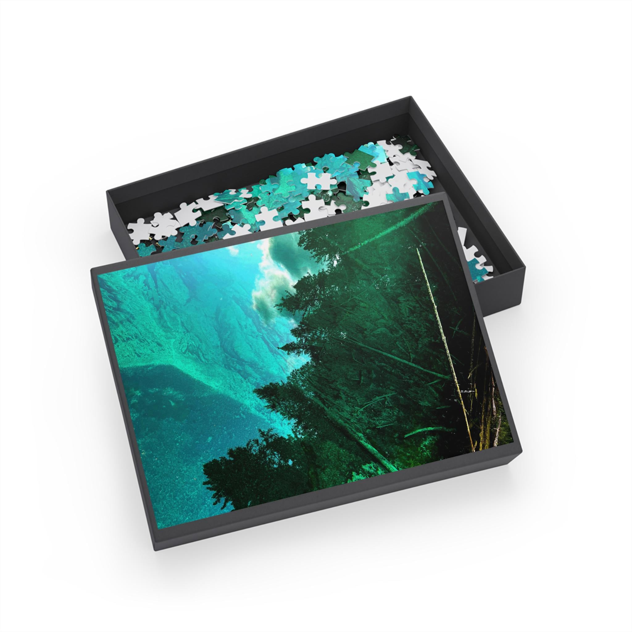 Step into the beauty of the wild with this forest reflections puzzle. Featuring tree silhouettes set against turquoise water, this puzzle offers bold contrasts and a moody design for puzzle lovers who want something unique.