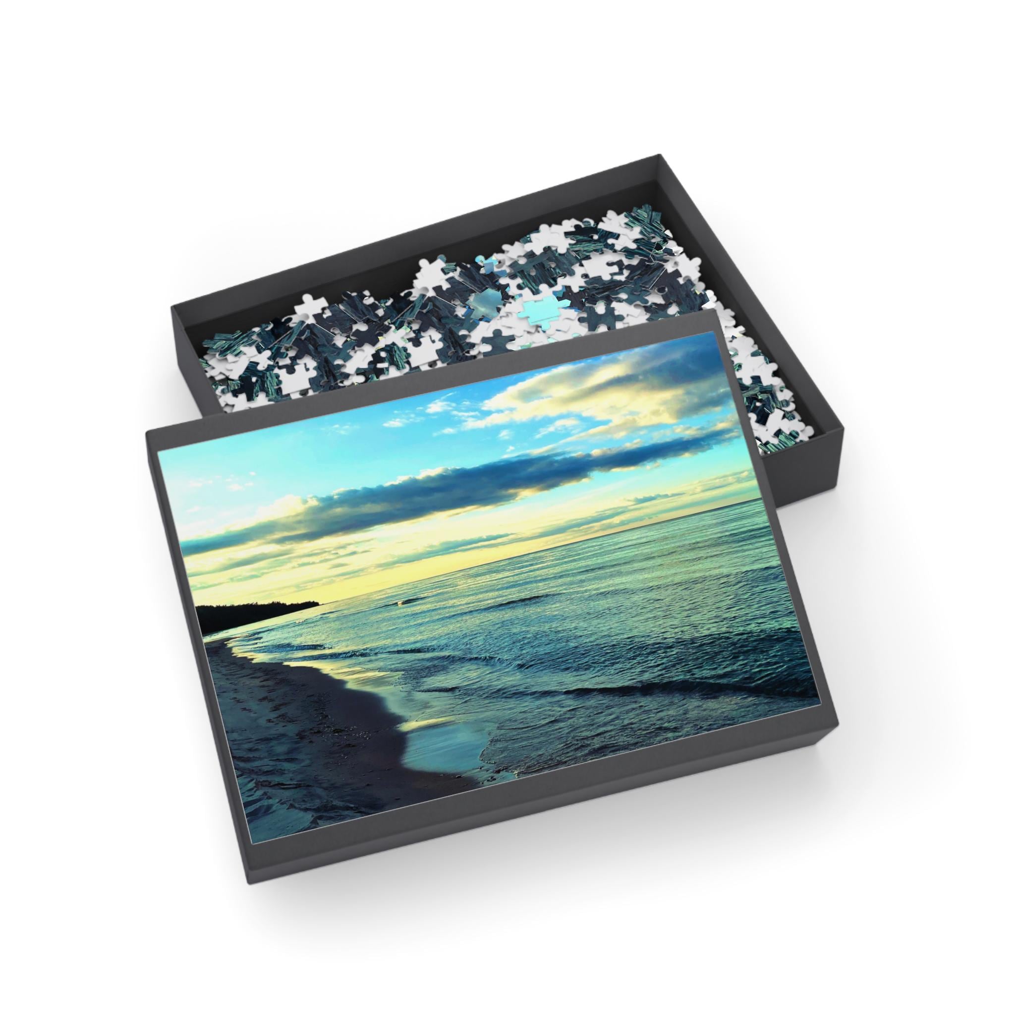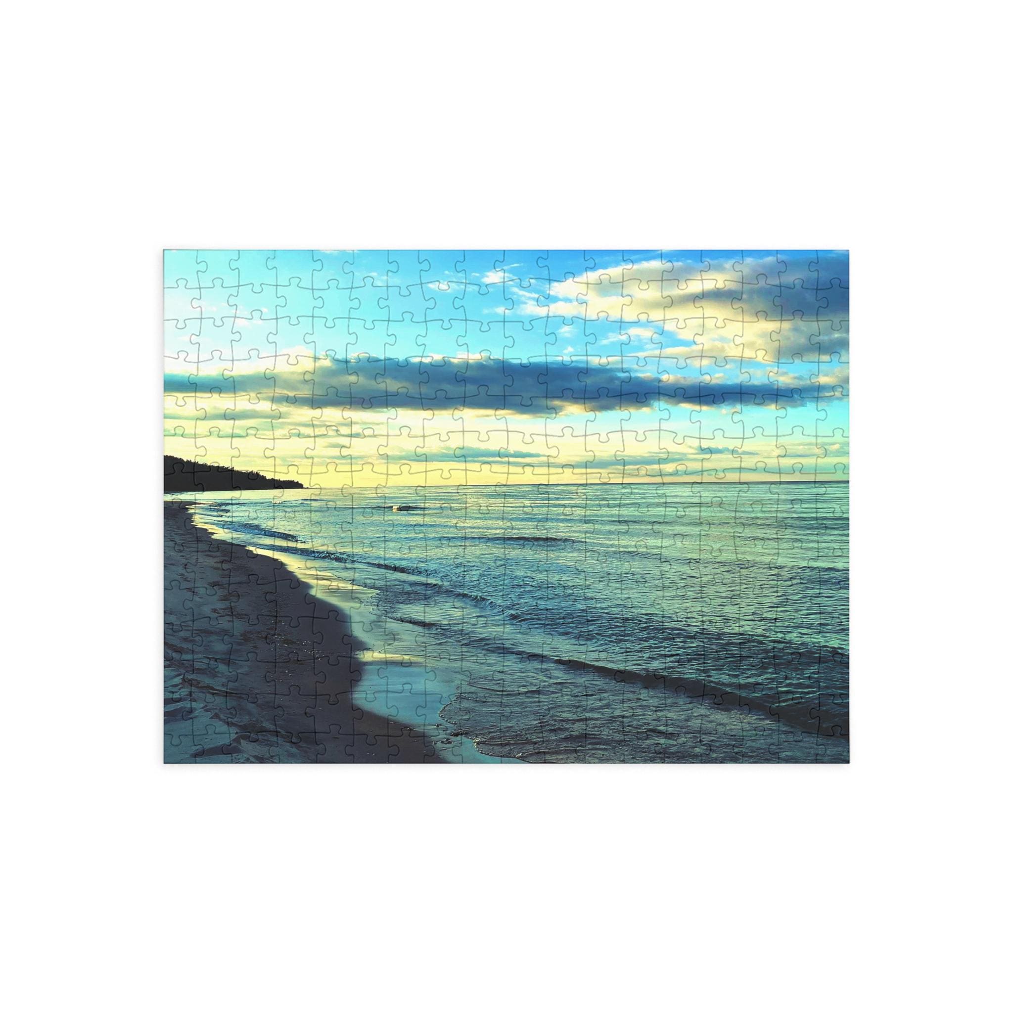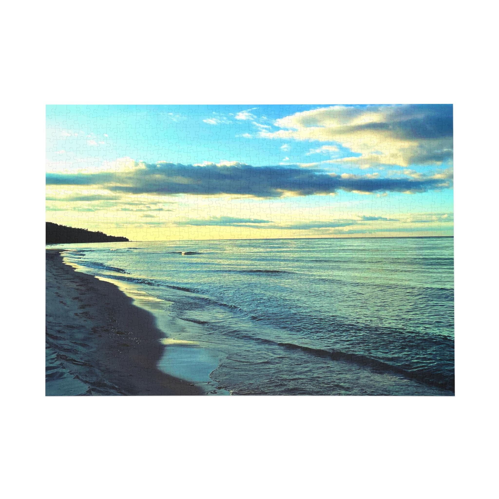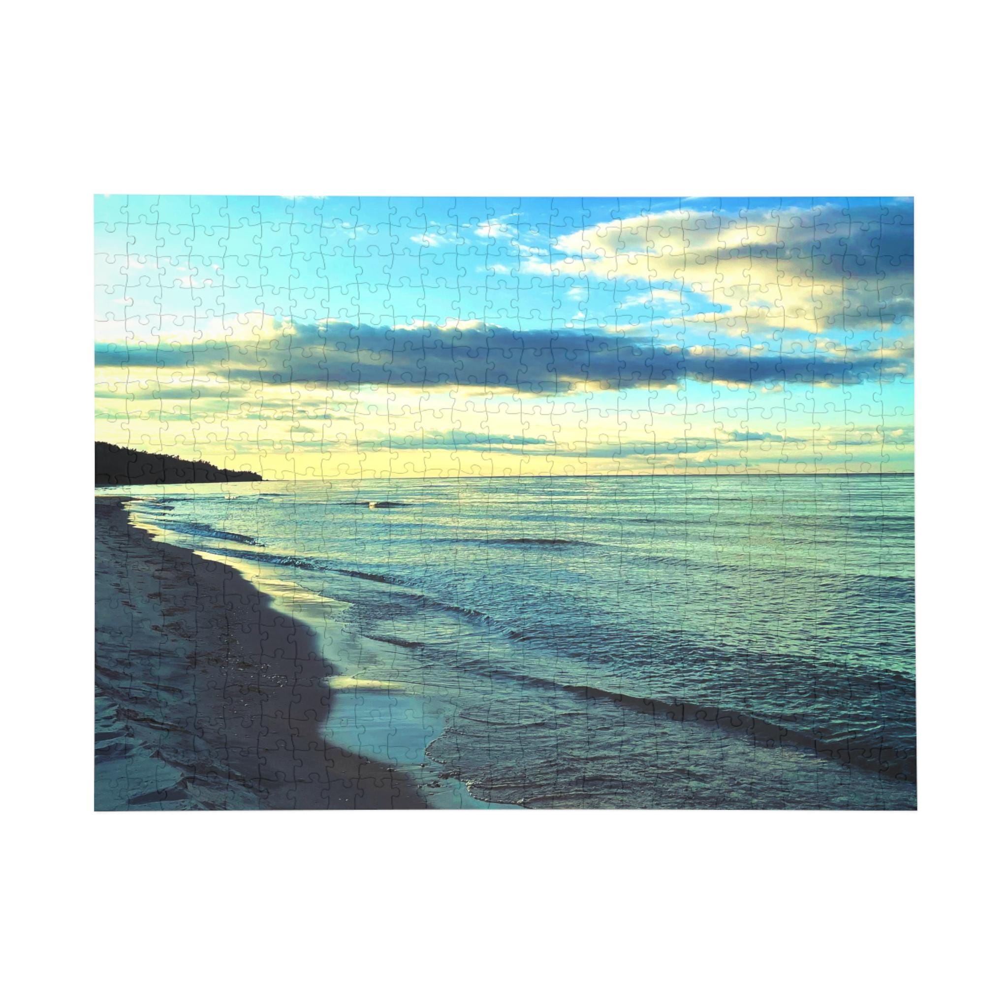 Unwind with the calming beauty of this shoreline puzzle. Featuring soft green-blue waters, a fading evening sky, and a quiet beach, this puzzle is the perfect mix of relaxation and mindful challenge.