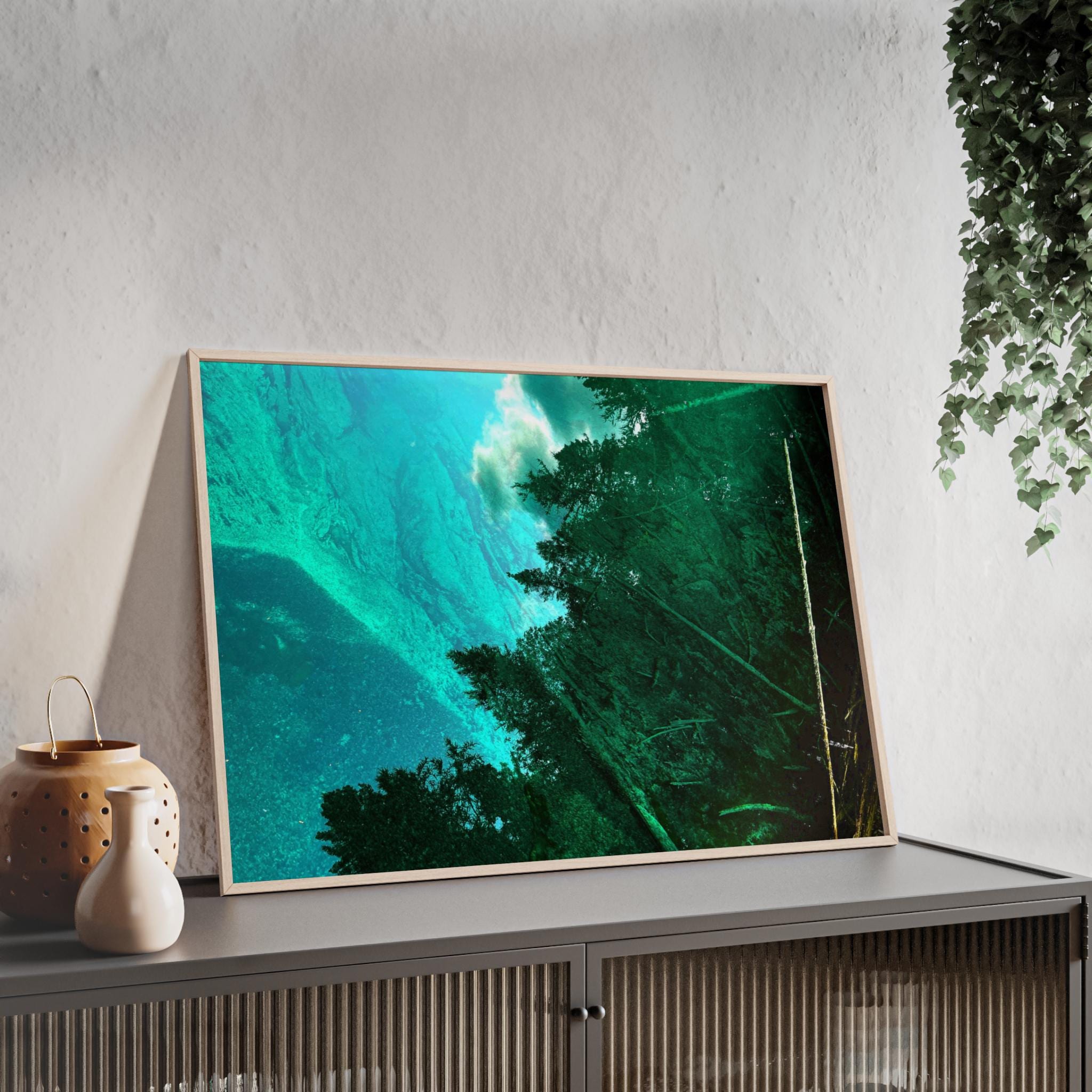 Bring the tranquil feeling of nature into your space with these beautiful posters featuring trees reflecting on turquoise blue waters with fish and nature. Perfect for nature lovers and those looking to add a serene touch to their home decor. Ideal for Earth Day, Arbor Day, or as a gift for outdoor enthusiasts.
