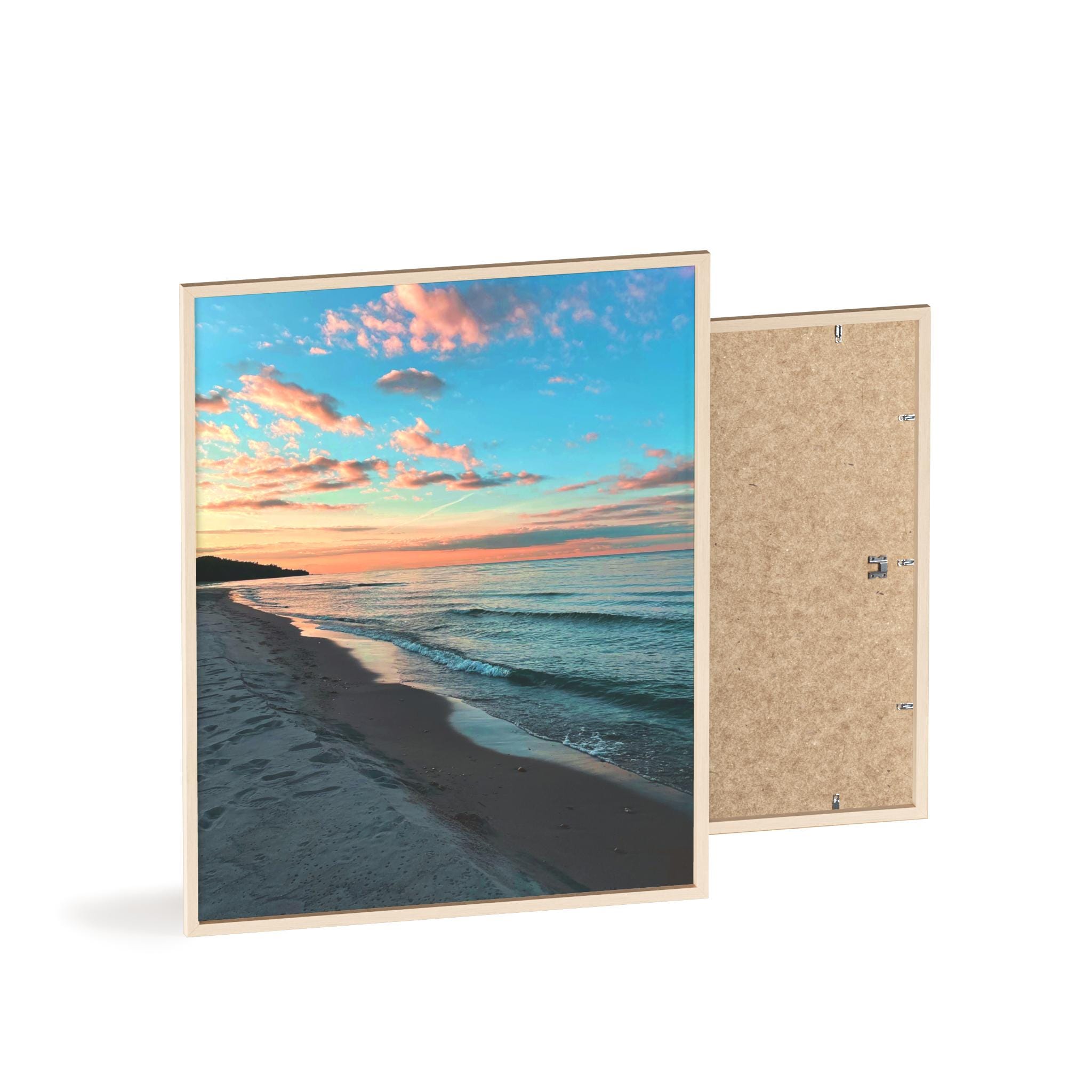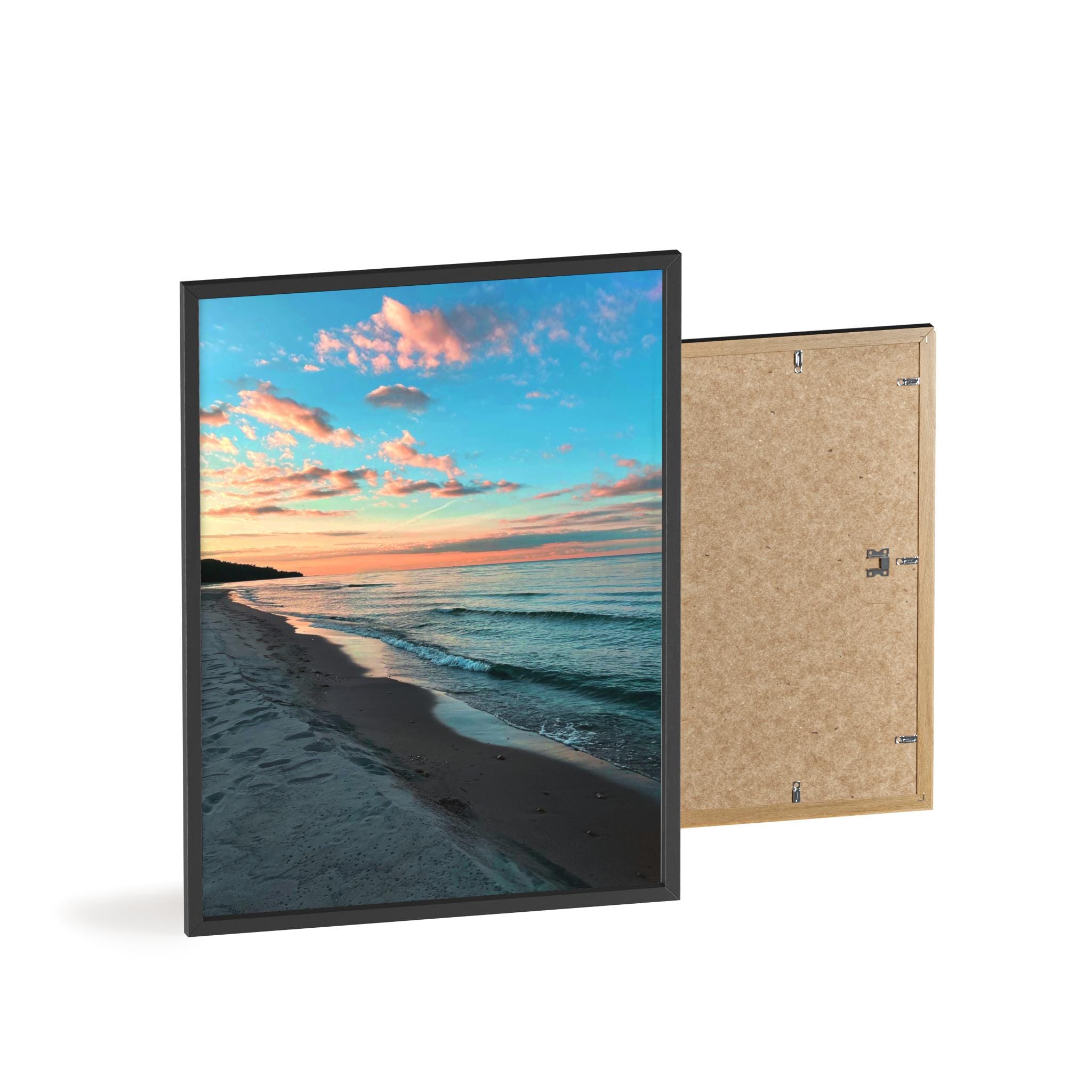 Product features - Three frame color options: Natural Wood, Black, White - Vibrant prints with bright colors - Ready to hang with hardware attachments - High-quality photopaper with Satin or Matte finish - Available in five sizes