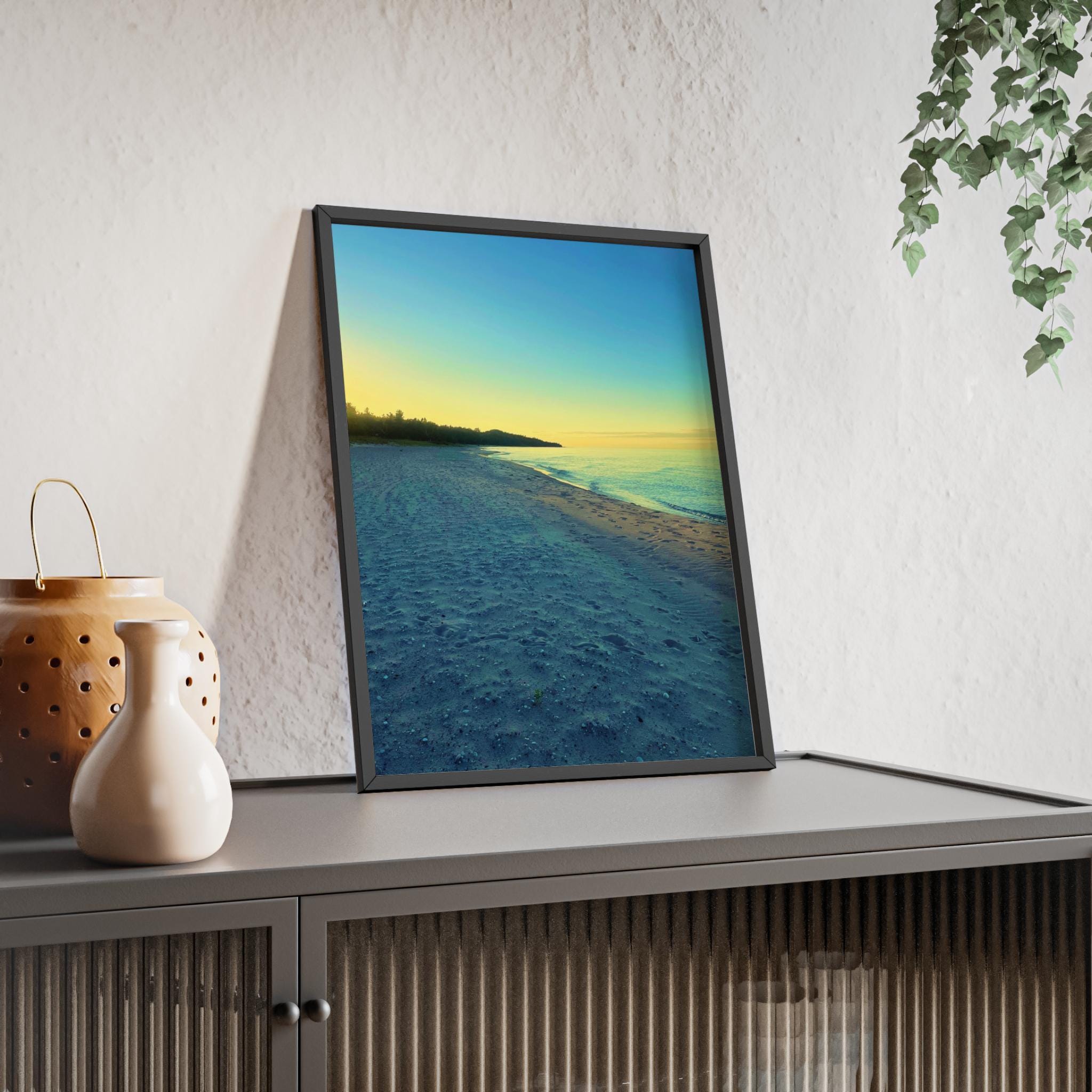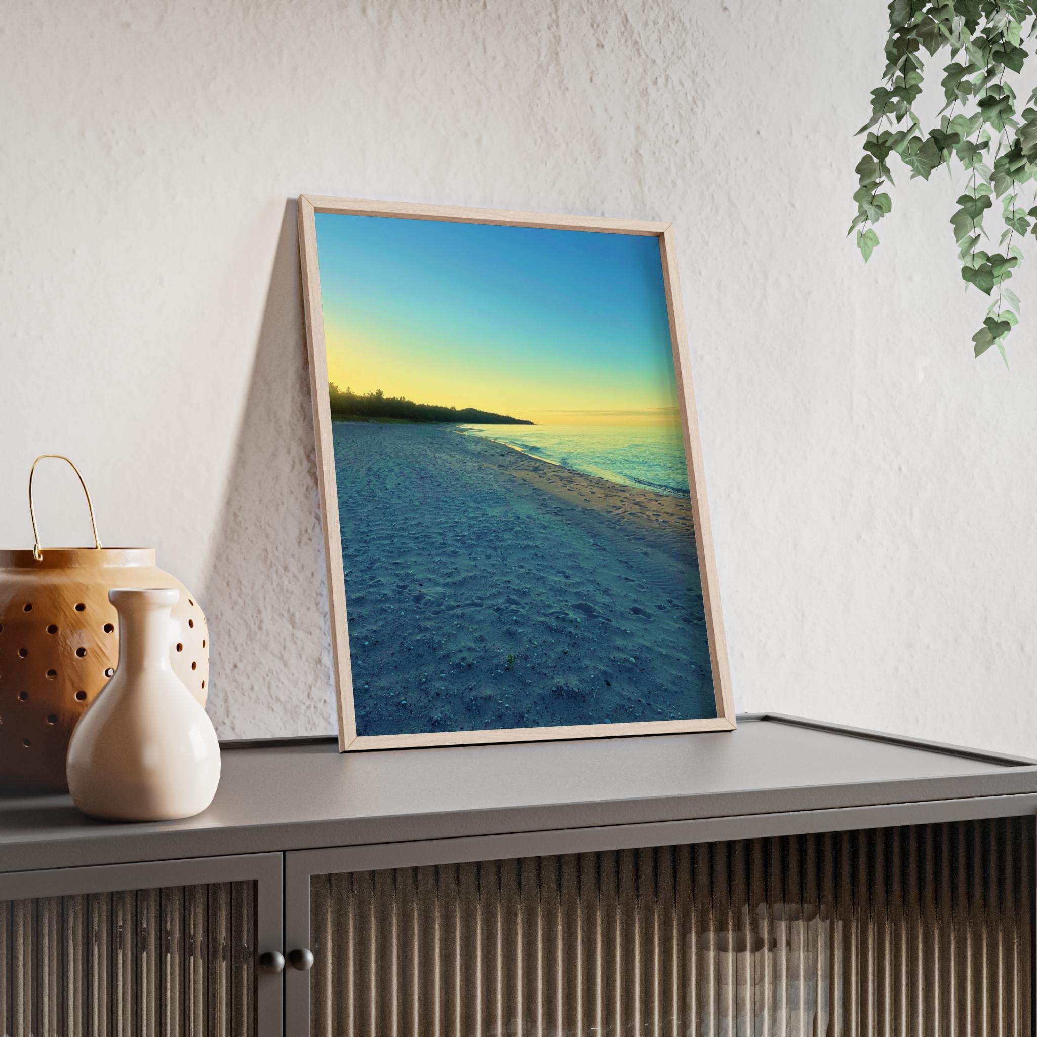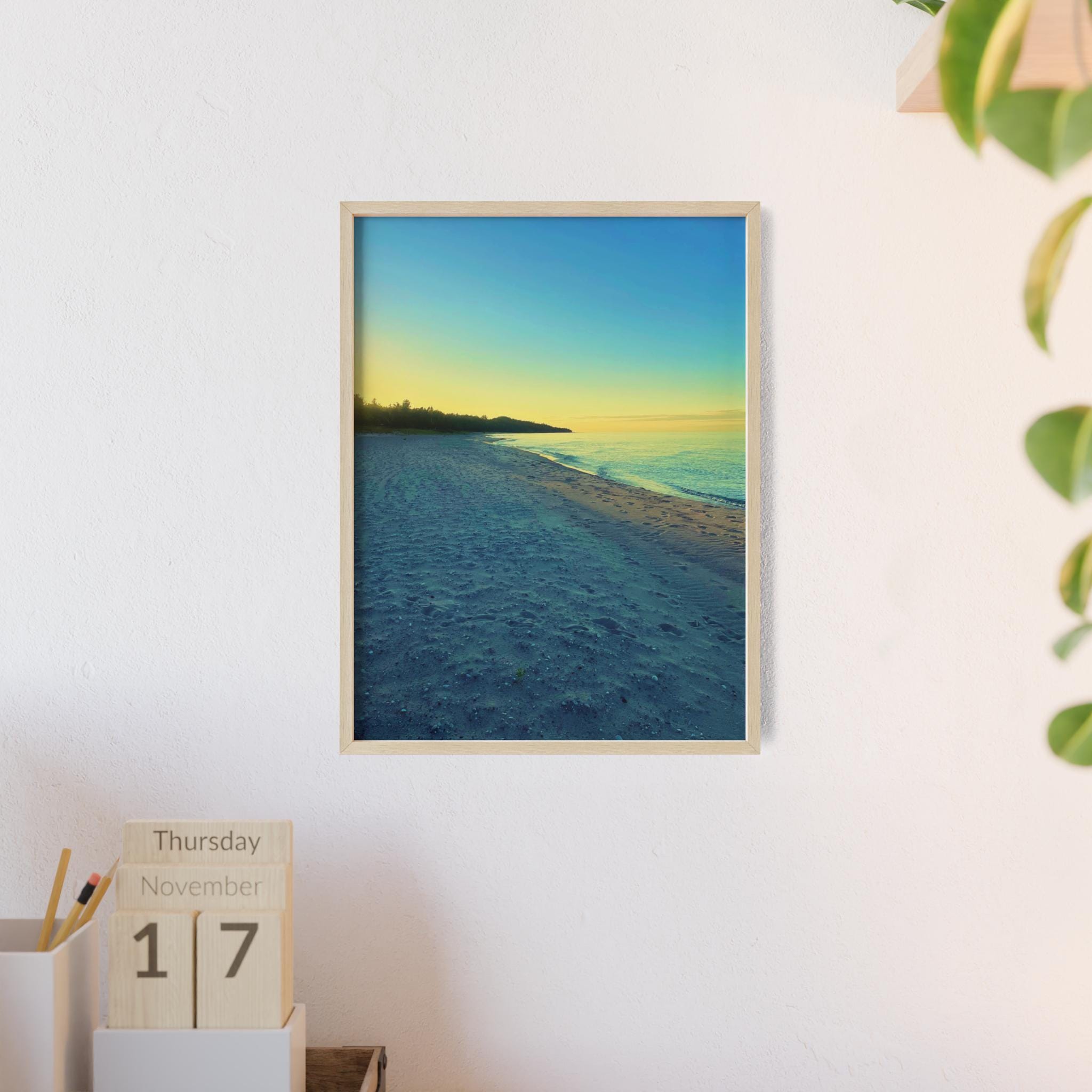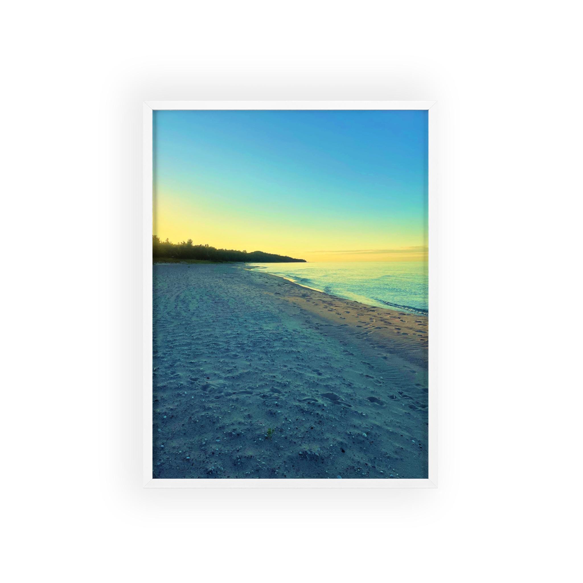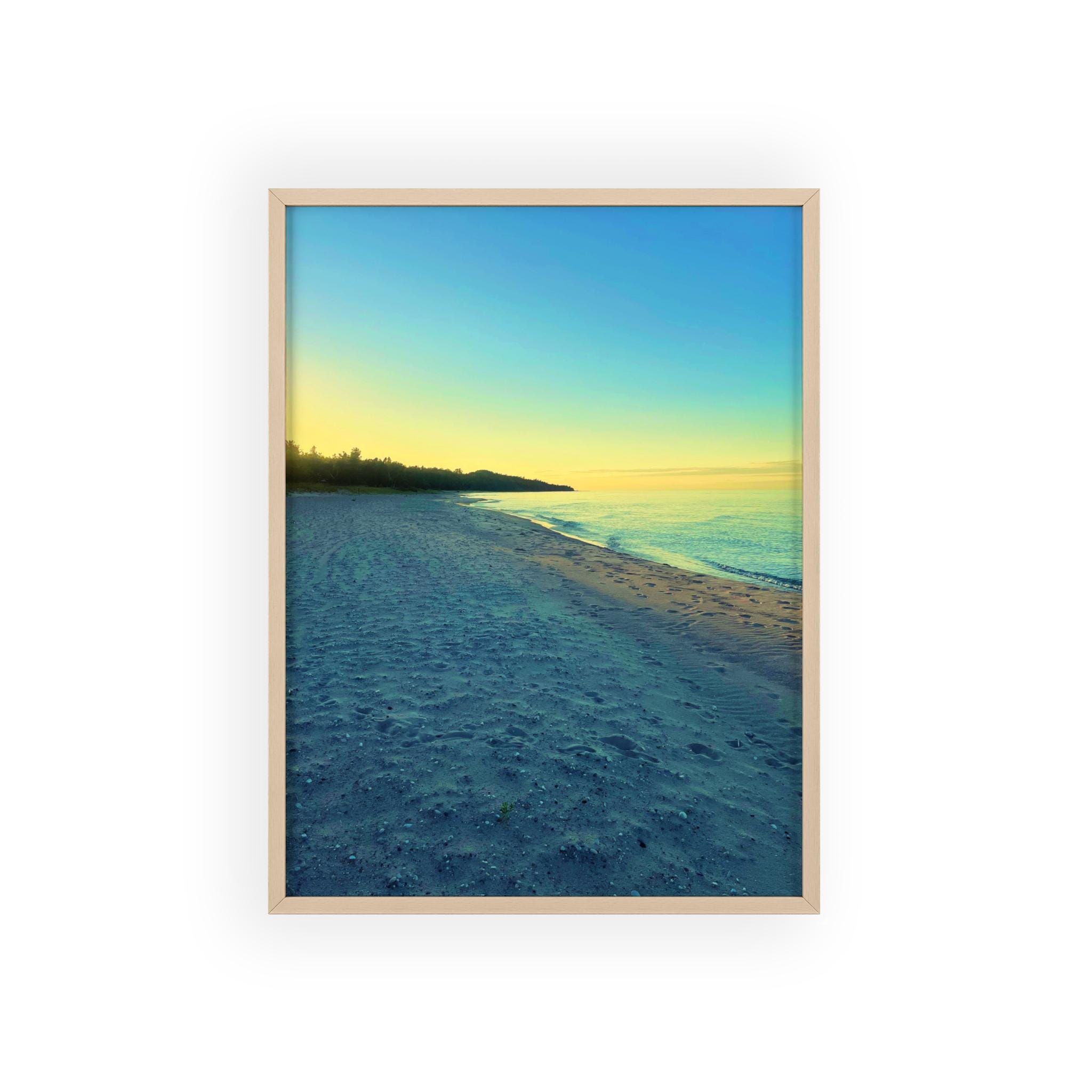 Create a serene atmosphere in your living space with vibrant sunset posters featuring relaxing blue and yellow hues on the beach. Perfect for those who love coastal or tropical vibes, this poster is ideal for beach lovers, nature enthusiasts, and those looking to add a touch of tranquility to their decor. Great for coastal-themed home decor, beach house decorations, and summer vibes.