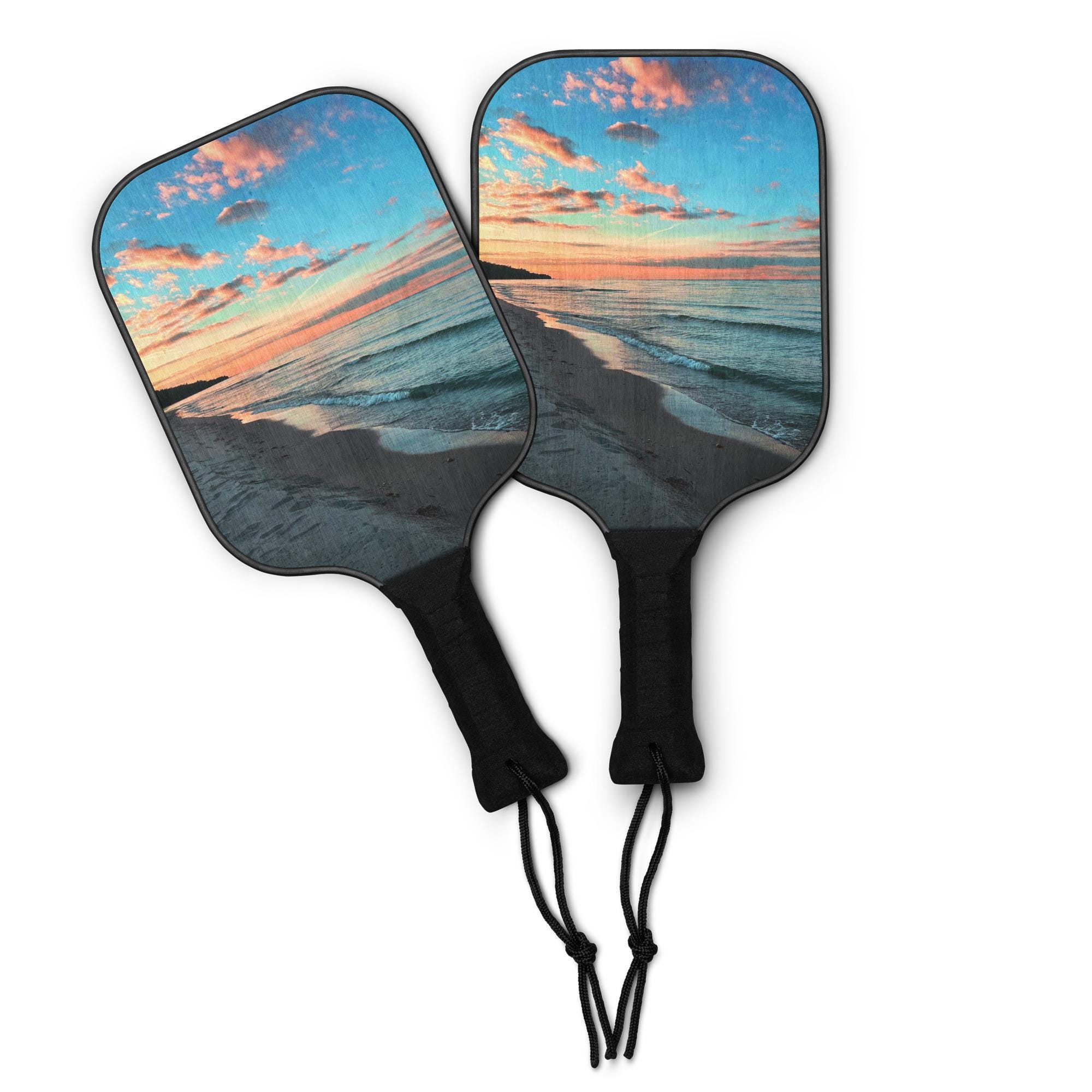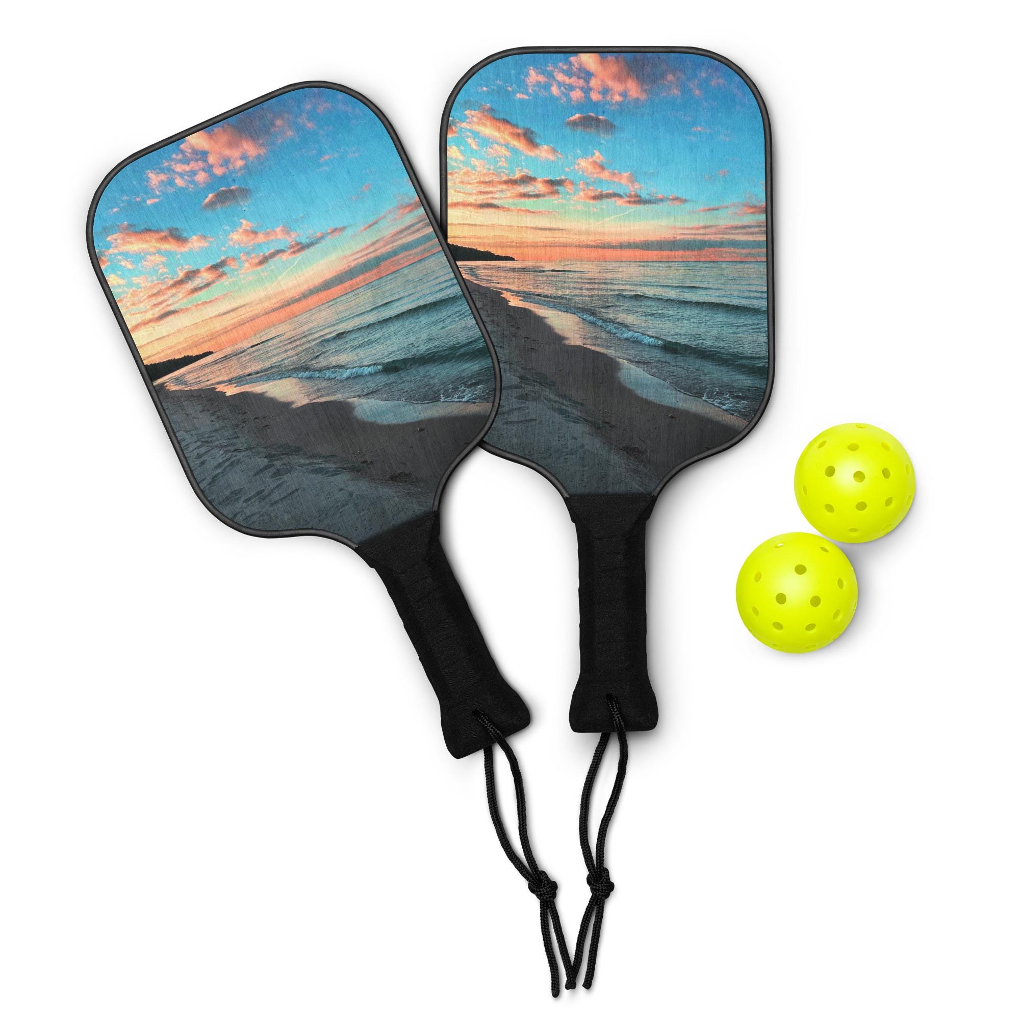 Sunset Beach Pickleball Paddle Set: Wooden Paddles, Carry Bag