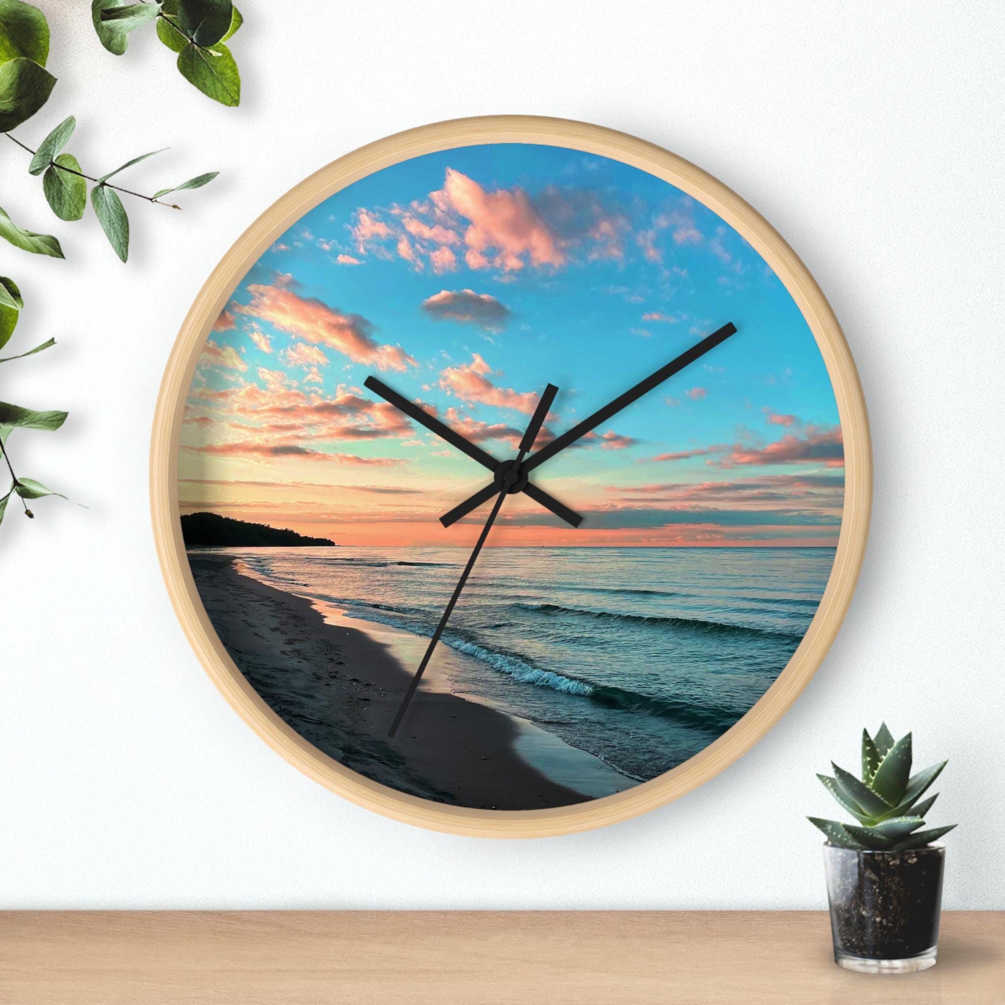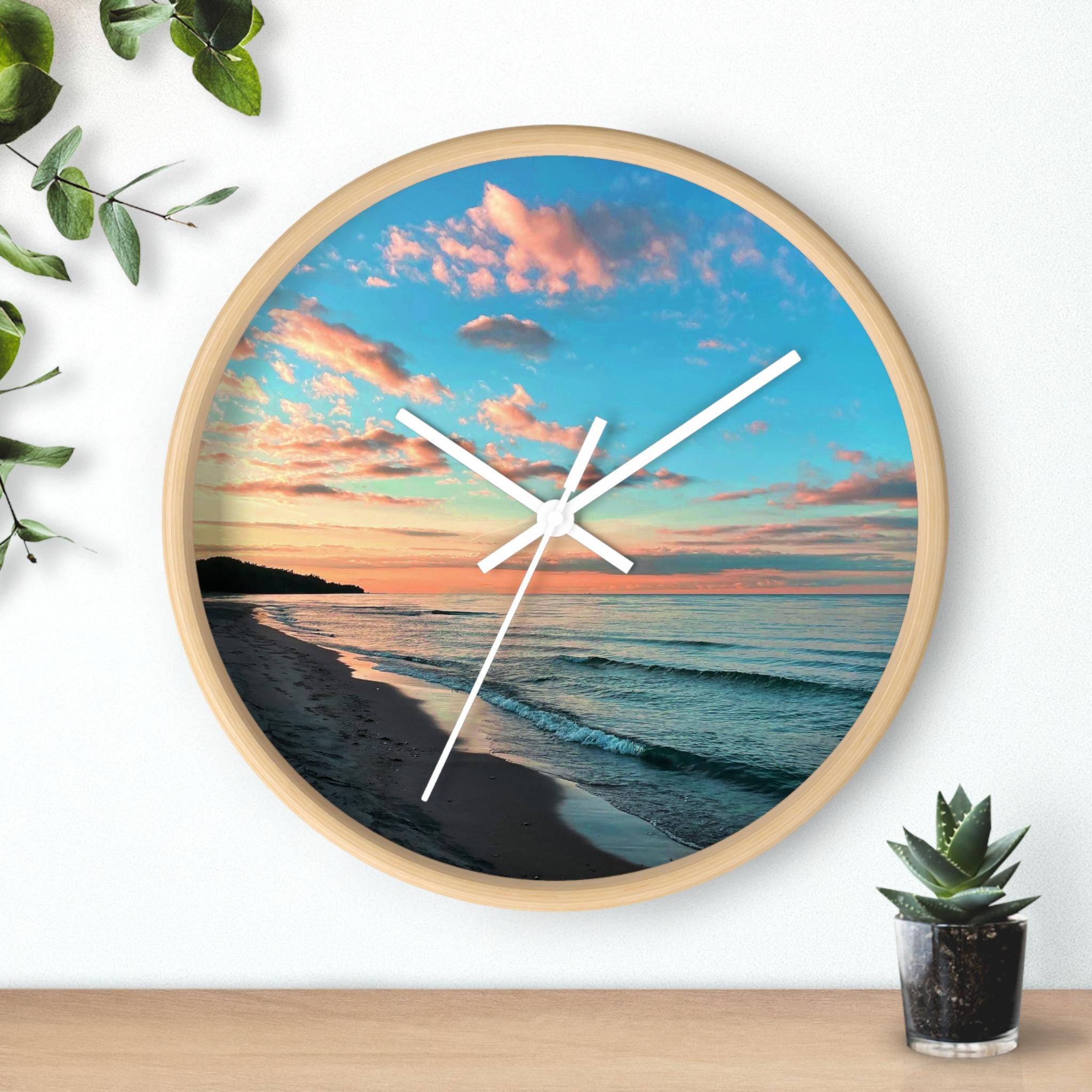 Elevate your space with this stunning wall clock that seamlessly merges functionality with artistic flair. Its vibrant design, featuring a picturesque beach sunset, creates a calming ambiance perfect for any room. Ideal for those who appreciate unique home décor, this clock not only tells time but also serves as a striking focal point in your living space, bedroom, or office. Perfect for individuals with a love for coastal aesthetics, this piece also makes a thoughtful gift for housewarmings, birthdays, or holidays like Christmas and New Year’s. Embrace the serene vibes this clock brings into your home, enhancing your daily routines with beauty and elegance.