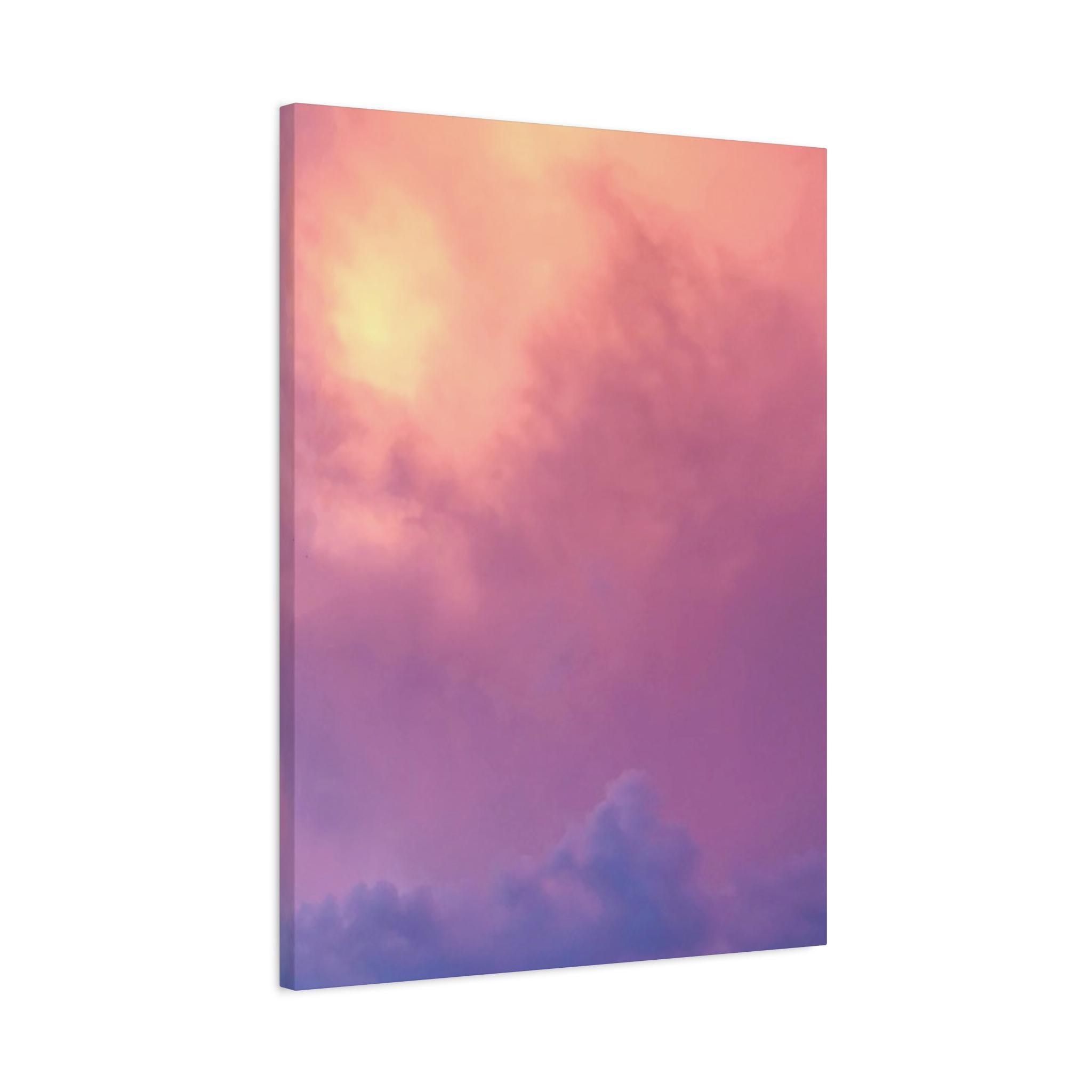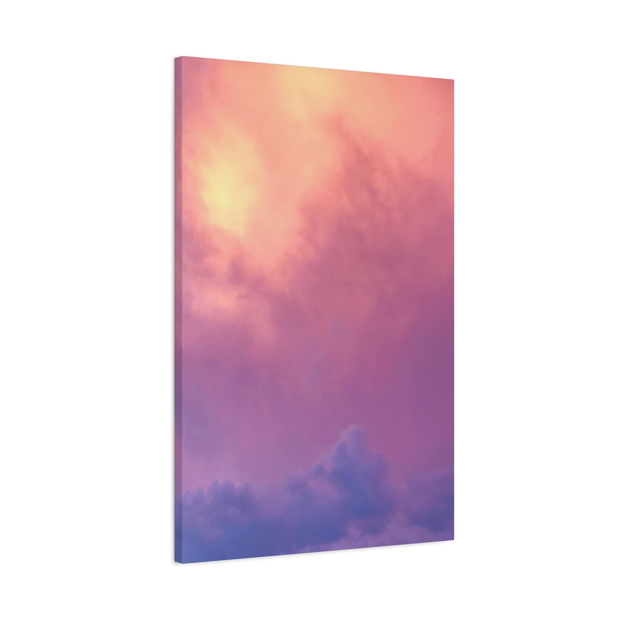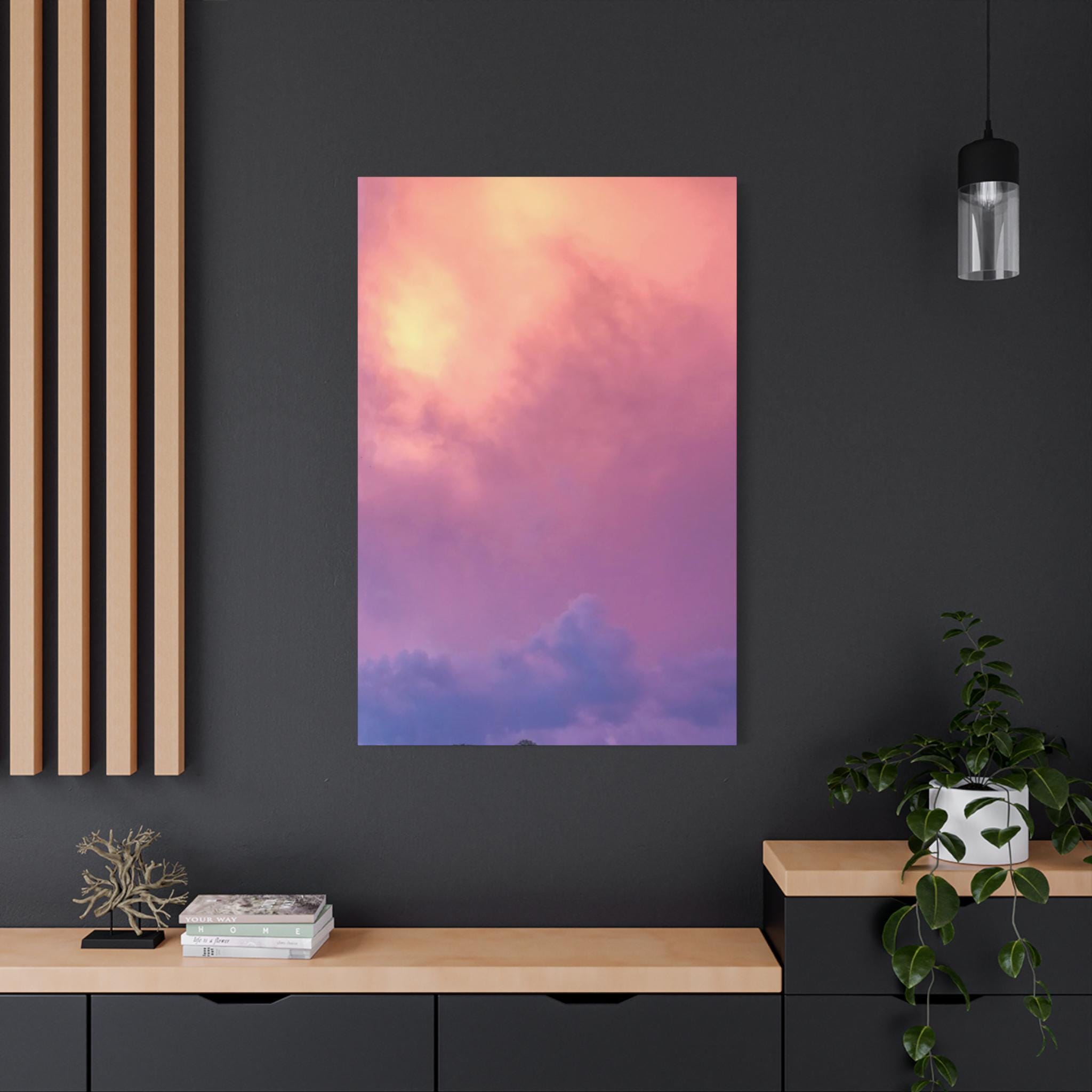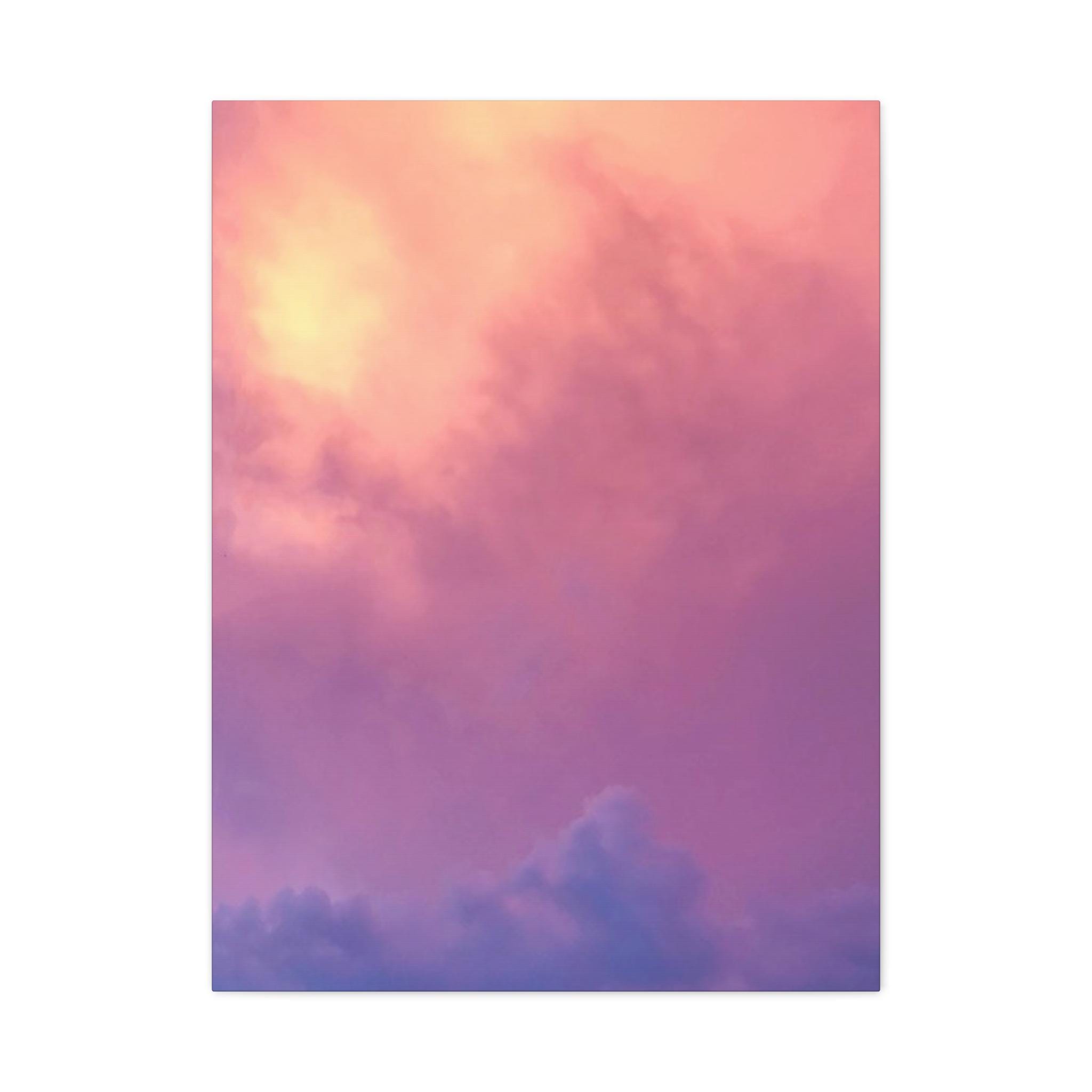 Elevate your space with the soothing beauty of this pink and purple cloud canvas wall art. With warm golden light glowing through soft lavender and rose-colored skies, this dreamy photograph feels almost like a painted abstract. Perfect for adding a calming yet colorful touch to your home, this piece brings both serenity and inspiration.