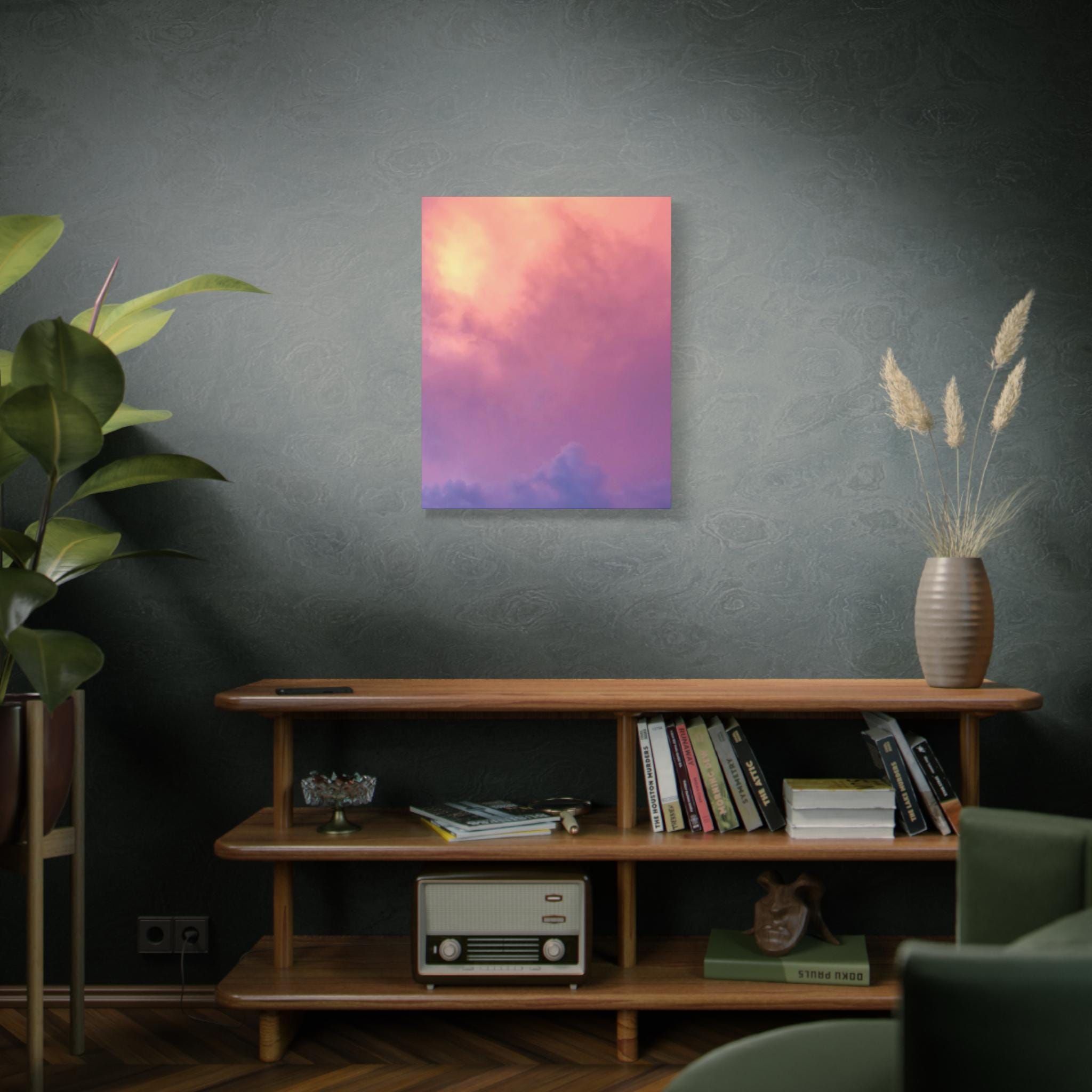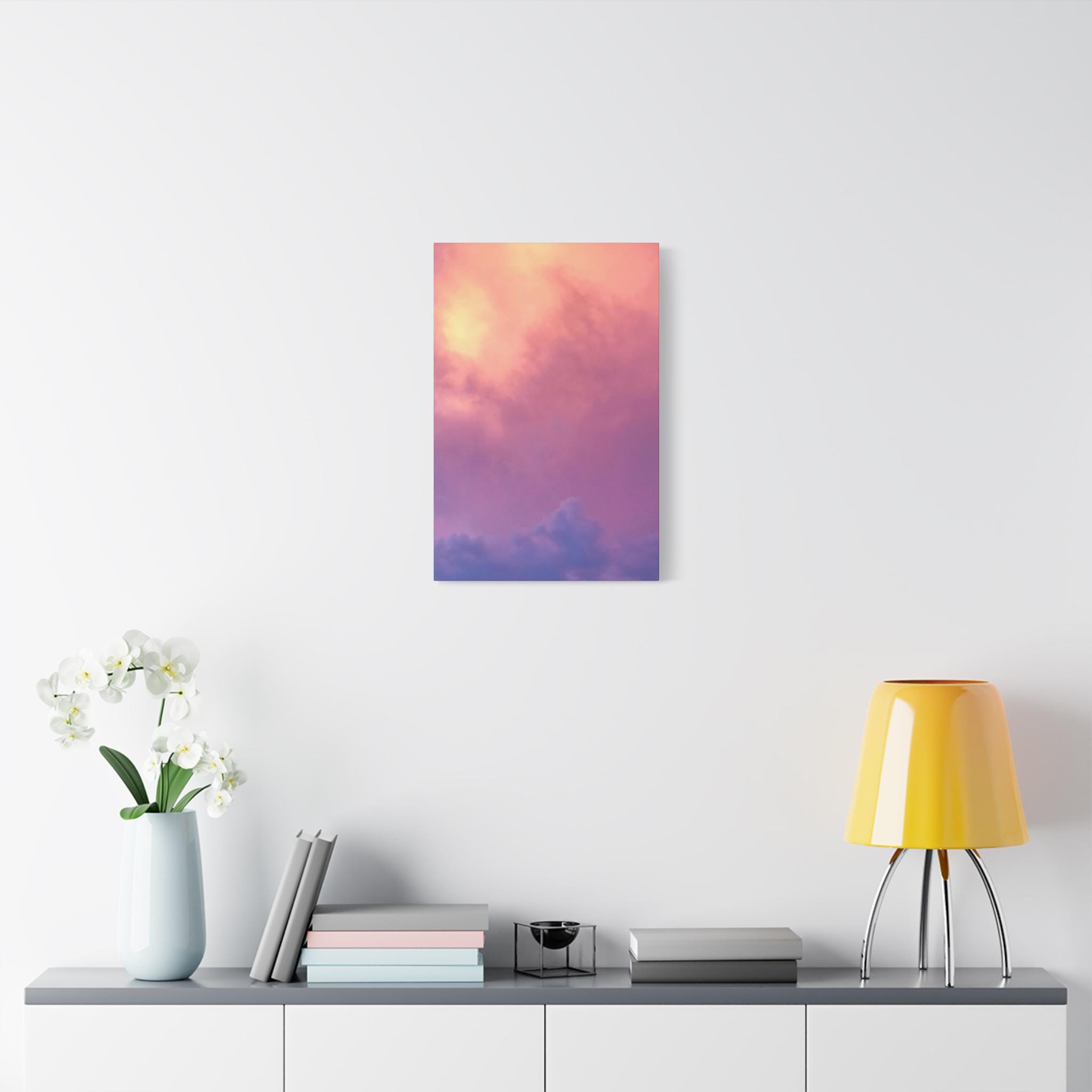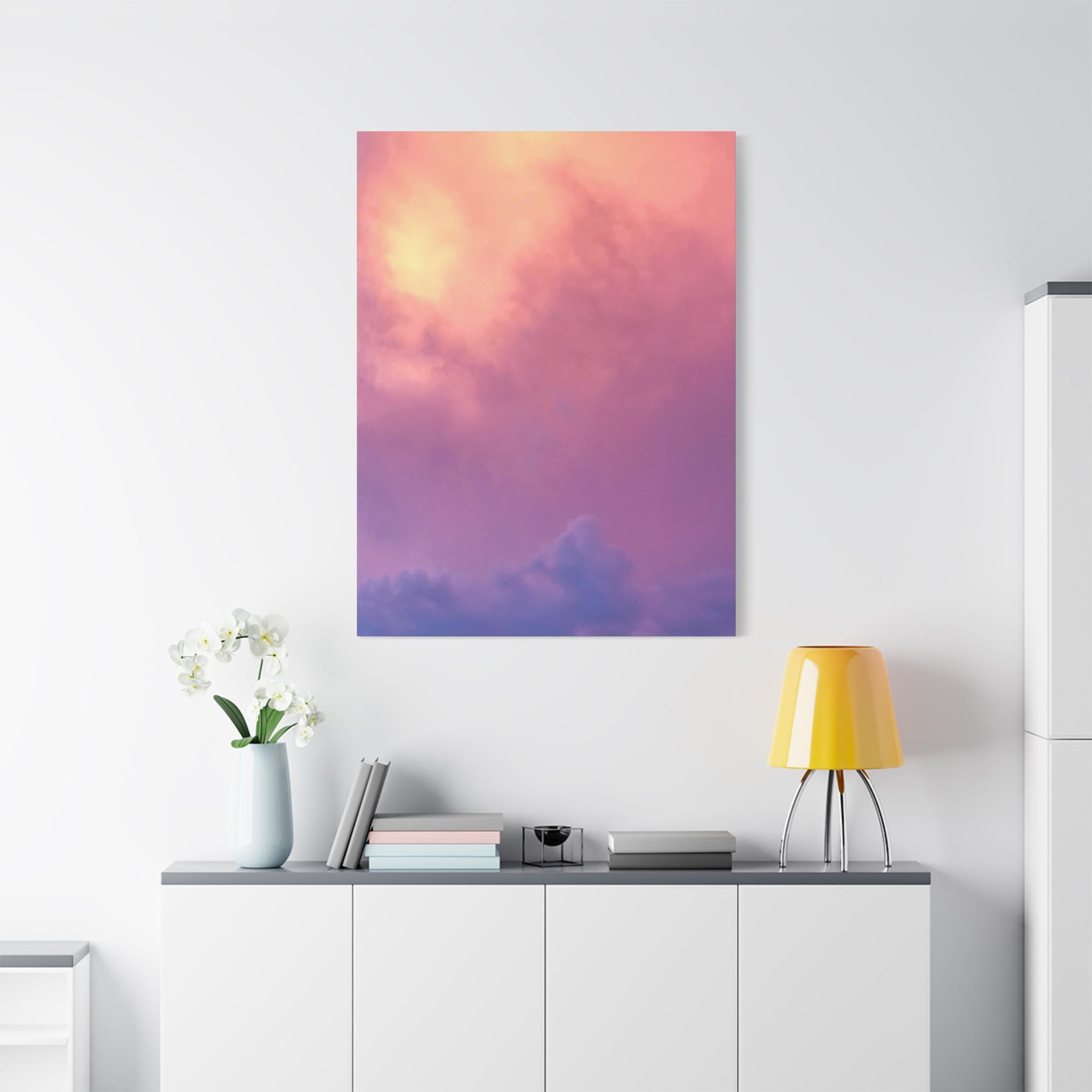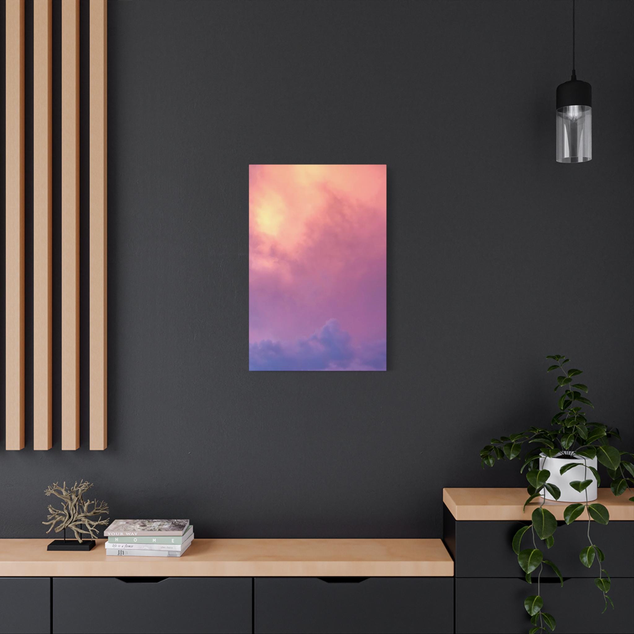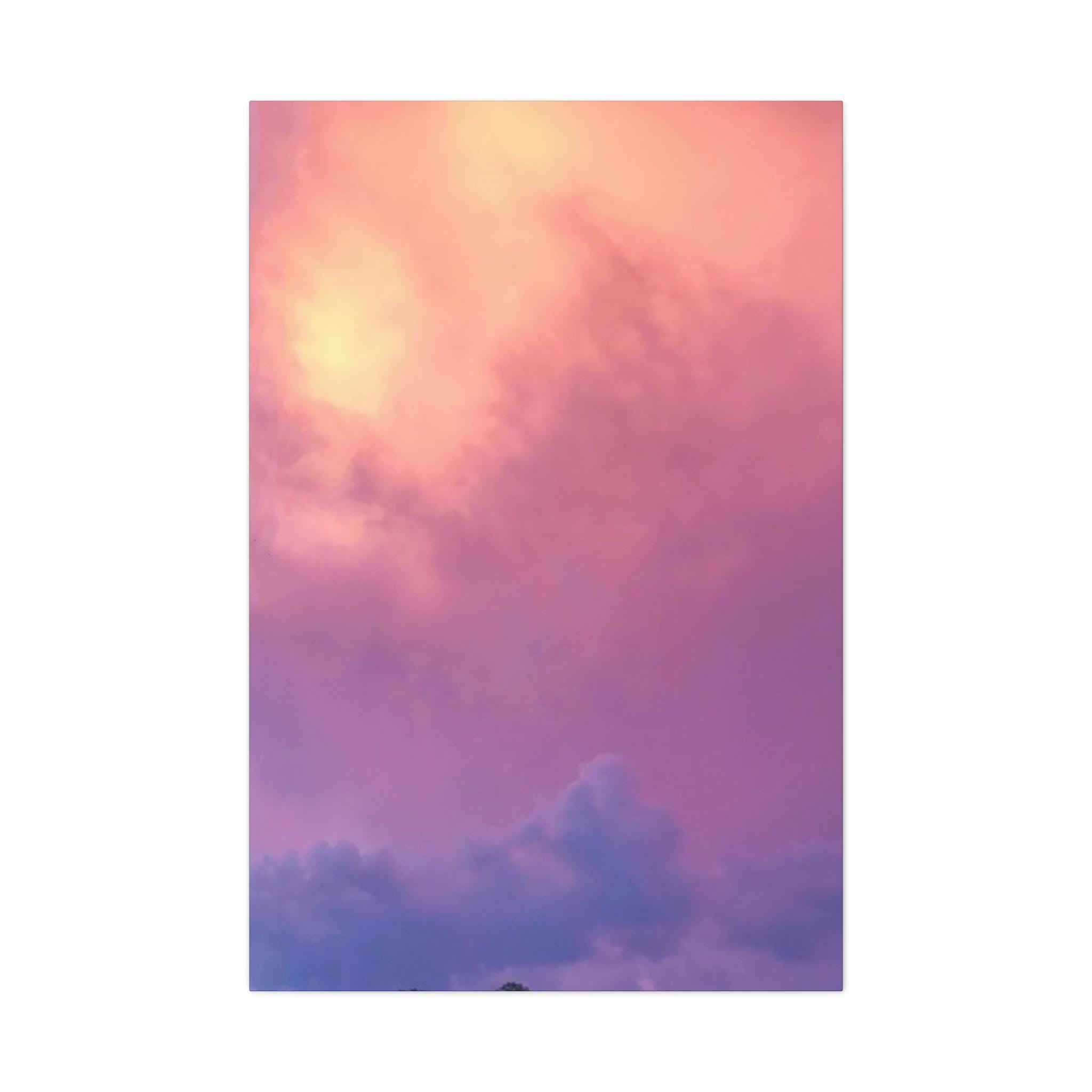 Elevate your space with the soothing beauty of this pink and purple cloud canvas wall art. With warm golden light glowing through soft lavender and rose-colored skies, this dreamy photograph feels almost like a painted abstract. Perfect for adding a calming yet colorful touch to your home, this piece brings both serenity and inspiration.