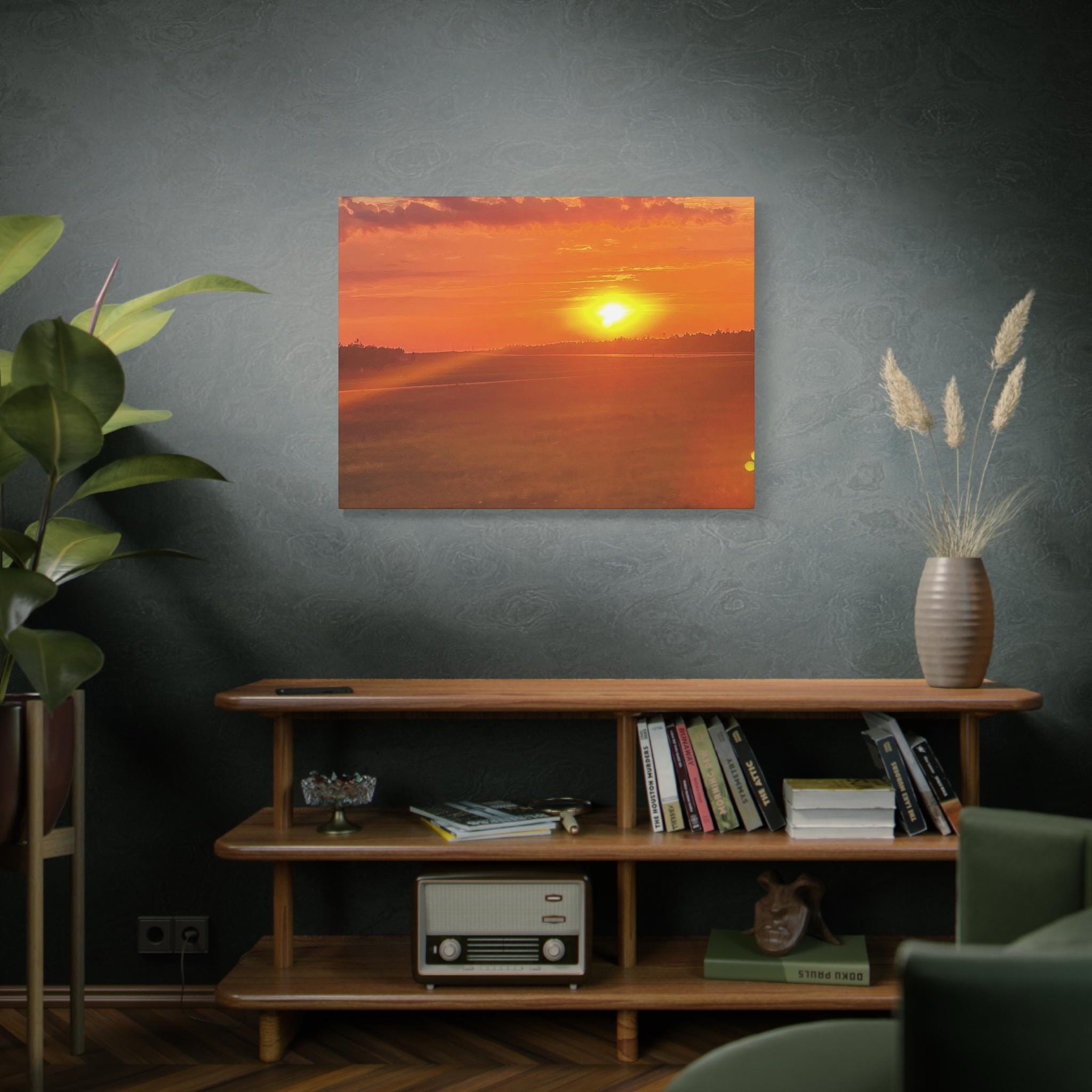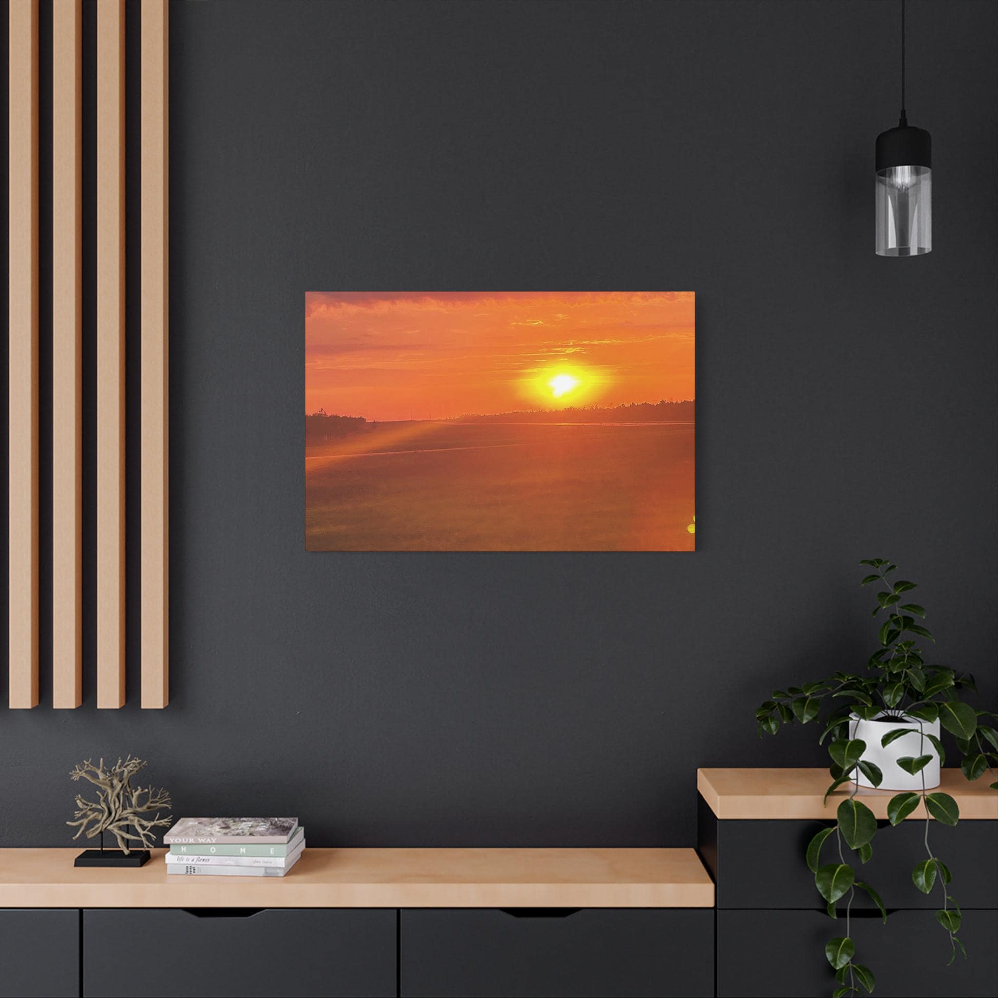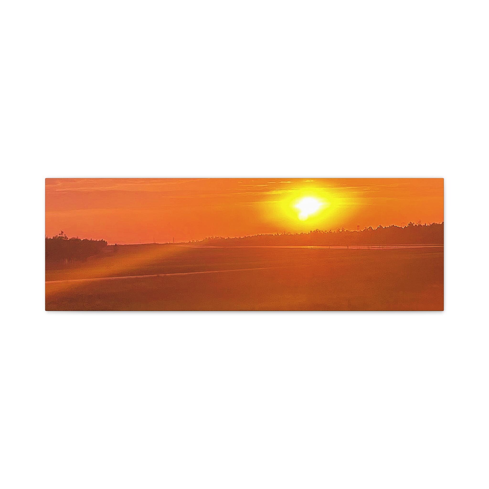 Add warmth and brilliance to your home with this golden sunset canvas wall art. Featuring the sun glowing over the horizon in fiery orange and amber tones, this striking piece captures the beauty of nature’s most radiant moment. Perfect for creating a cozy, inviting atmosphere, it’s a versatile work of art for any space.