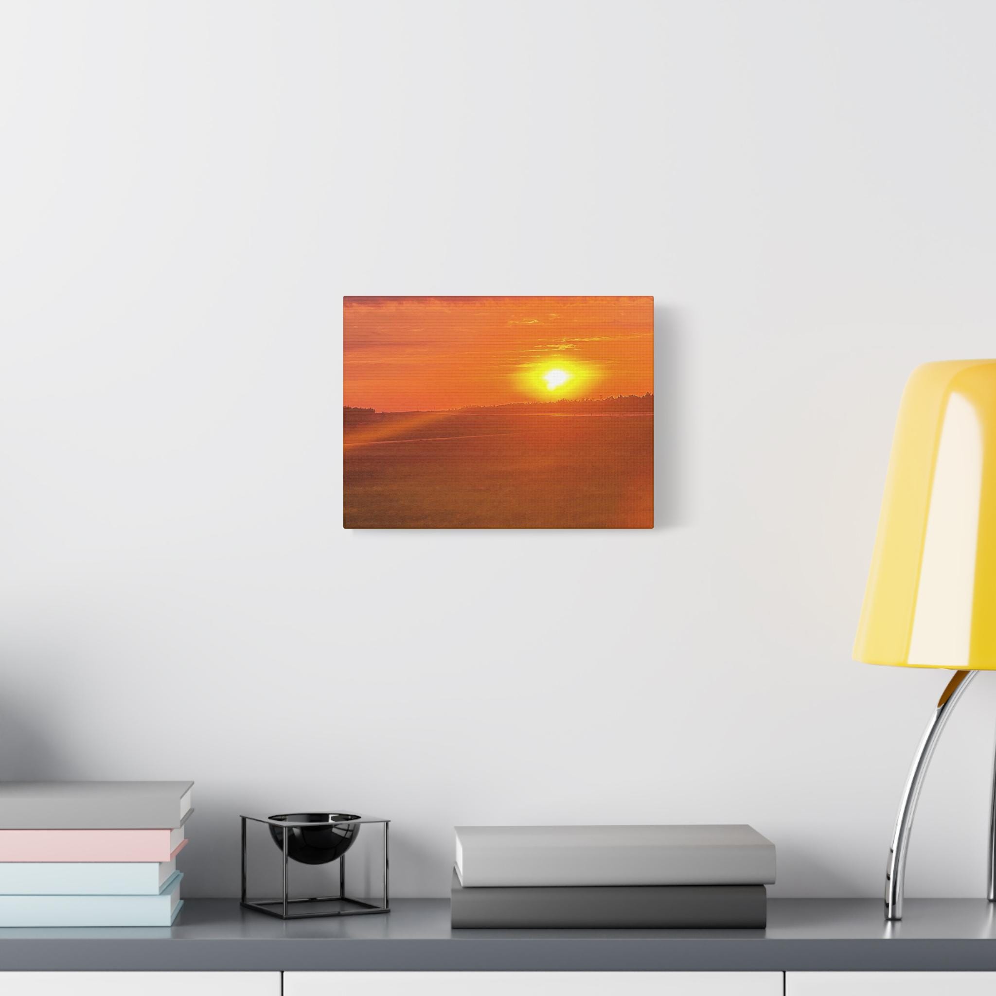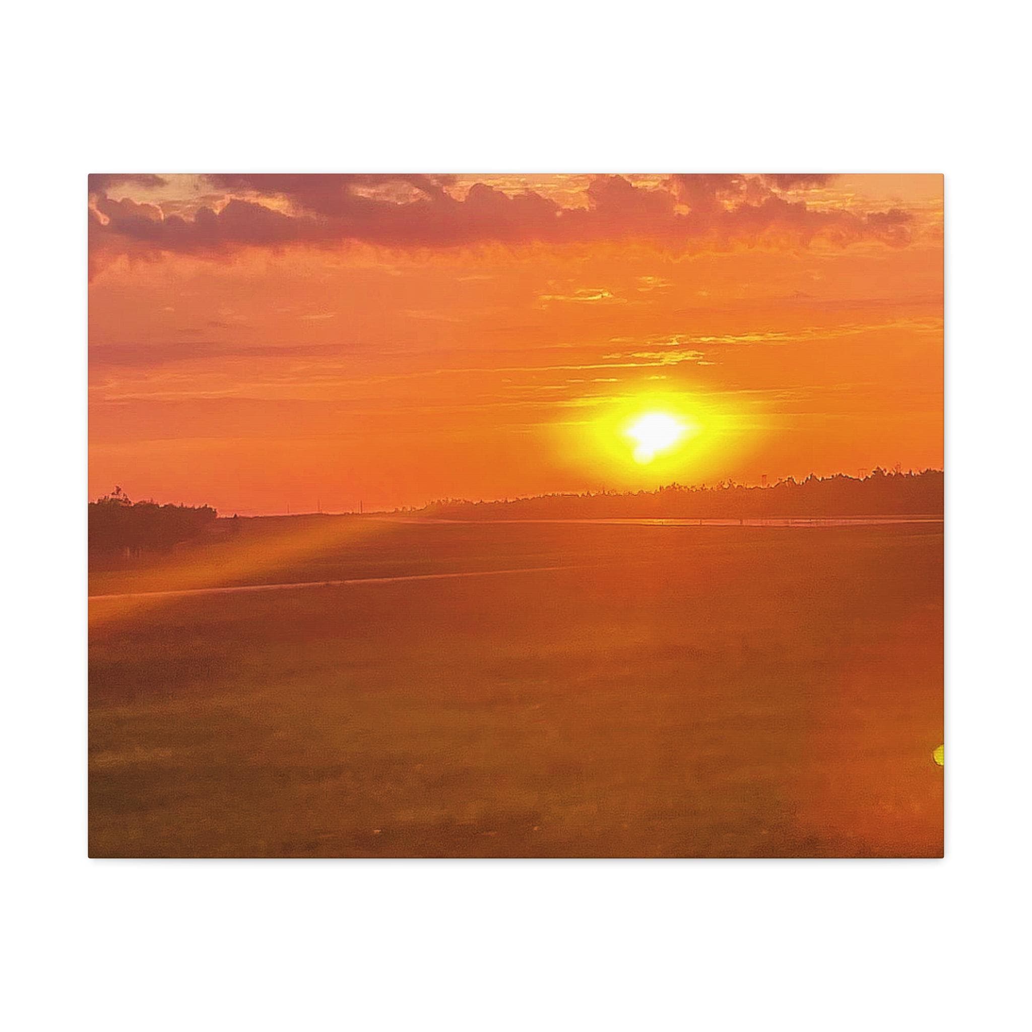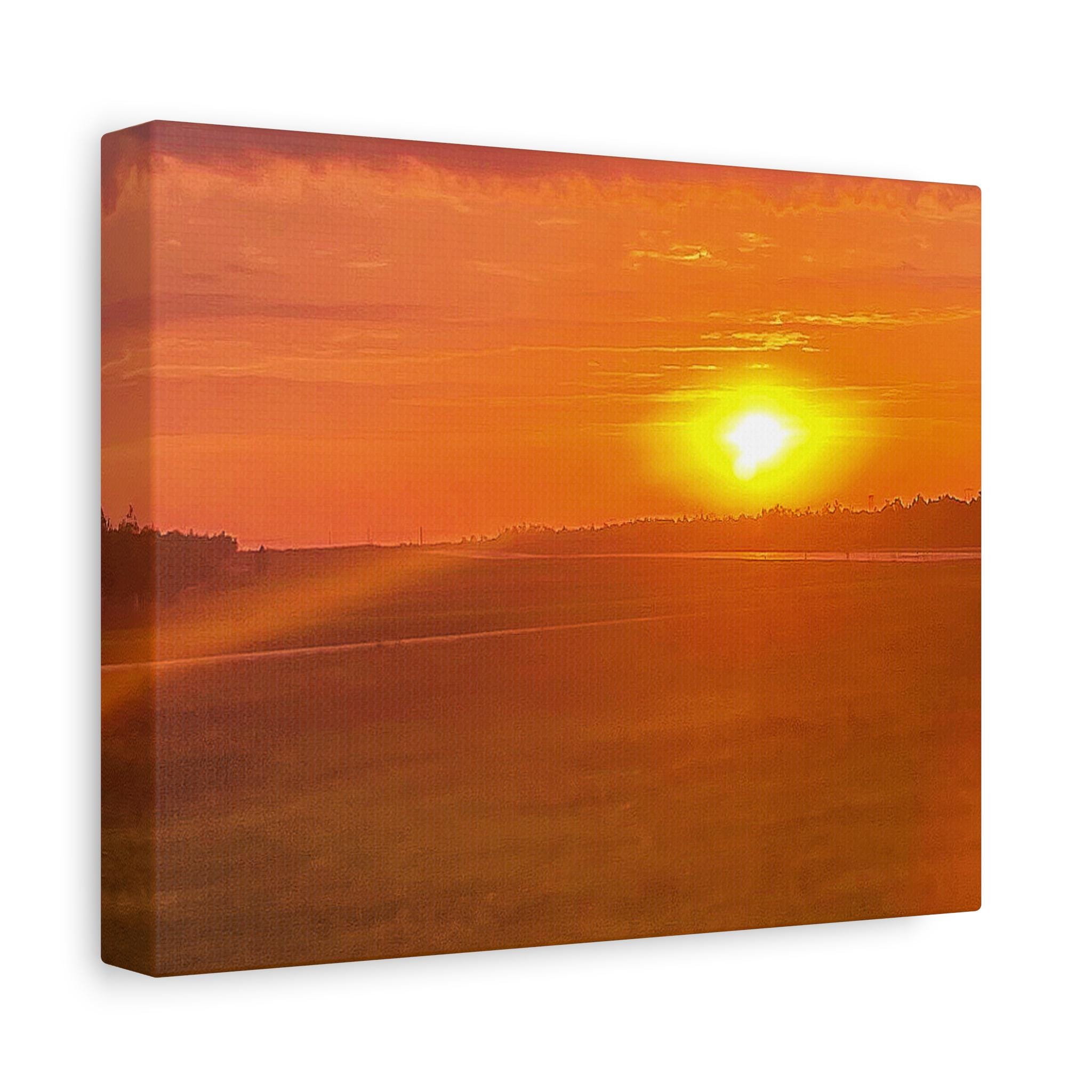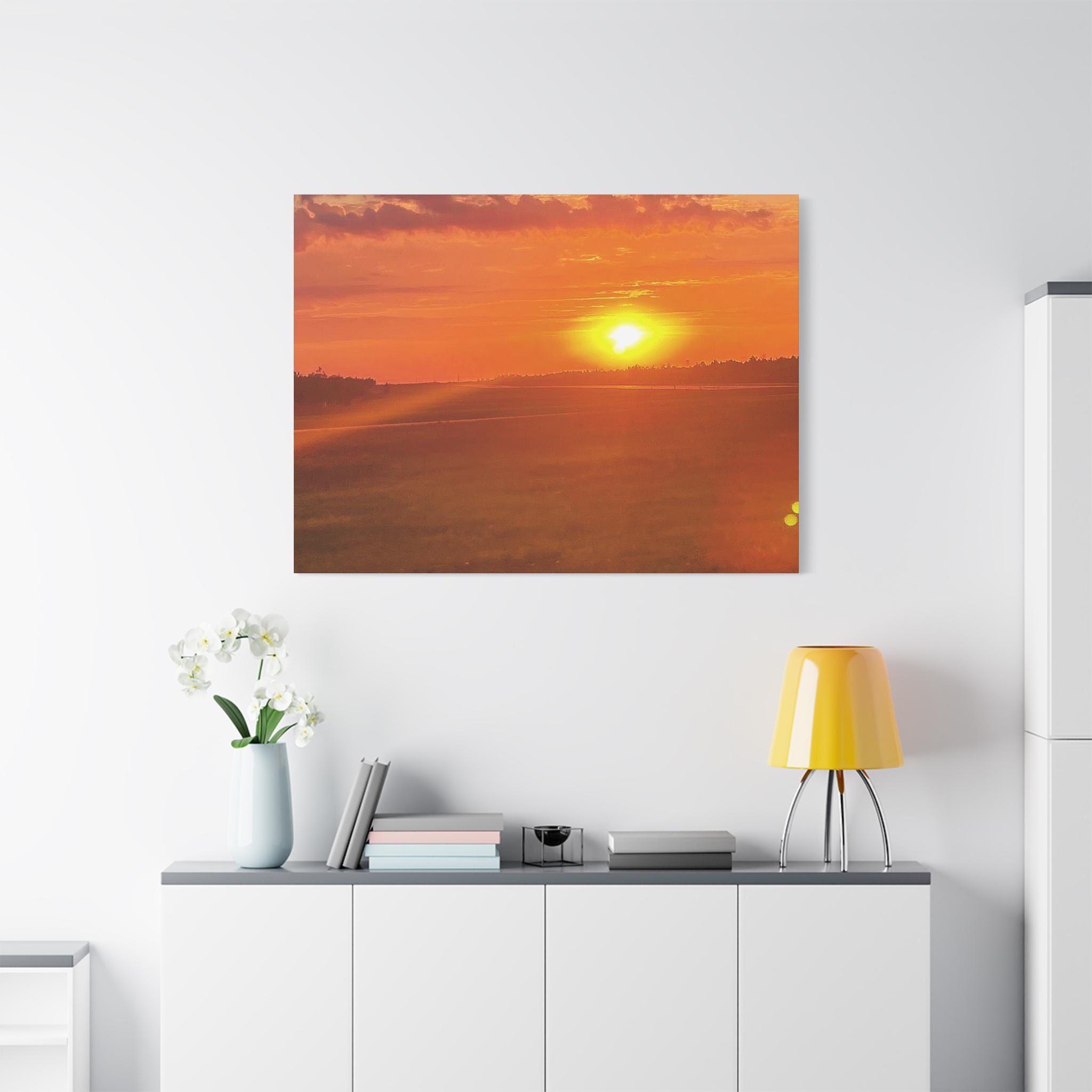 Add warmth and brilliance to your home with this golden sunset canvas wall art. Featuring the sun glowing over the horizon in fiery orange and amber tones, this striking piece captures the beauty of nature’s most radiant moment. Perfect for creating a cozy, inviting atmosphere, it’s a versatile work of art for any space.