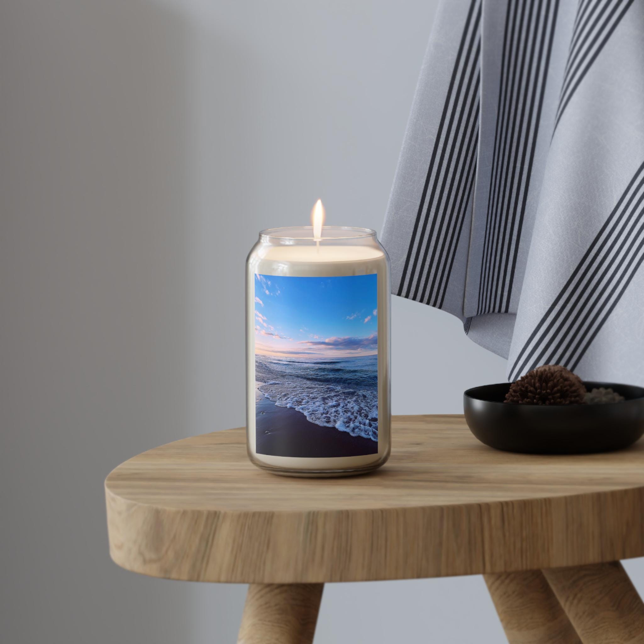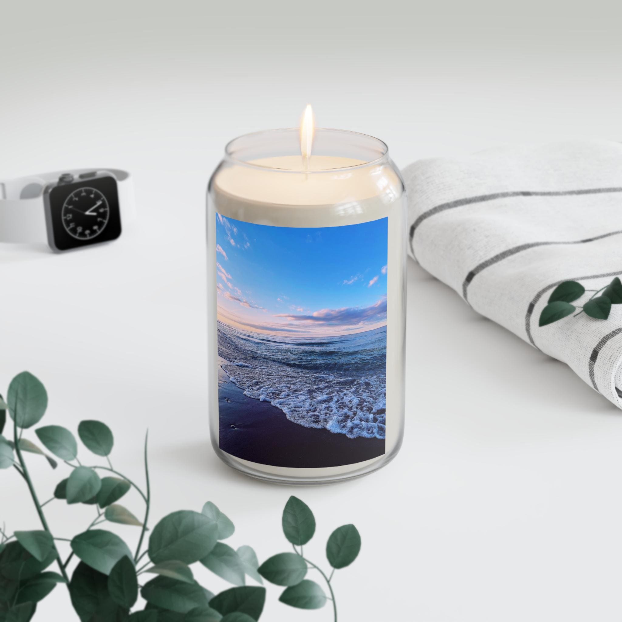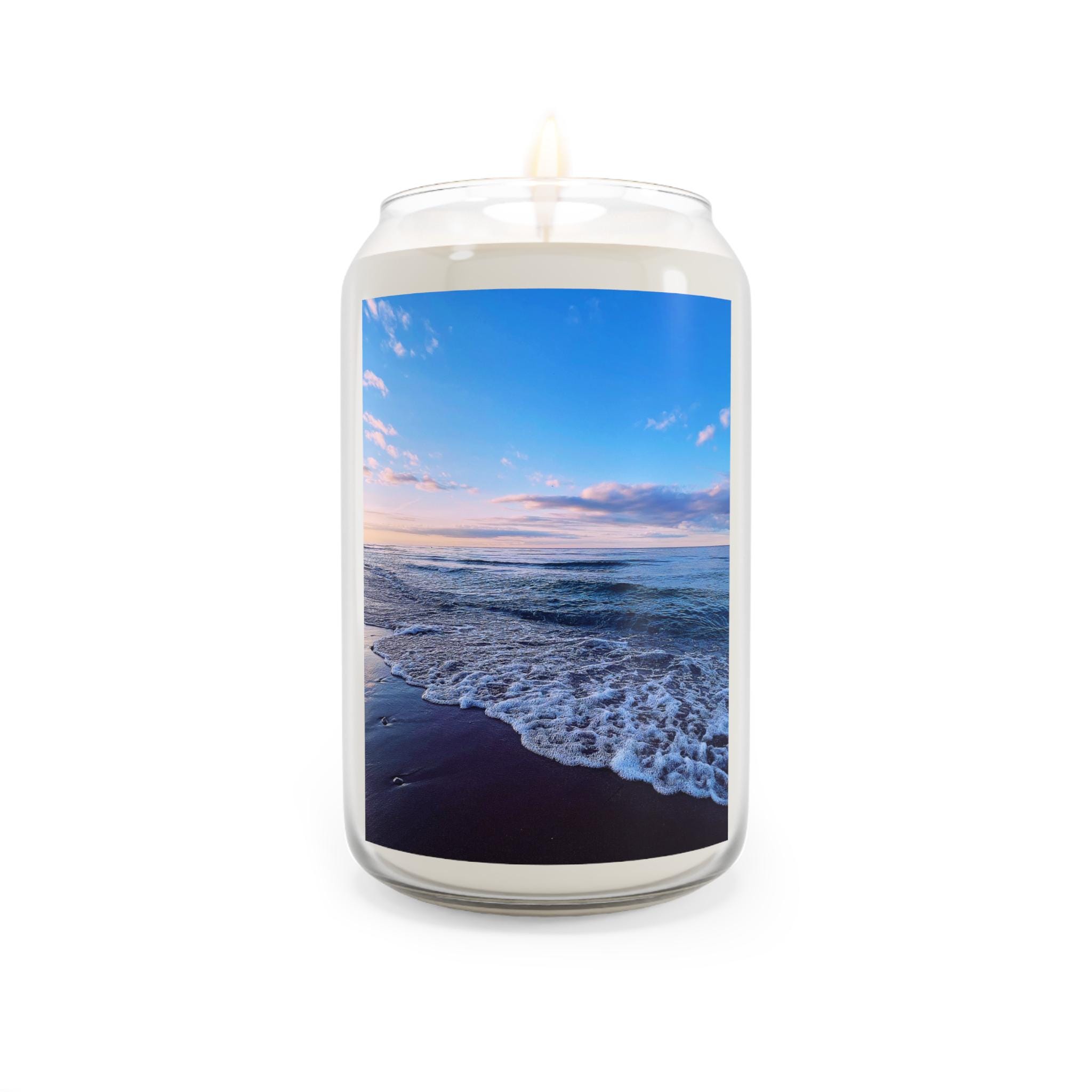Bring the serene beauty of a purple and blue sunset with foamy waves into your home with these scented soy candles. Perfect for creating a calming atmosphere during quiet evenings or self-care rituals. Ideal for individuals who enjoy aromatherapy and relaxation. Great for gifting during birthdays, holidays, or housewarmings.