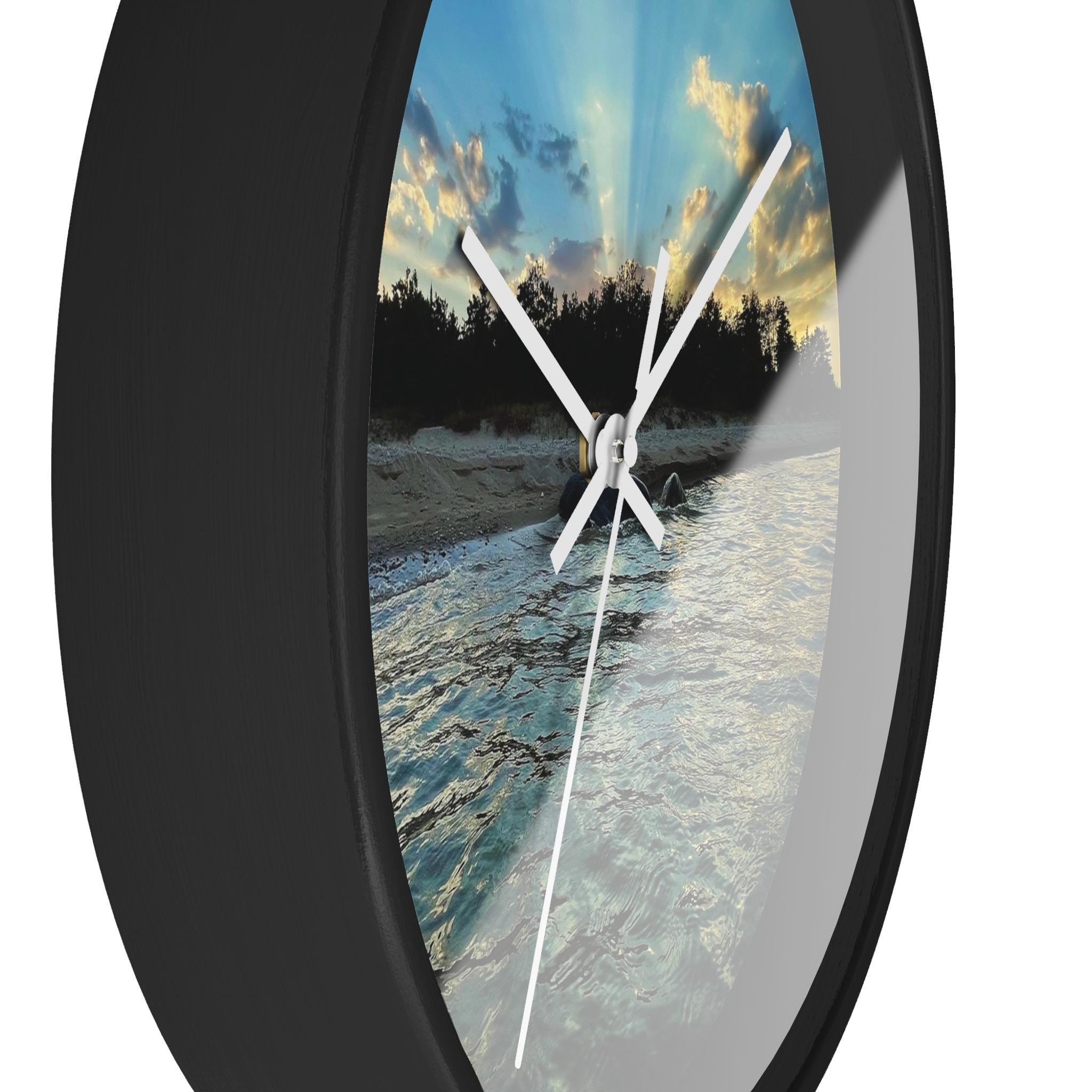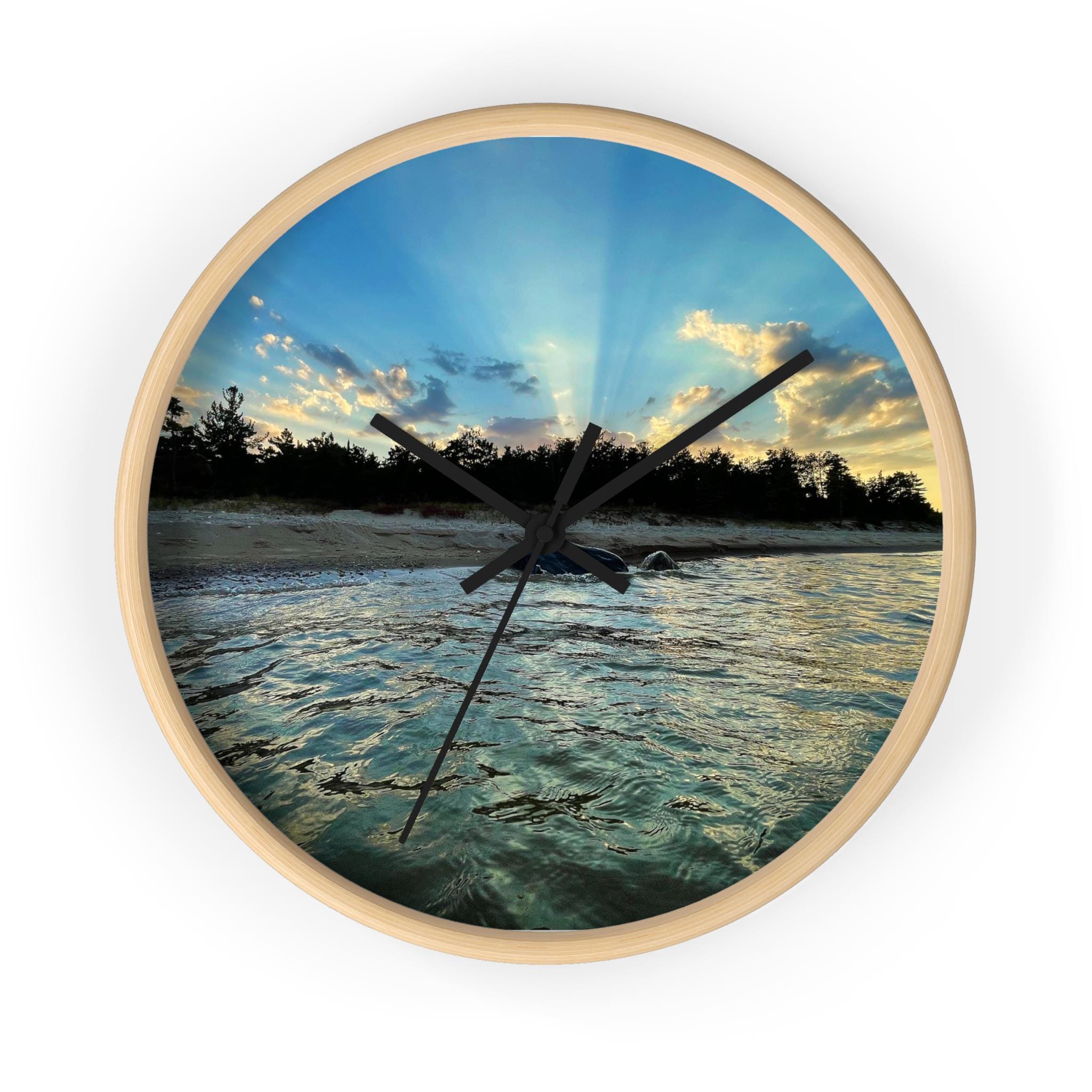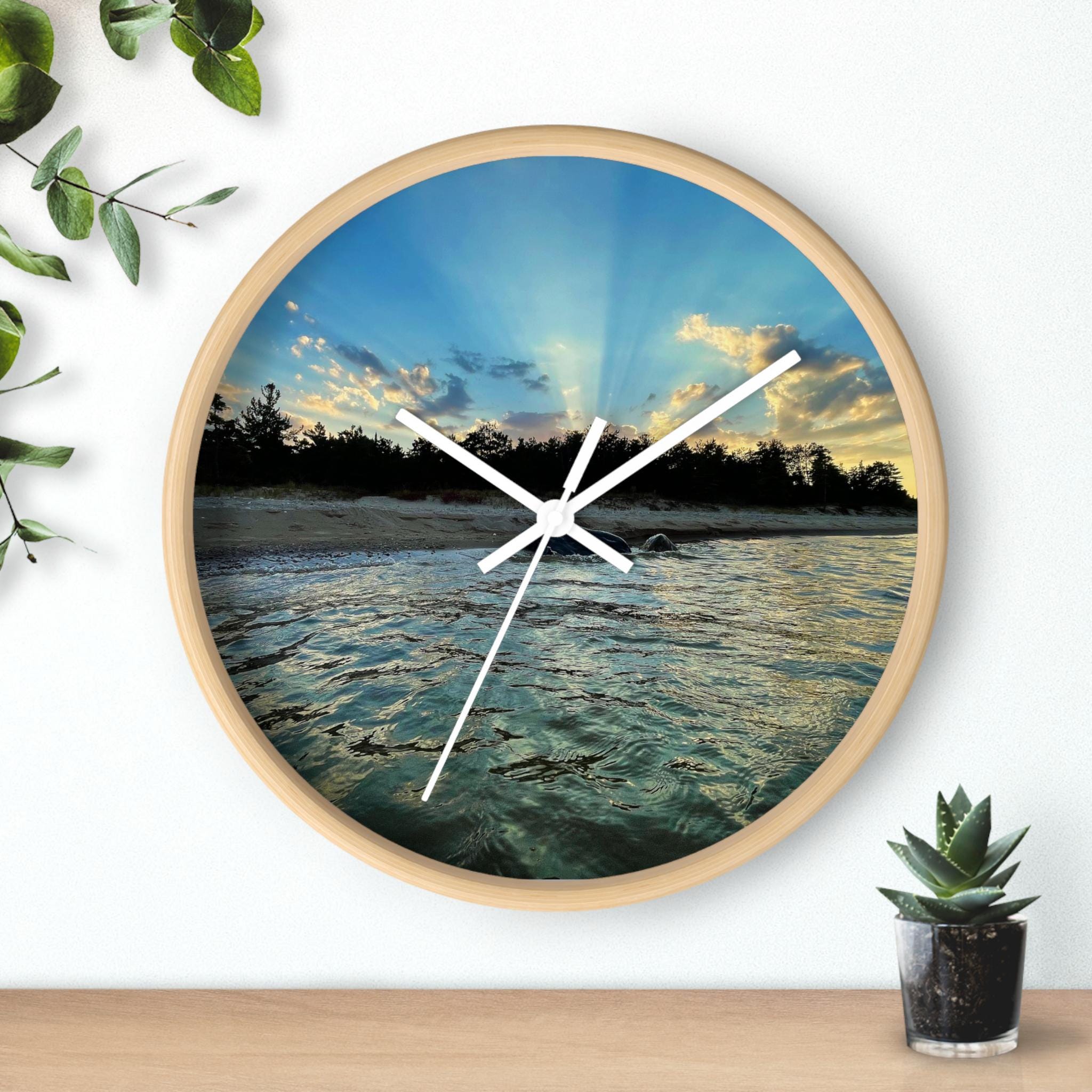 Bring calm, coastal energy into your space with this moody ocean sunset wall clock. Featuring original coastal photography captured at golden hour, this piece blends soft movement, light, and shoreline textures into a functional work of art.