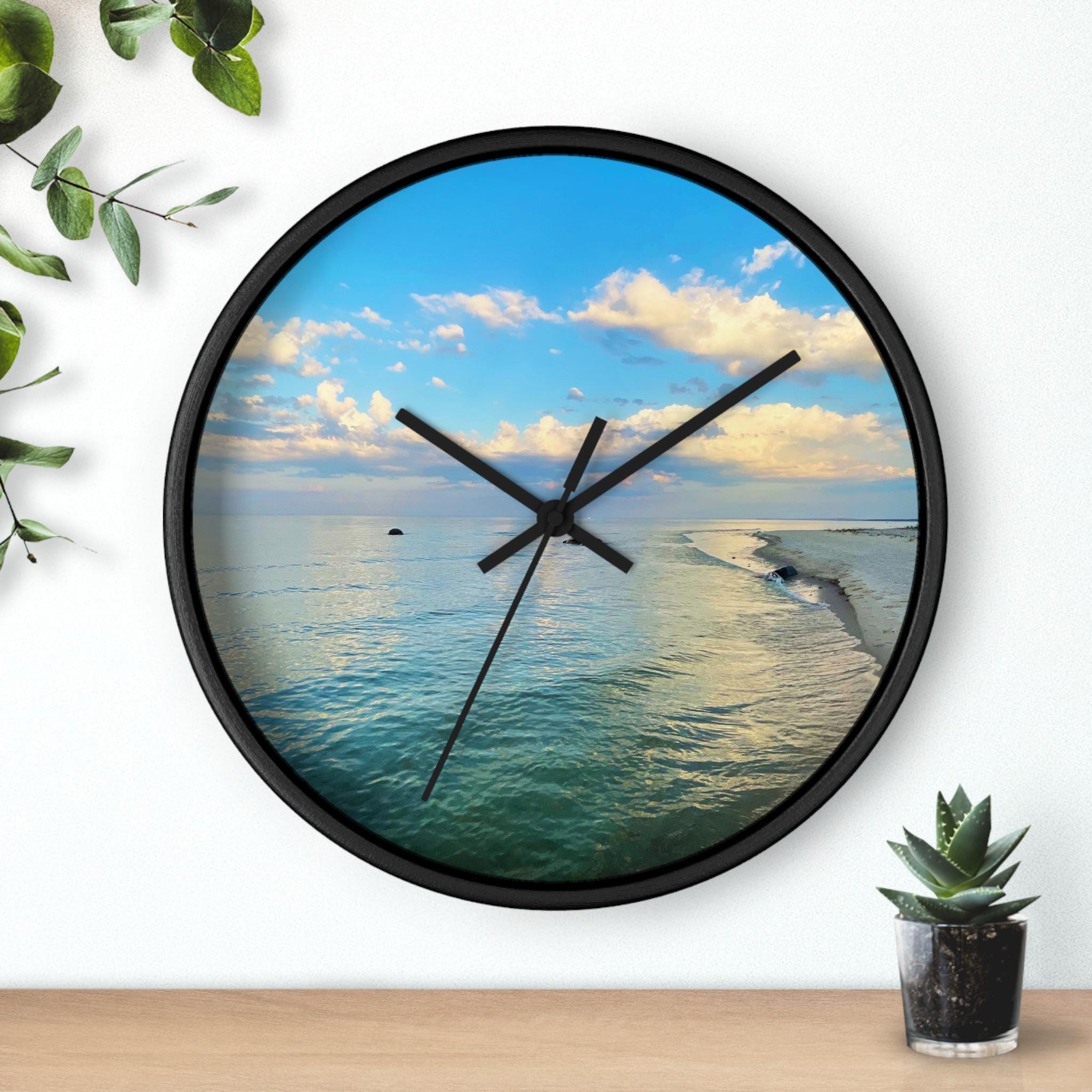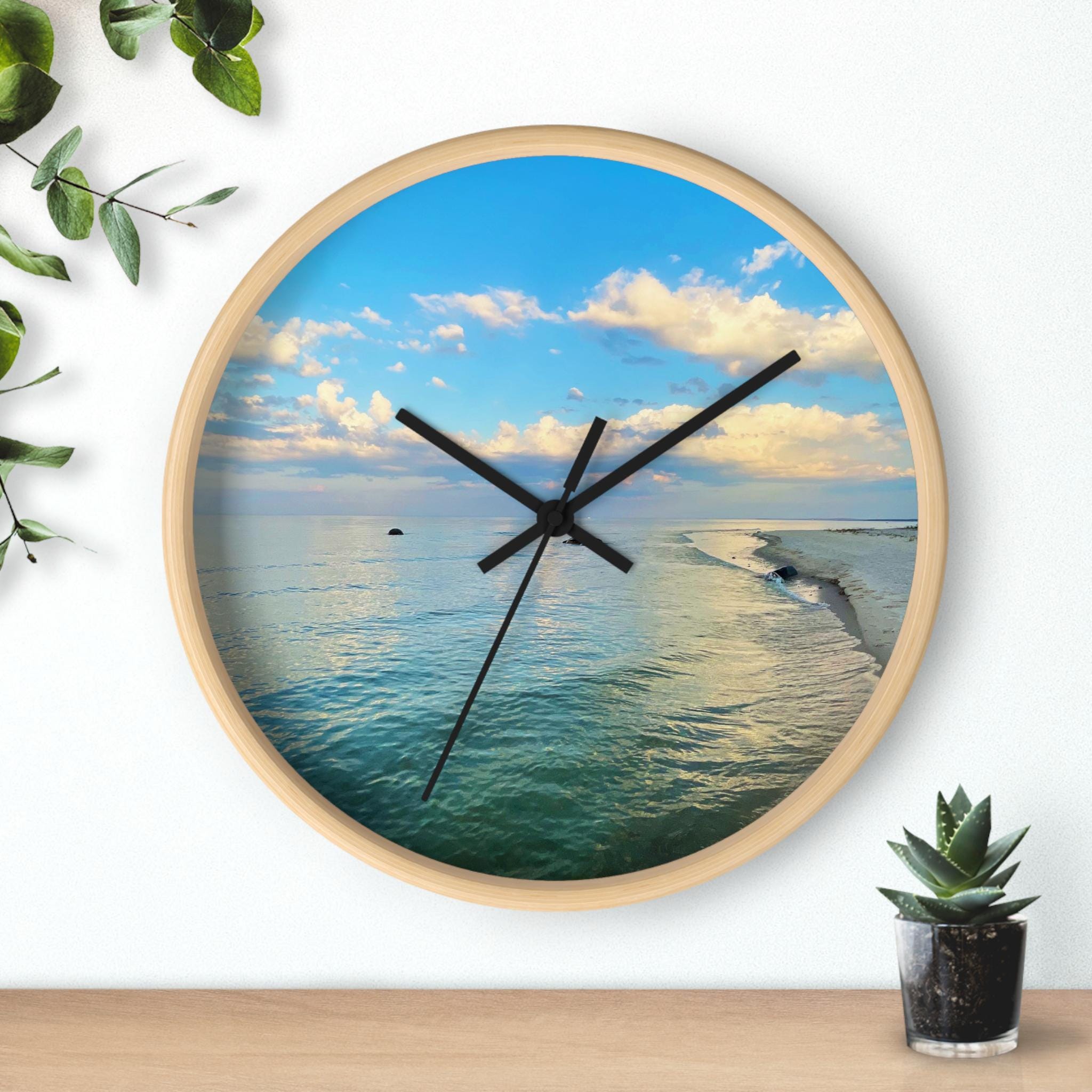 Invite a sense of openness and calm into your space with this ocean horizon wall clock. Featuring original coastal photography of gentle waves and an expansive sky, this piece captures the quiet beauty of the shoreline where water and sky meet.