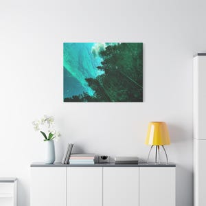 Product features - Matte stretched cotton-poly canvas printed with UL-certified Greenguard Gold latex inks - Stretched over sustainable radiata pine inner frame sourced from FSC-certified renewable forests - Soft rubber dots on bottom-back corners keep the canvas steady when hung - Comes with back hanging hardware; available in horizontal, vertical, and square orientations across 60 sizes - Slight manufacturing tolerance of +/- 1/8" (3.2 mm); durable, non-toxic latex ink finish