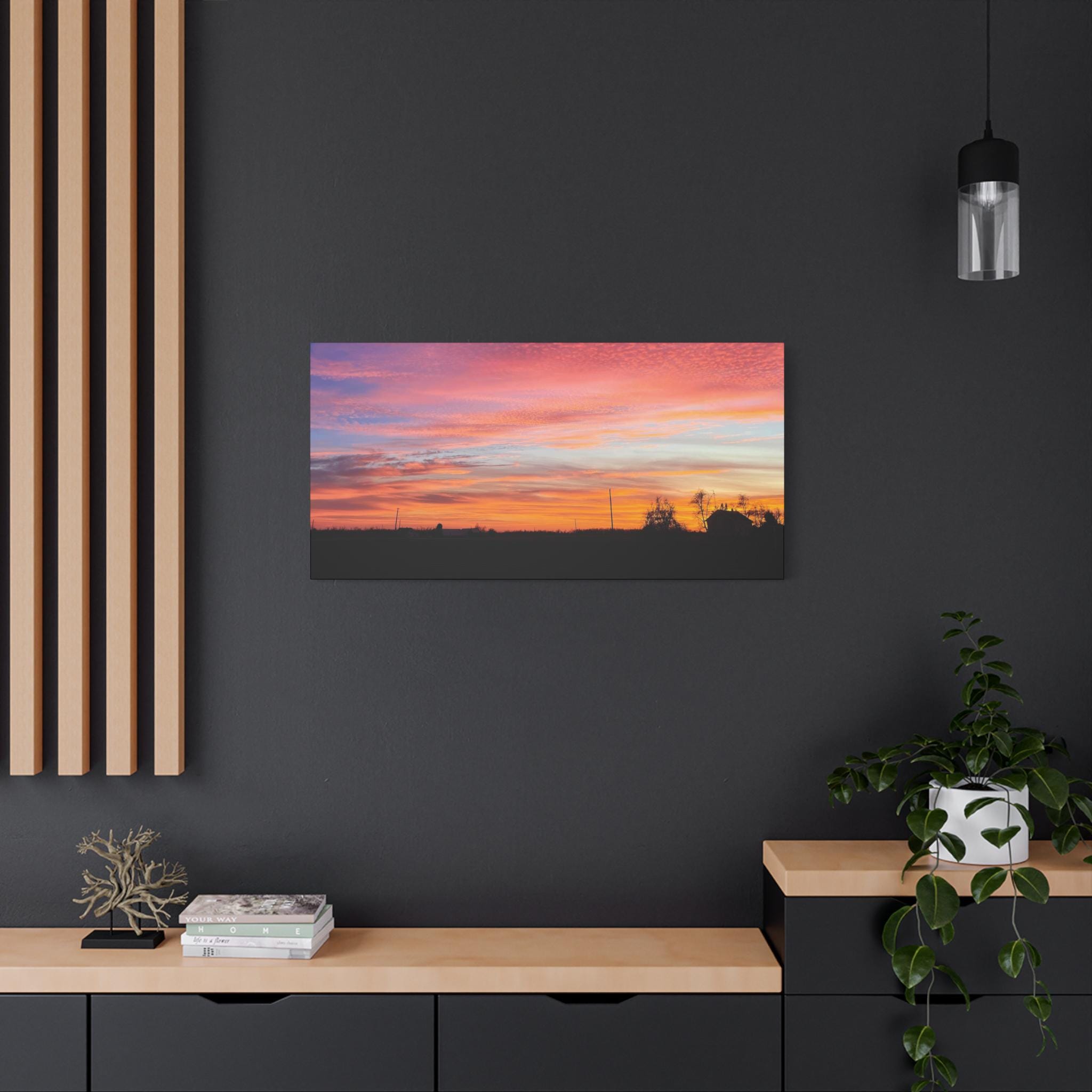 Perfect for living rooms, bedrooms, offices, or reading spaces, this canvas offers a peaceful moment inspired by the beauty of the sky at day’s end.