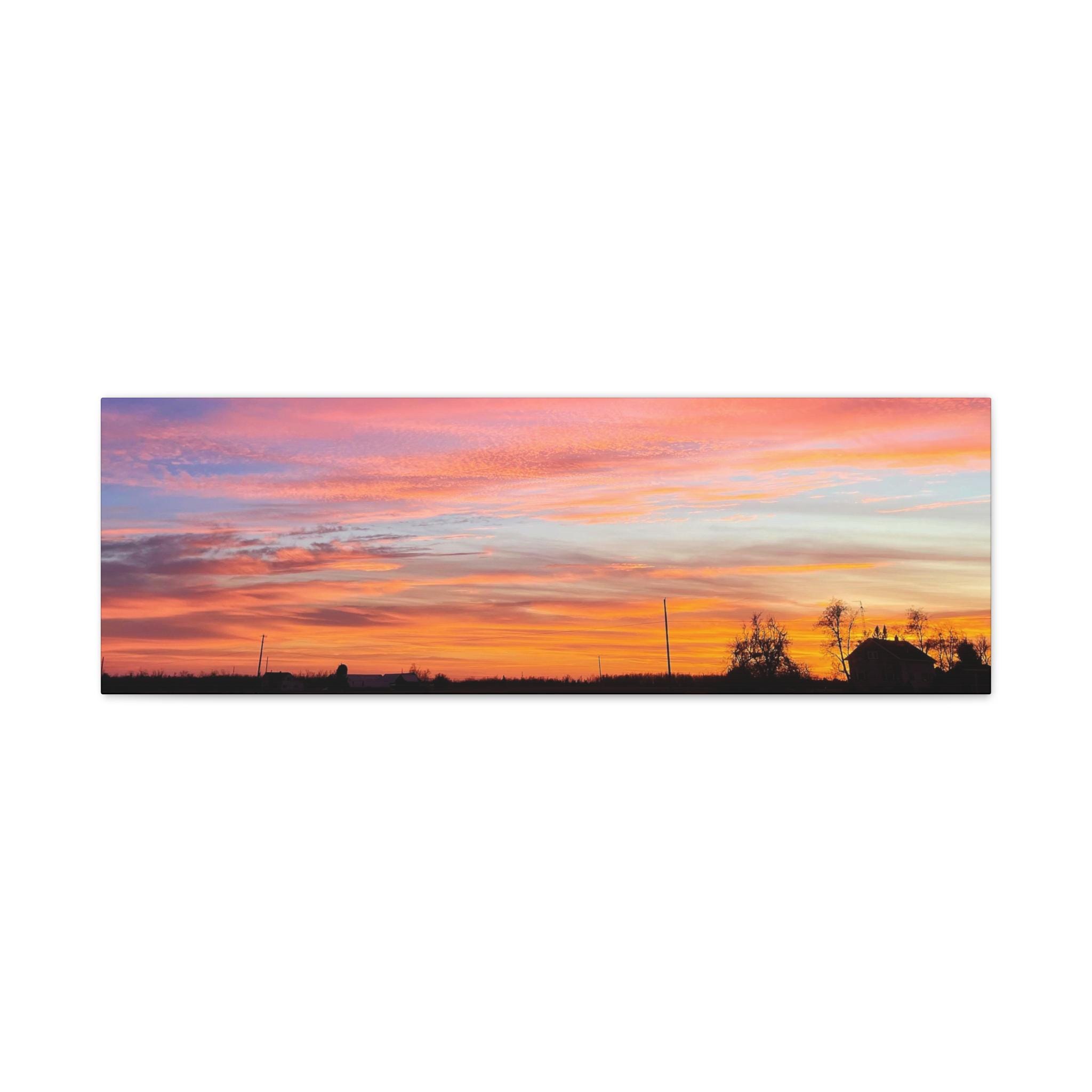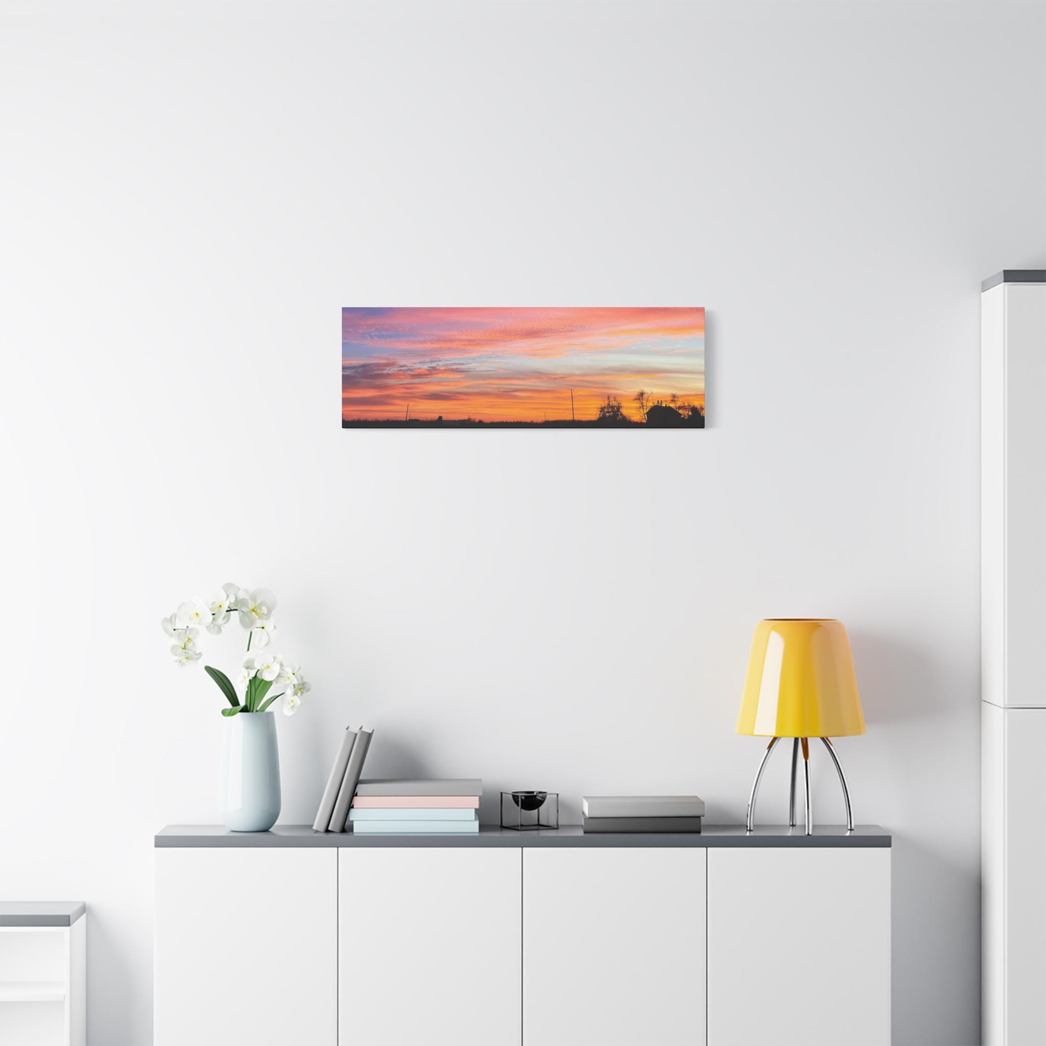 Add warmth and quiet color to your space with this sunset horizon canvas wall art. Featuring original coastal sky photography captured as soft layers of color stretch across the horizon, this piece brings balance, calm, and subtle movement into a modern interior.